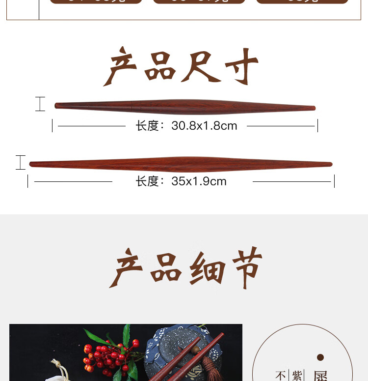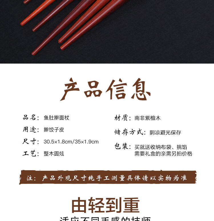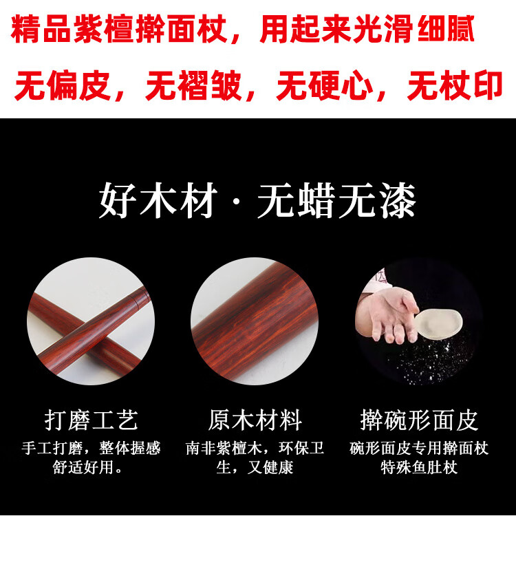 Shijanu rosewood high-density solid wood rolling pin for dumpling wrappers, rosewood 30.5*1.9cm with scale