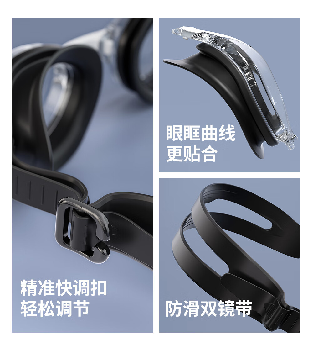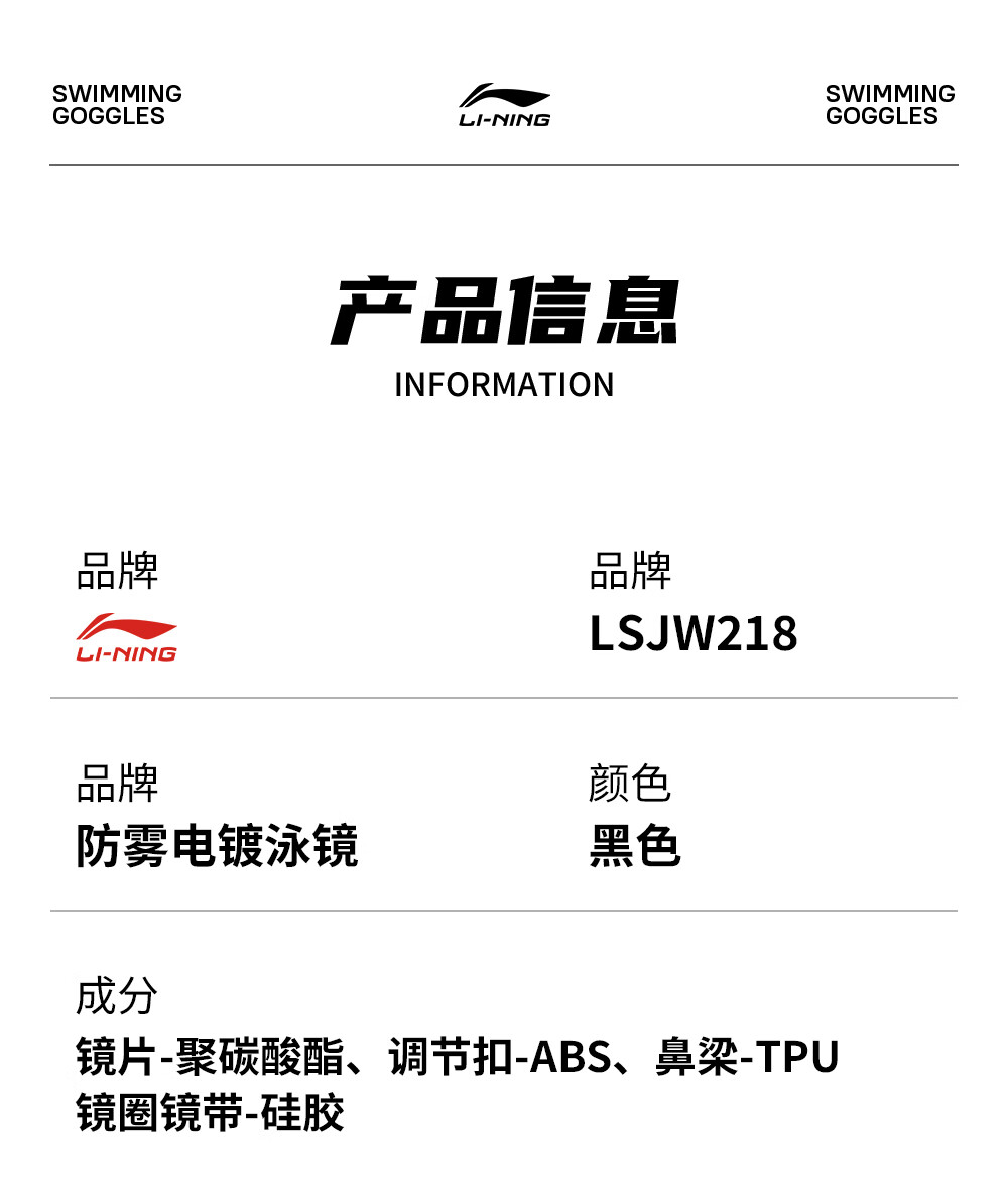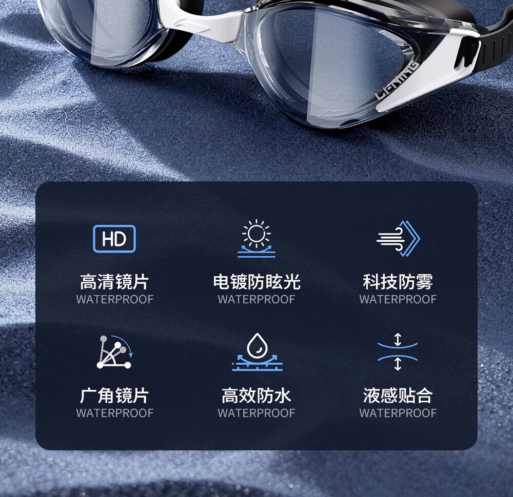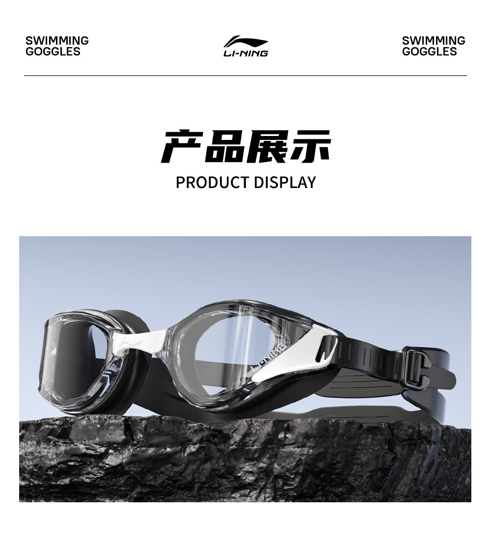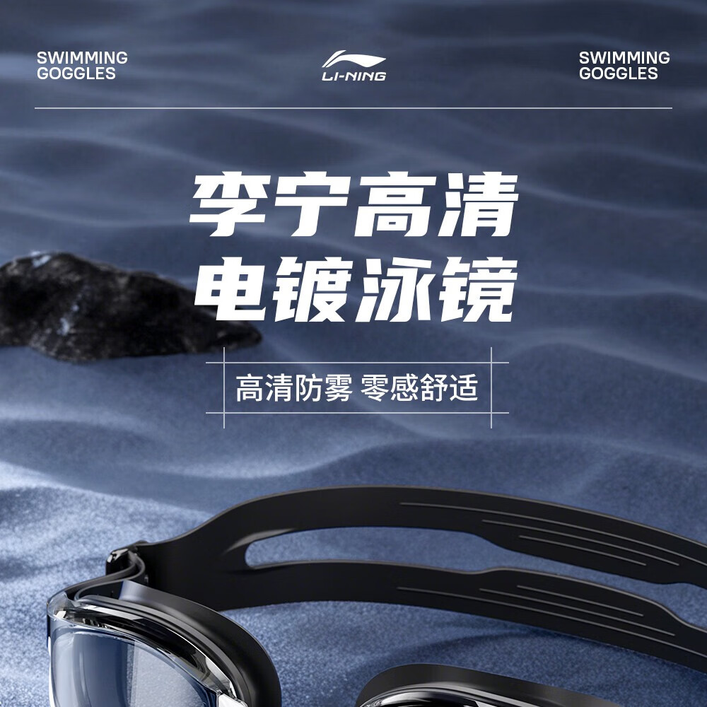 Li Ning (LI-NING) high-definition waterproof and anti-fog swimming goggles for men and women, professional racing swimming goggles, coated flat adult swimming equipment three-piece set, glacier black, electroplated anti-glare, wide-angle lens