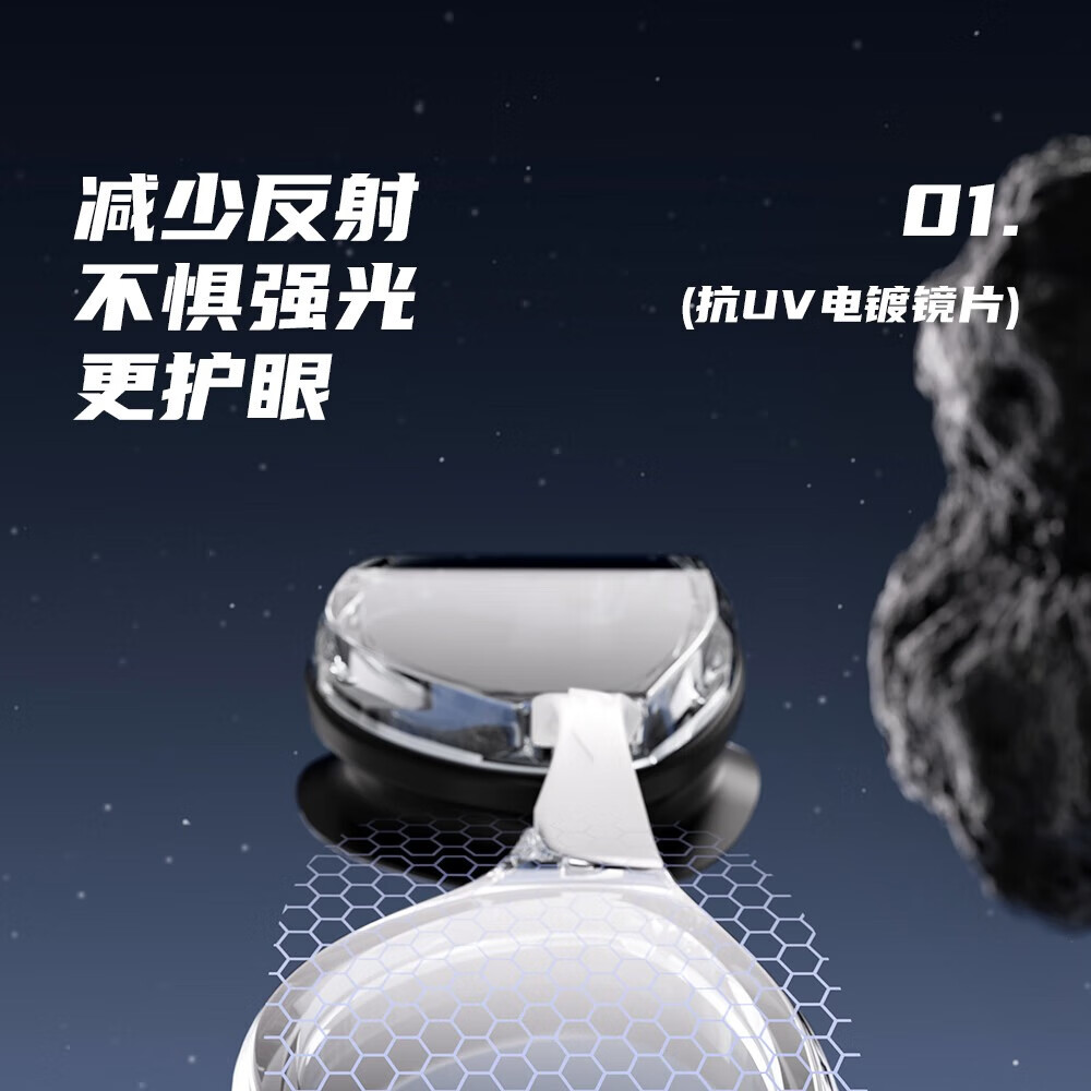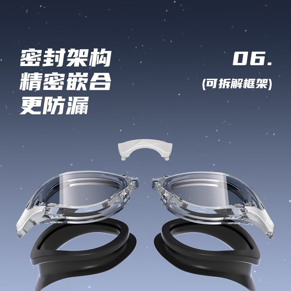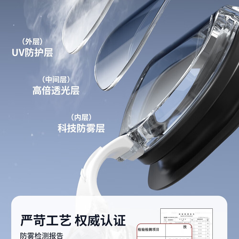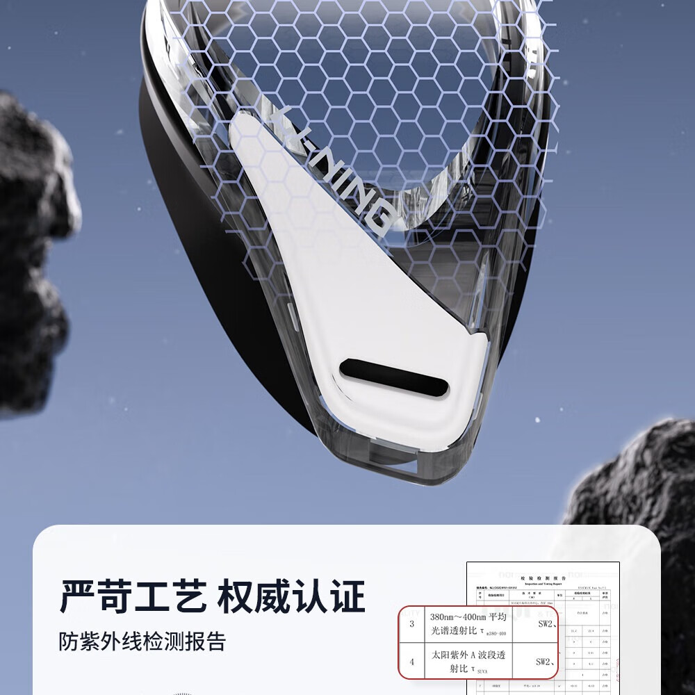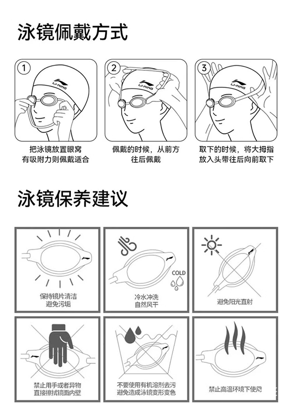 Li Ning (LI-NING) high-definition waterproof and anti-fog swimming goggles for men and women, professional racing swimming goggles, coated flat adult swimming equipment three-piece set, glacier black, electroplated anti-glare, wide-angle lens