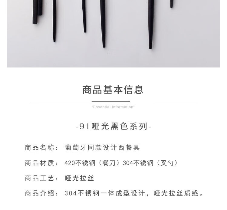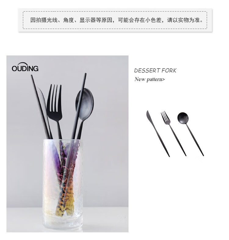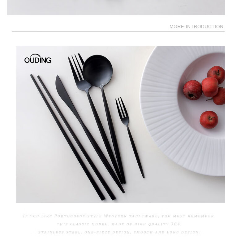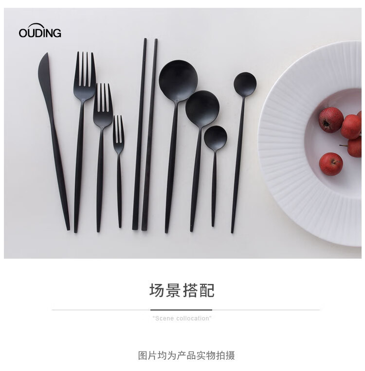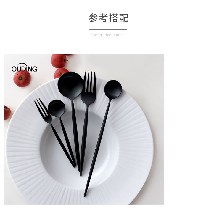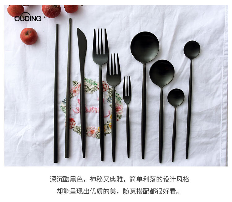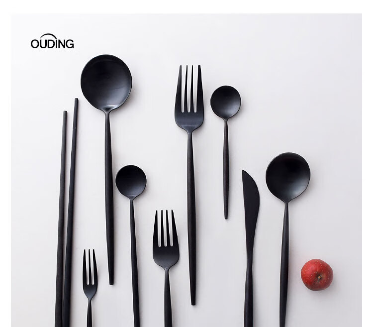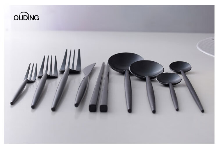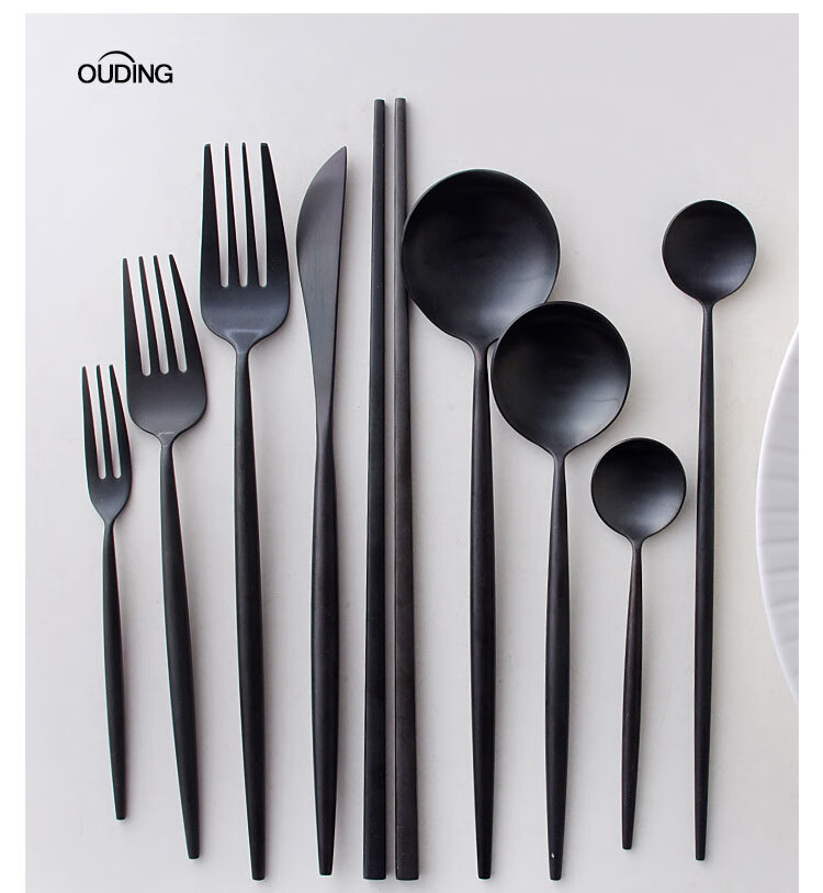 Qiaobo Lai OUDING matte black knife and fork Portuguese INS stainless steel steak knife and fork spoon long handle coffee spoon fruit fork 9-piece set
