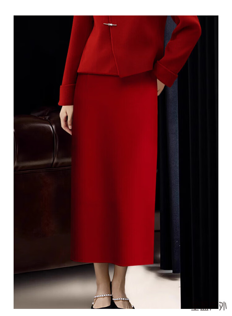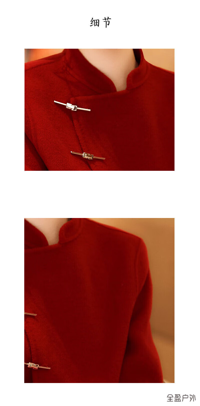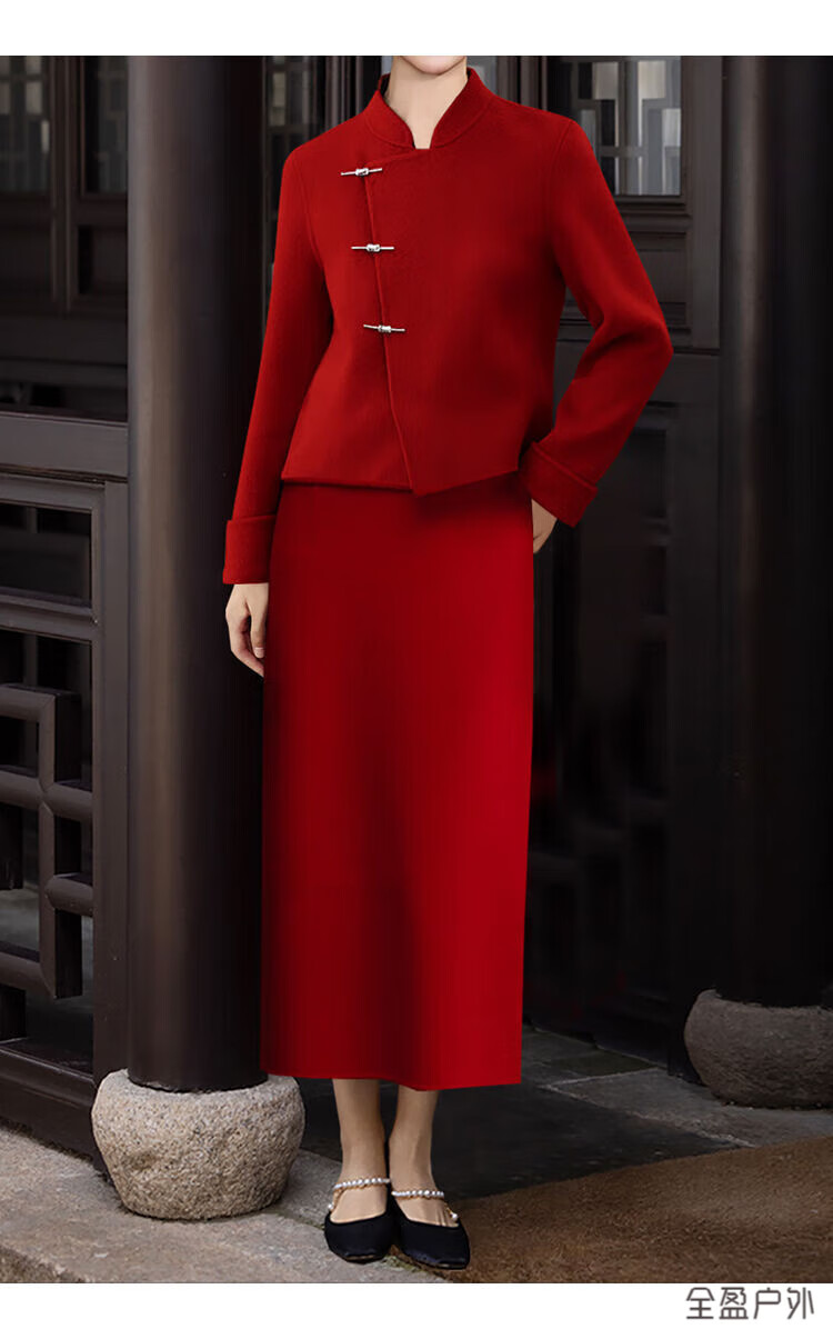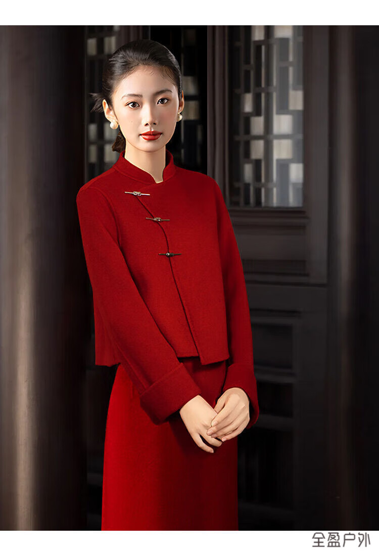 OIMG light luxury high-end winter Chinese style red woolen coat women's autumn engagement dress wedding dress toasting dress red jacket + skirt (set) L