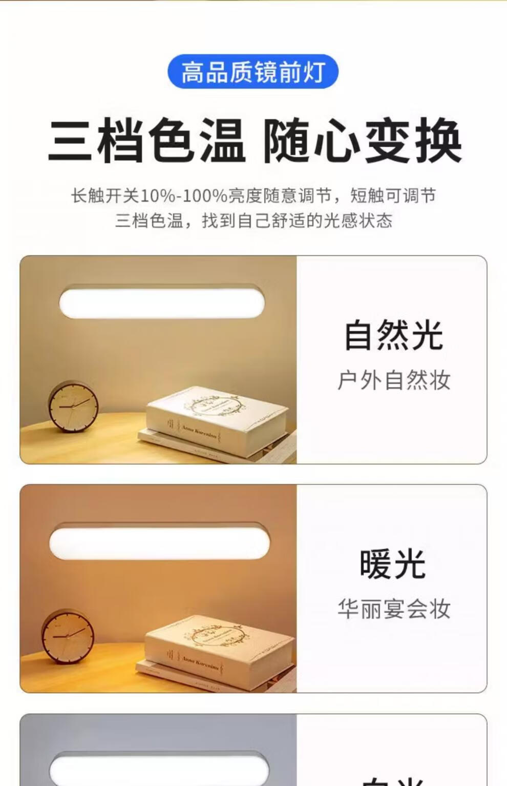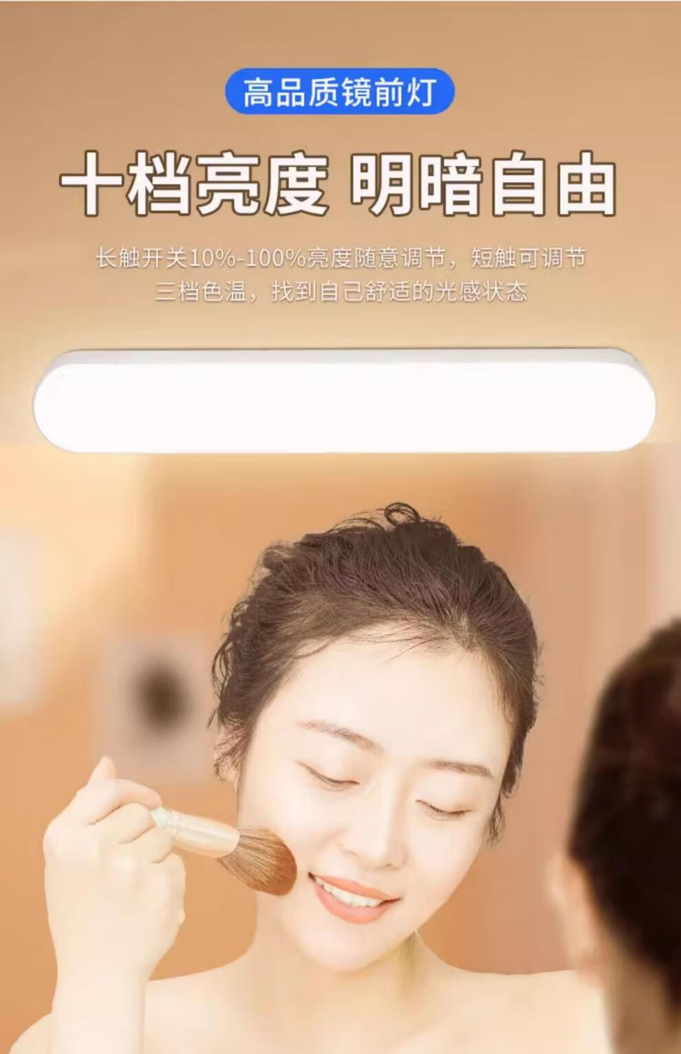 Meishut makeup lamp mirror front light fill light led punch-free makeup room mirror light rechargeable makeup table lamp strip table lamp a26CM flat-fill light touch model