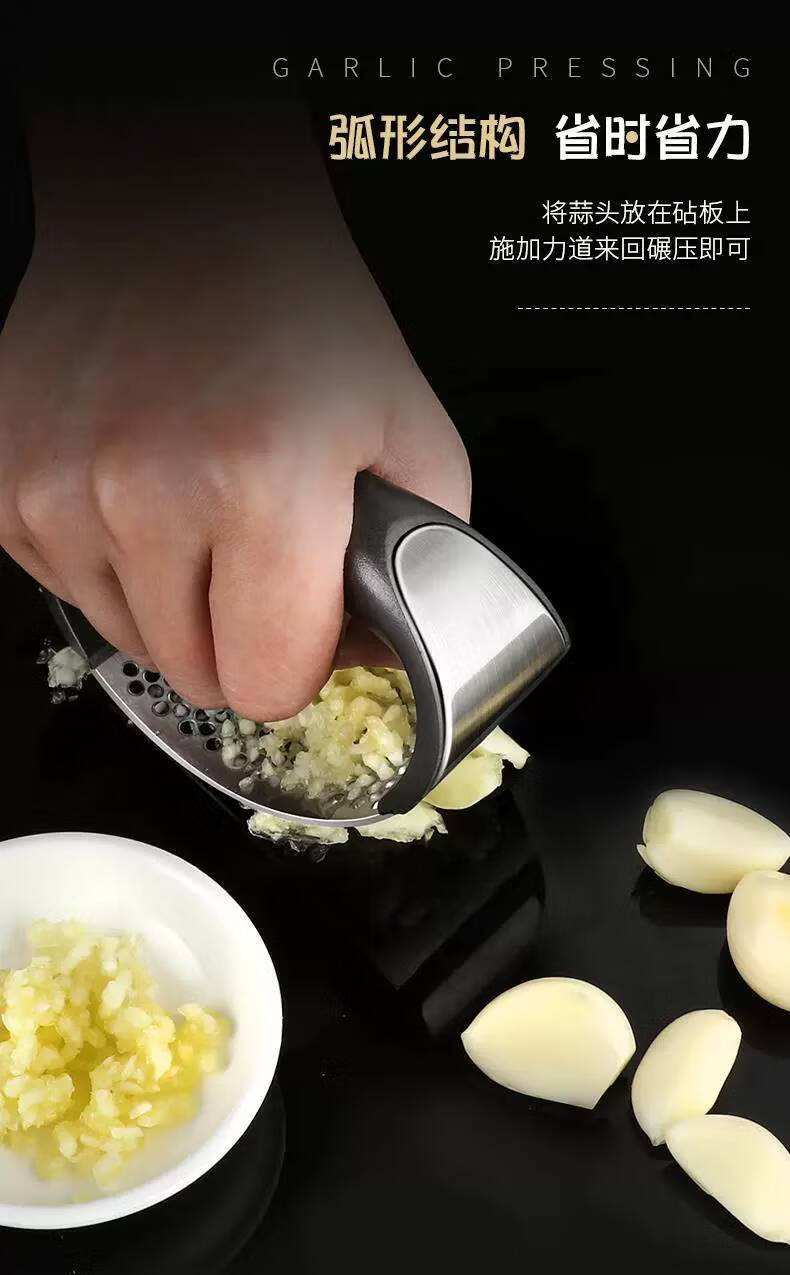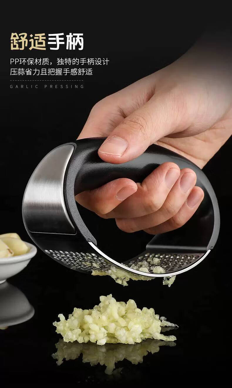 CLCEY304 stainless steel garlic press, ring-shaped garlic press, household garlic masher, manual garlic clip, 2 pack