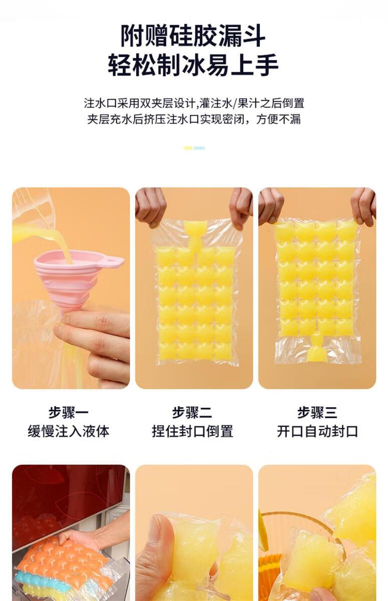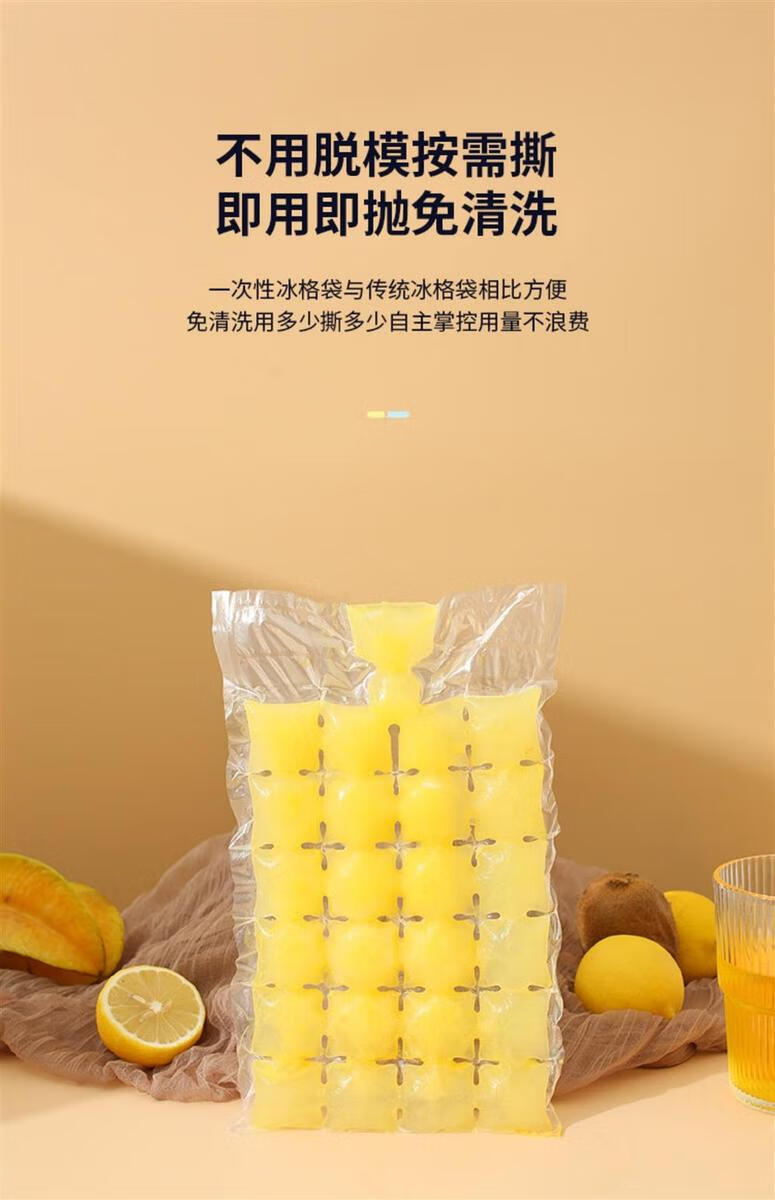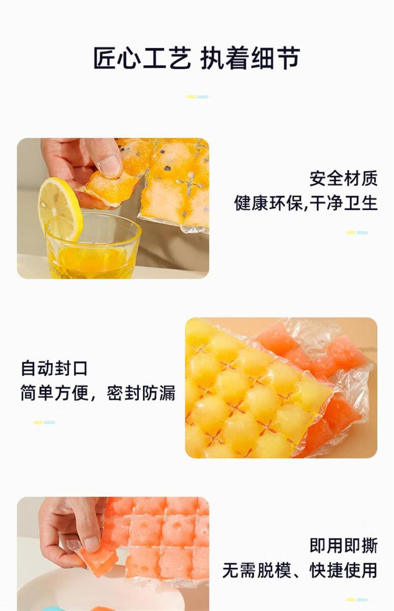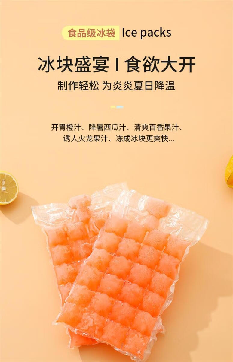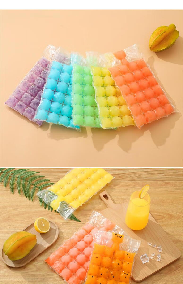 Yong Huan Ice Bag Edible Homemade Frozen Ice Cube Mold Self-sealing Small Ice Tray Passion Fruit Ice Box Bag Self-sealing Tearable Ice Cube Bag 4800 Grids 200 Pieces Free of a Funnel