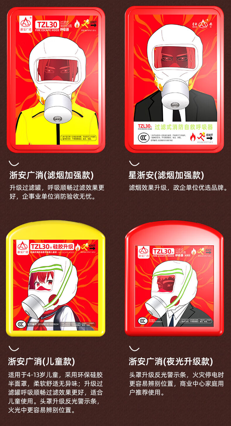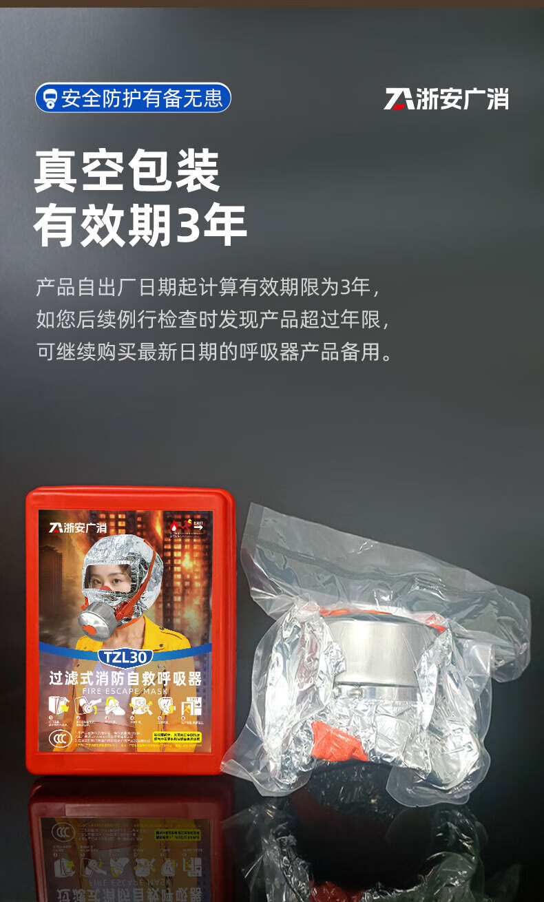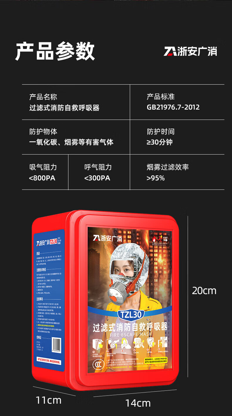 Jingxi Selection Gas Mask Fire Mask Anti-Smoke Escape Fire Mask 3C Certified Filtering Self-Rescue Respirator TZL30 Escape Mask Upgraded Model 20 Boxes in a Box