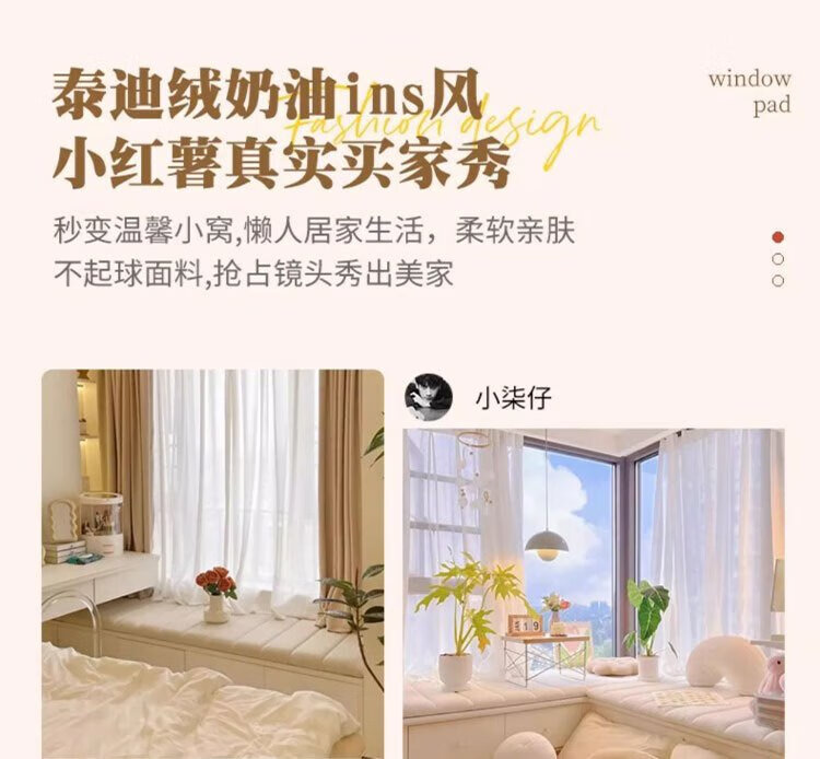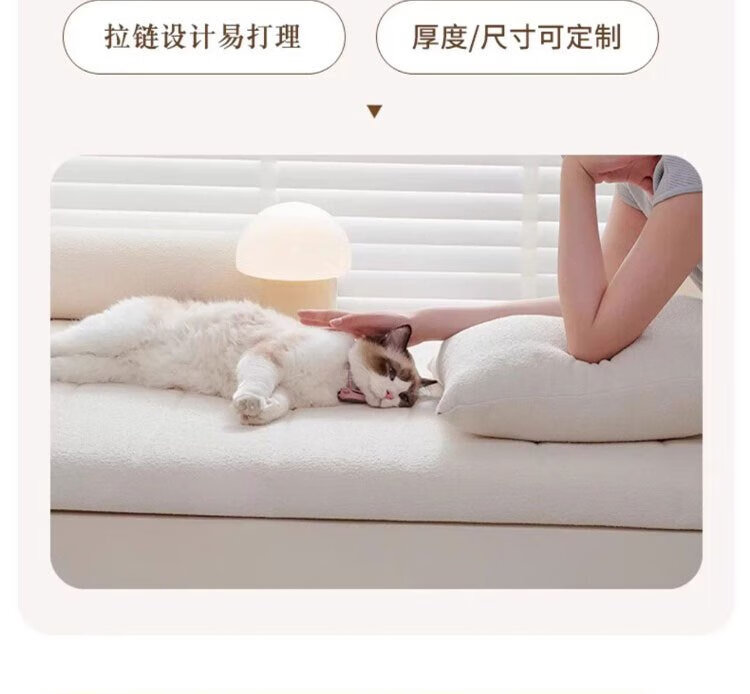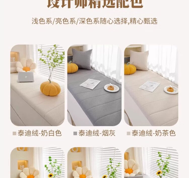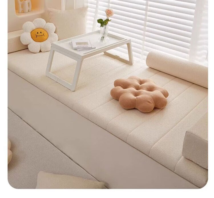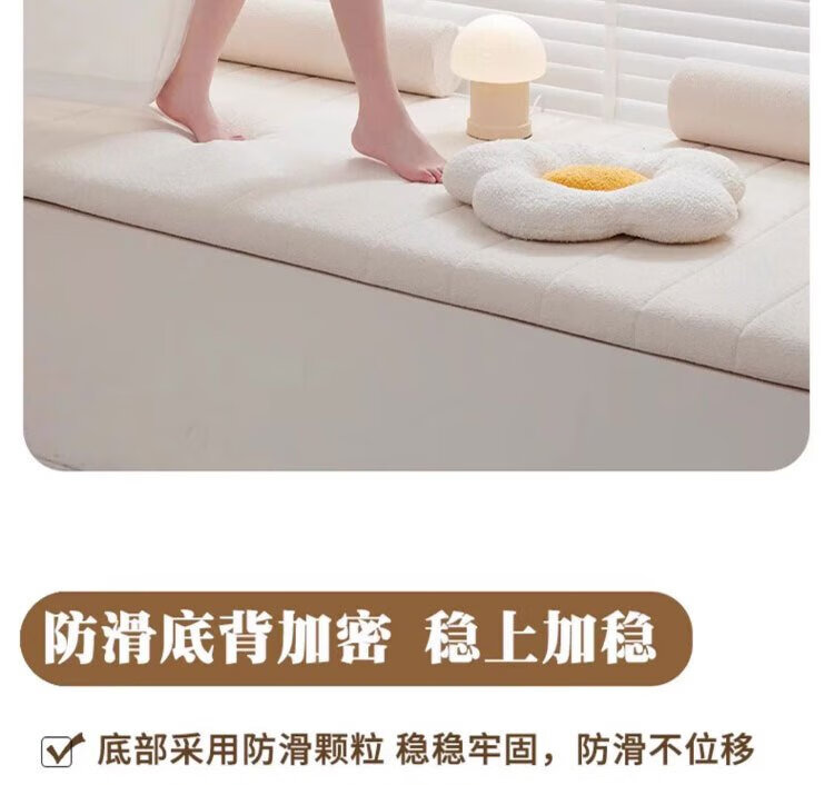 Lange Bay Window Mat Window Sill Mat 2025 New Four Seasons Teddy Velvet Cushion Balcony Mat Customized Bedroom Removable and Washable Flat Type Caiqin-Beige Thickness Customized 3.5/4.2/5.5/6.2/9.2/11.2/13.2cm