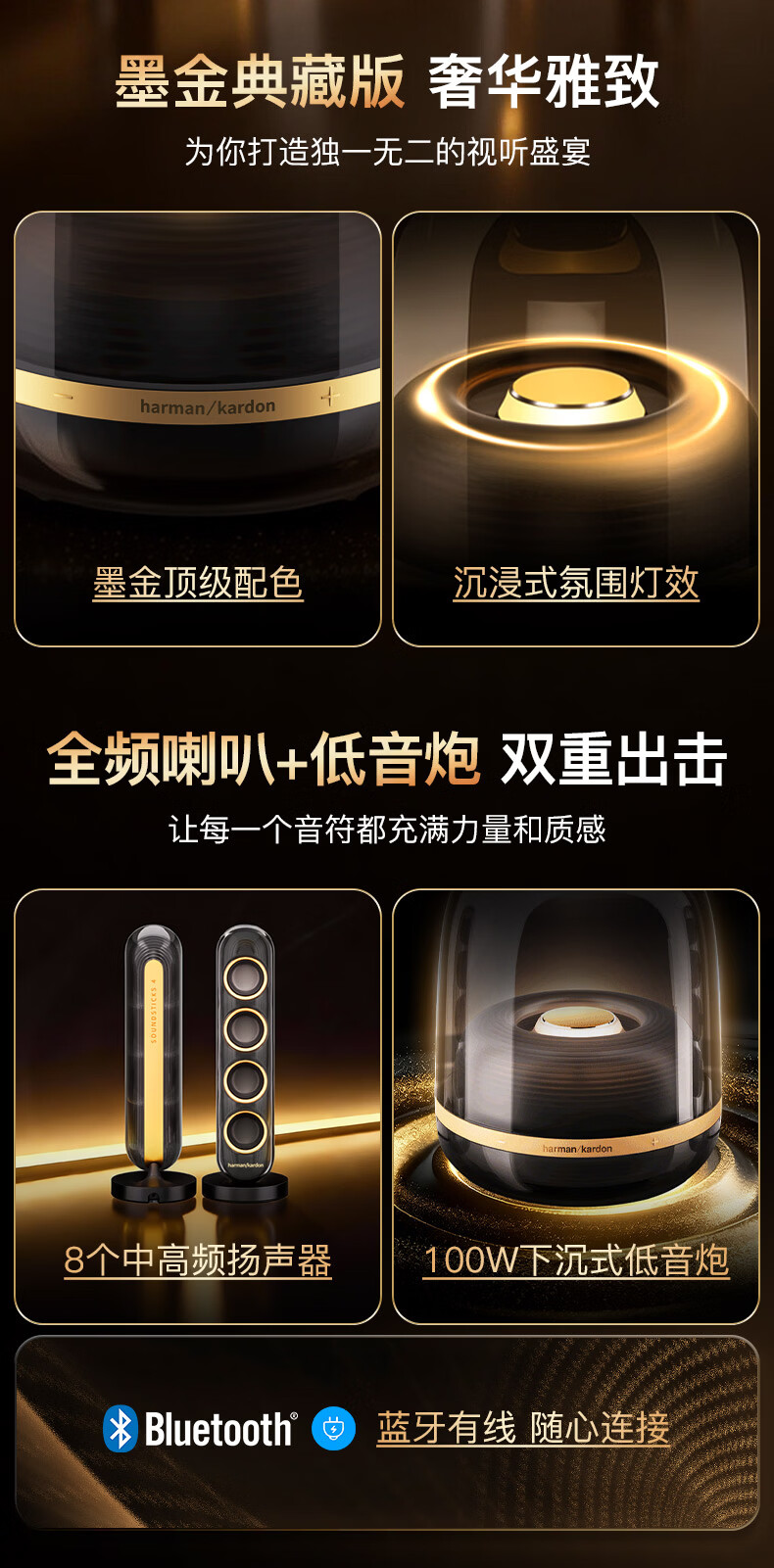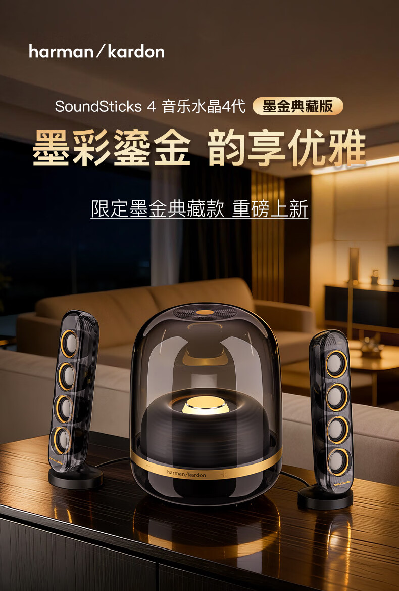 Harman Kardon Crystal 4th Generation Desktop Bluetooth Speaker Crystal 4 Black Gold Collector’s Edition Computer Universal Soundsticks4 Black Gold Edition Computer Speaker Bluetooth Atmosphere New Year’s Gift Crystal 4 Black Gold Collector’s Edition