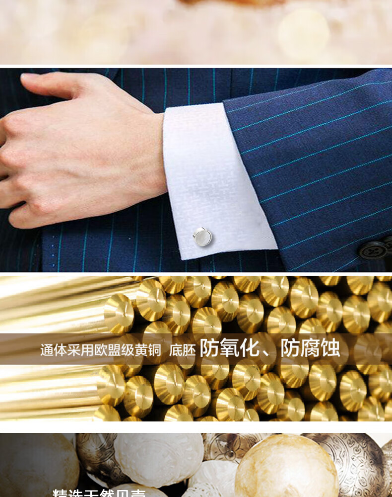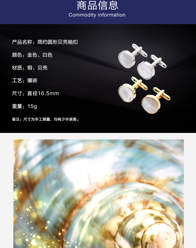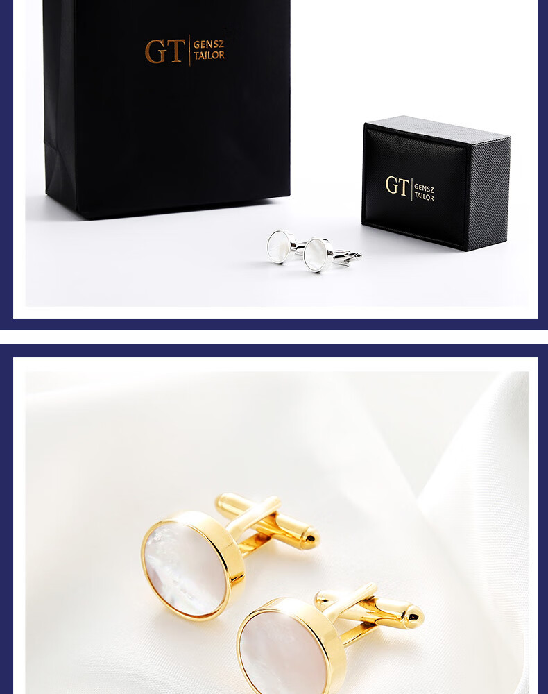 GENSZ GT GENSZ 2022 Summer Natural Shell Cuff Buttons Silver Gold French Shirt Formal Men's Gift Box Gold Coast