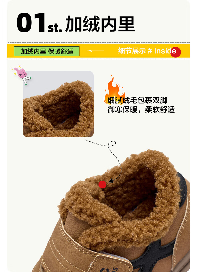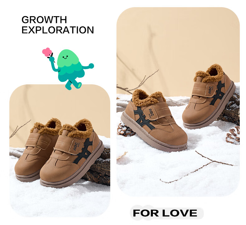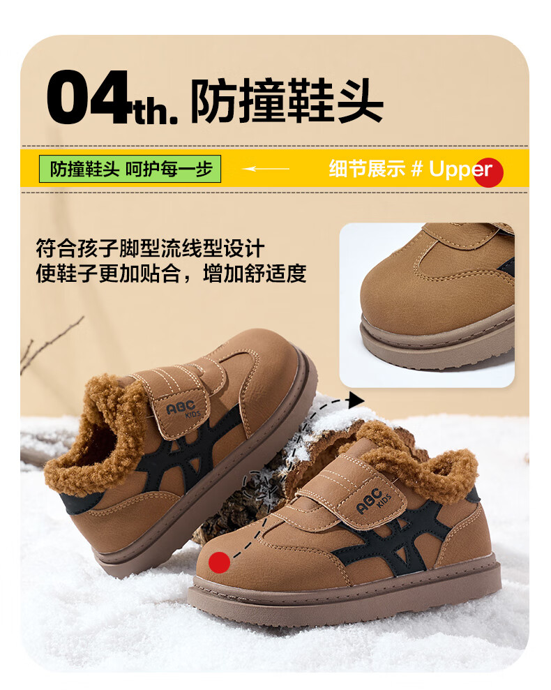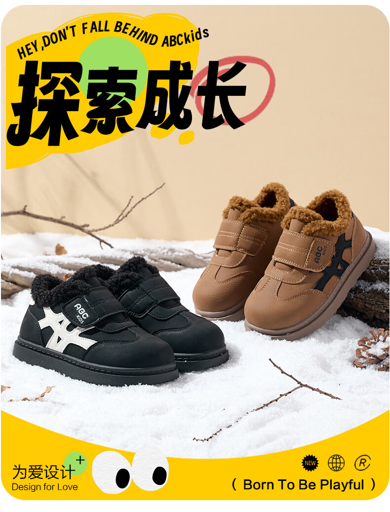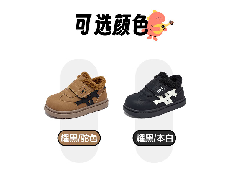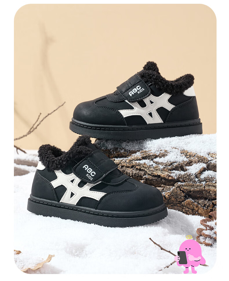 ABC KIDS children's shoes, fashionable children's velvet cotton shoes, boys' simple casual shoes, 2026 winter new girls' warm shoes, black/camel 28, inner length about 18cm