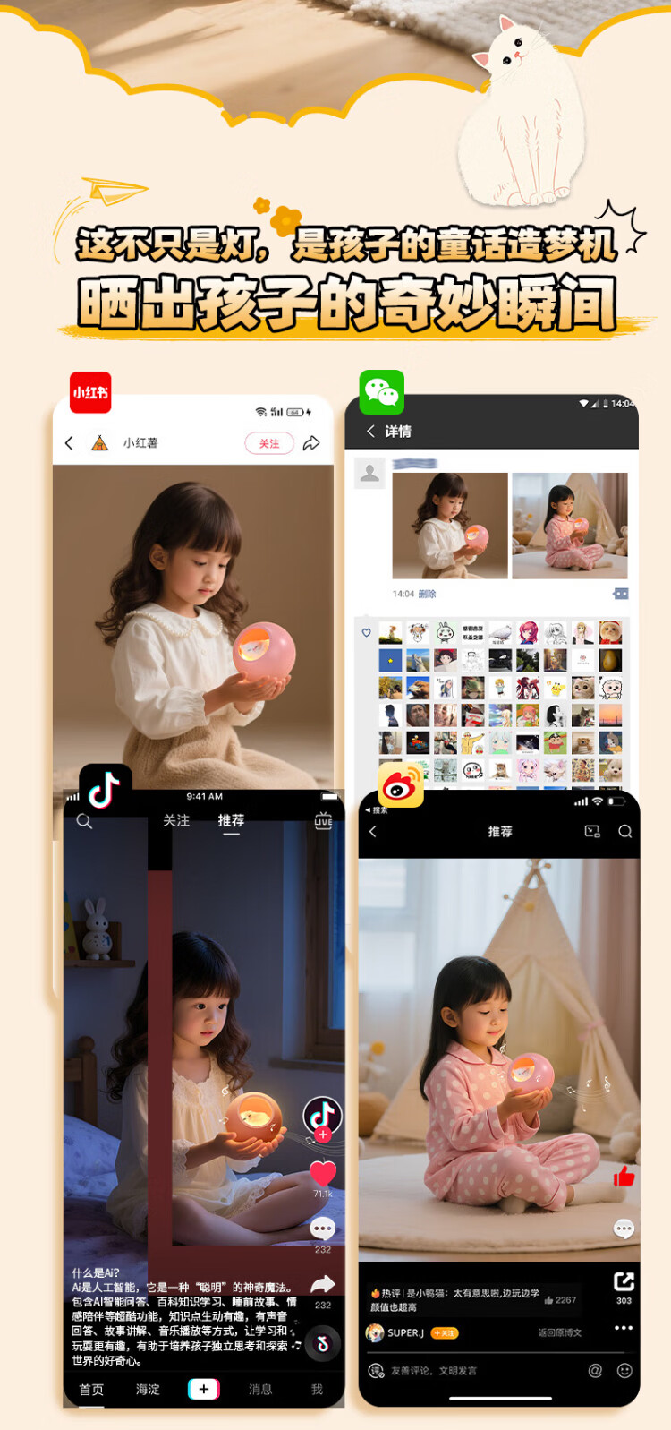 Gegeju AI children's toys New Year's birthday gift 8 girls 9 girls 10-15 practical 6 advanced 12 educational 7-14 years old SF-Ghostwriting greeting card white cat nest lamp (New Year packaging + gift bag)