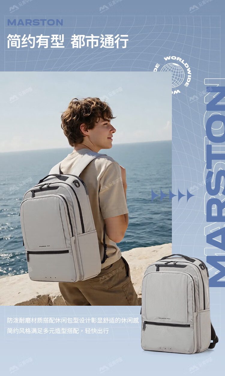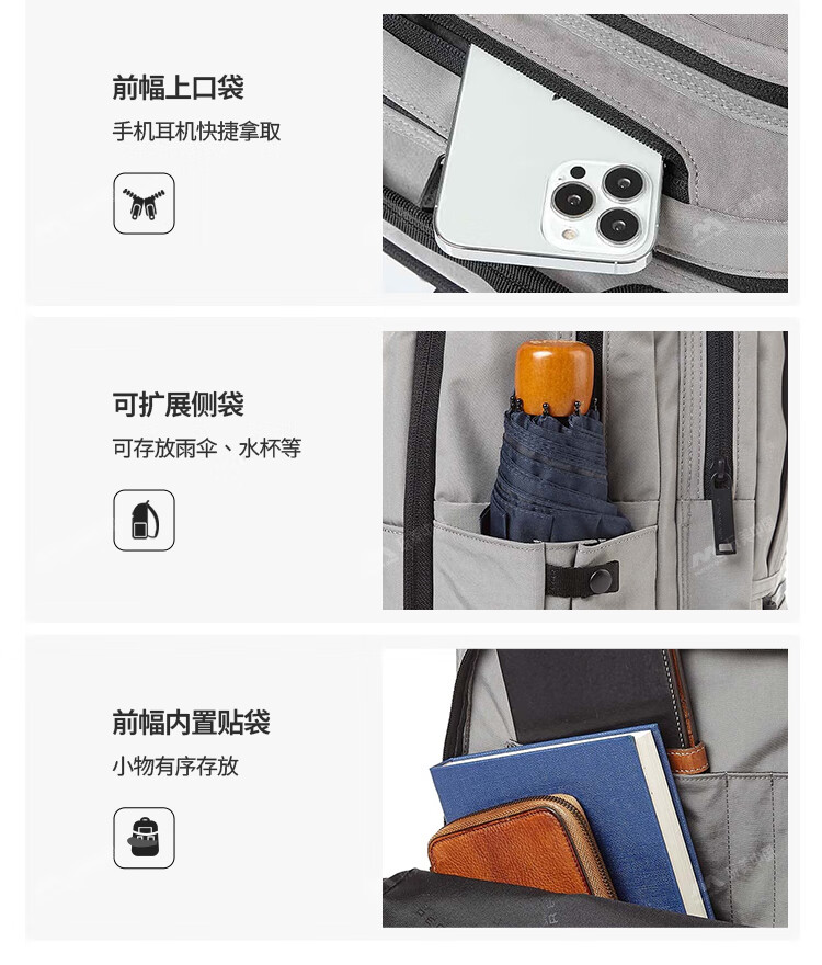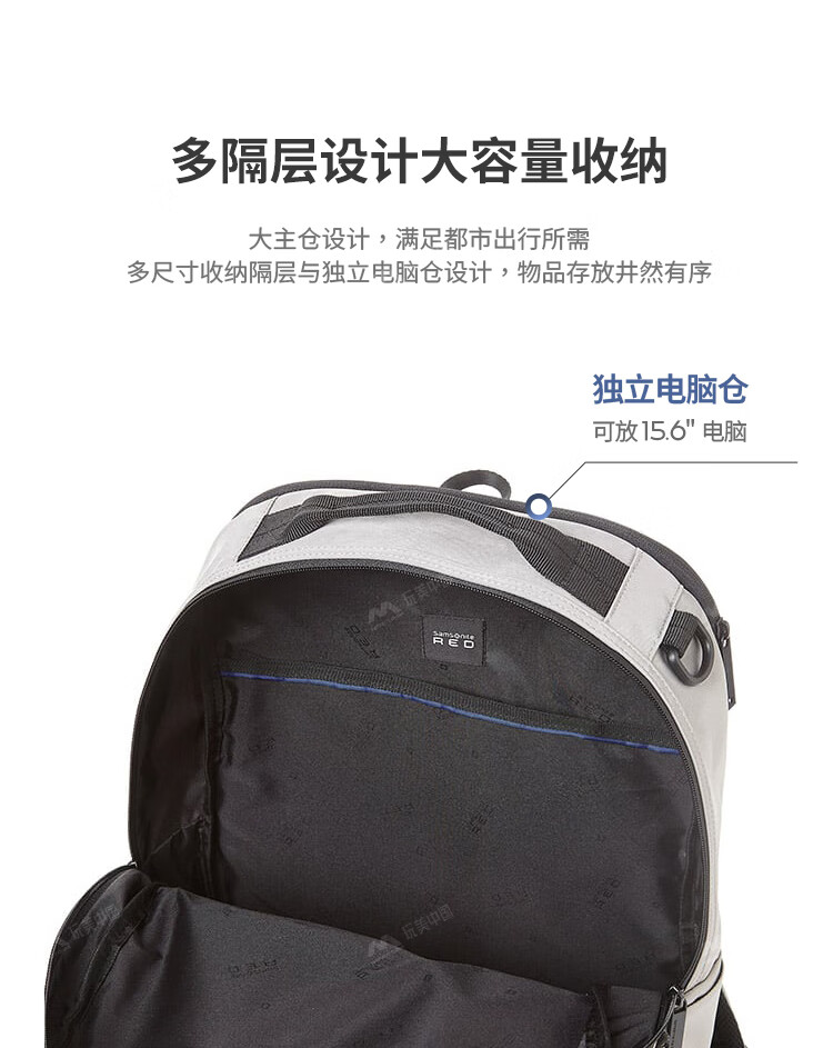 Samsonite/Multifunctional backpack 32 large capacity with extended mountaineering bag 3 computer bag men's official flagship authentic gray large size Q108001