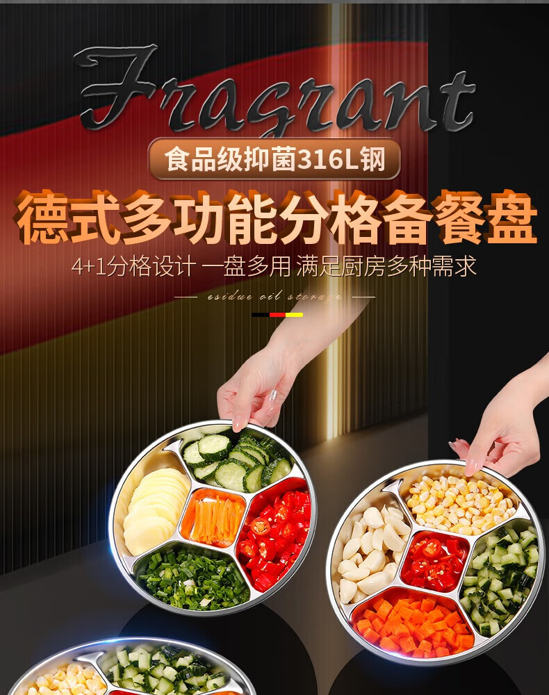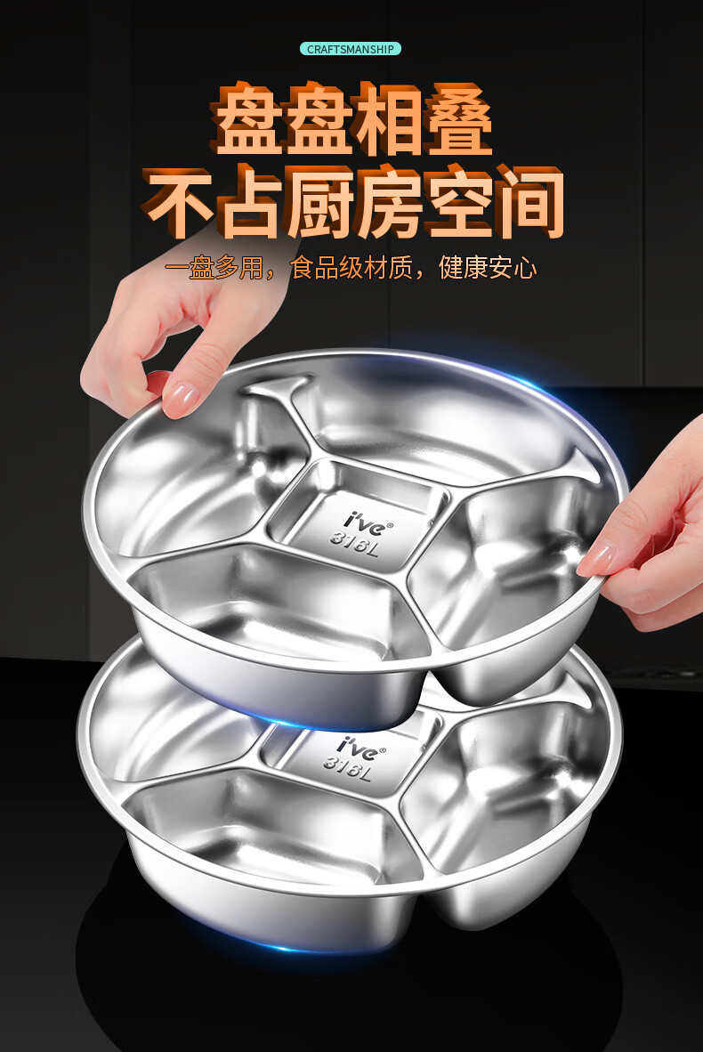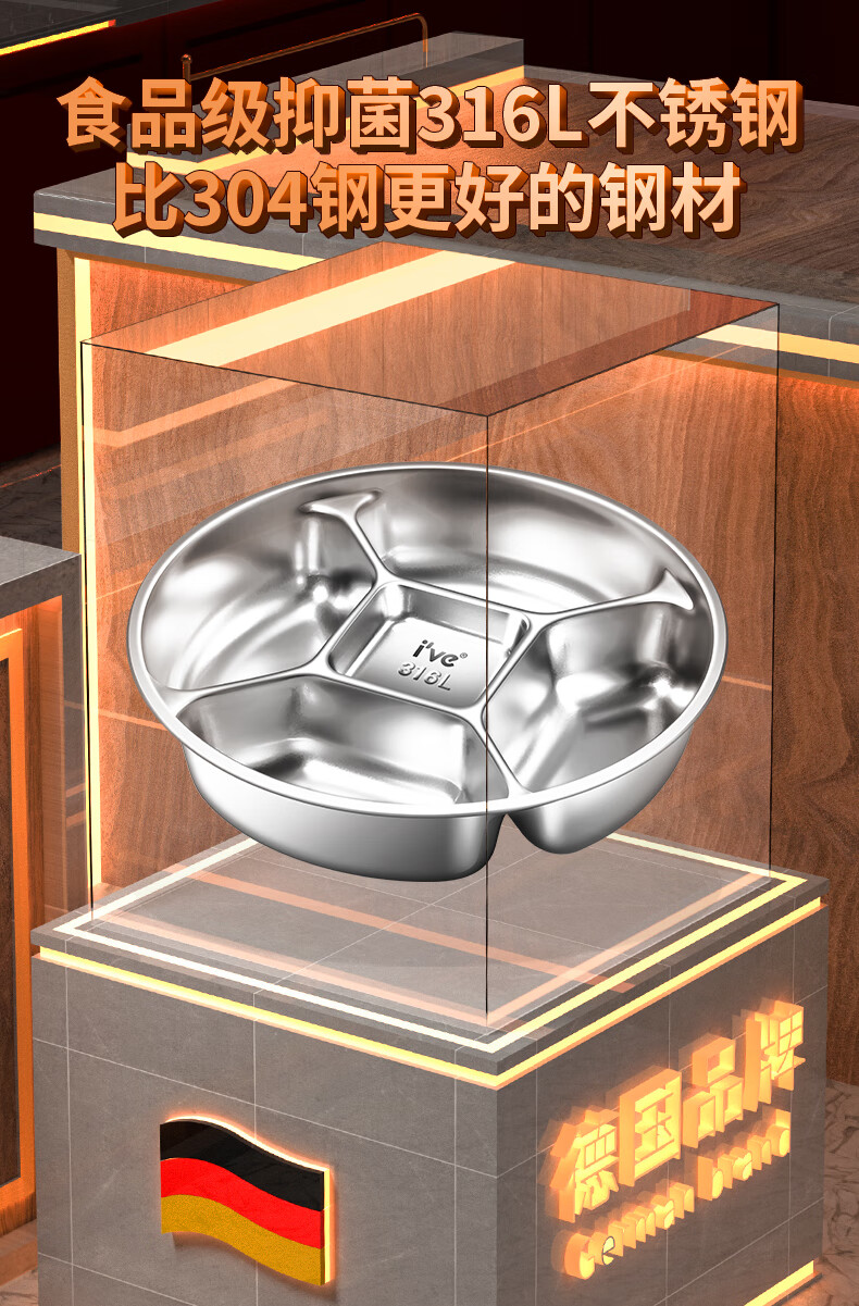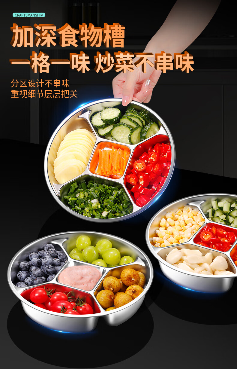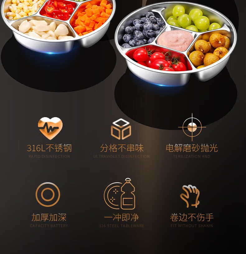 I VE316L stainless steel divided plate for kitchen onion, ginger and garlic ingredients divided plate for deepening hot pot side dish tray. Upgraded and thickened 316L all-steel-five-compartment plate for food preparation-dipping-separating-food supplement-steaming tray.