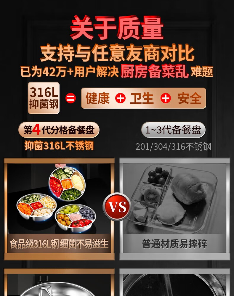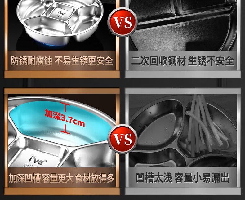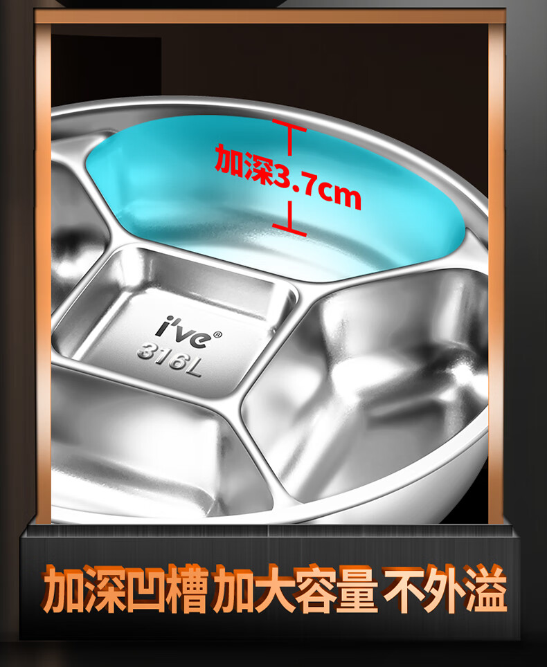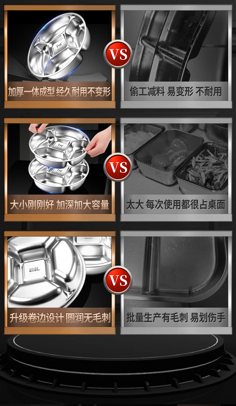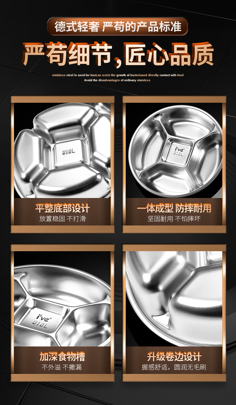 I VE316L stainless steel divided plate for kitchen onion, ginger and garlic ingredients divided plate for deepening hot pot side dish tray. Upgraded and thickened 316L all-steel-five-compartment plate for food preparation-dipping-separating-food supplement-steaming tray.