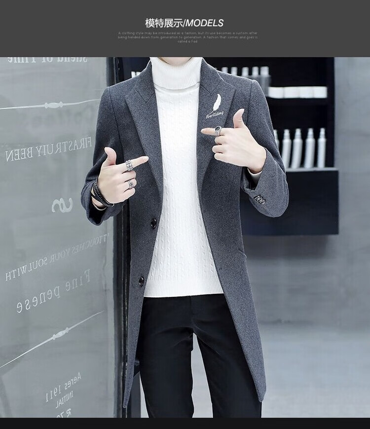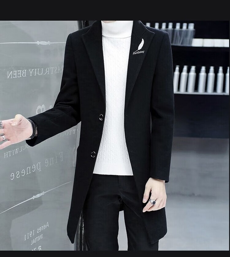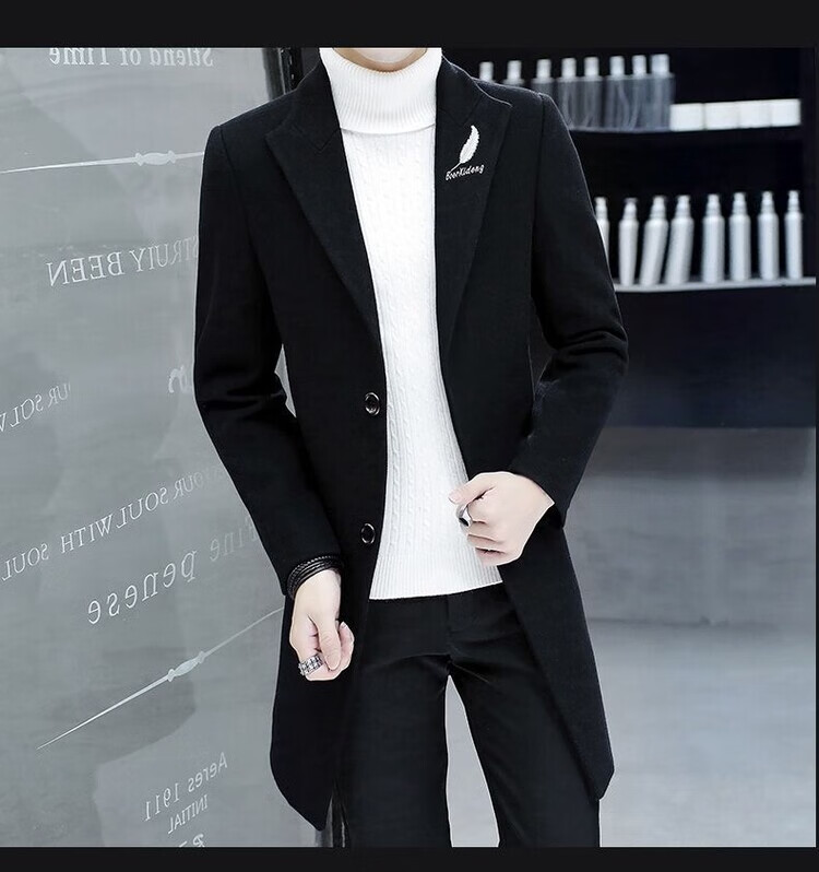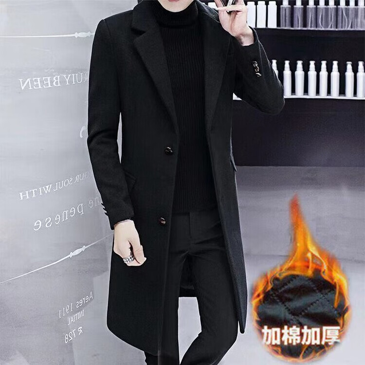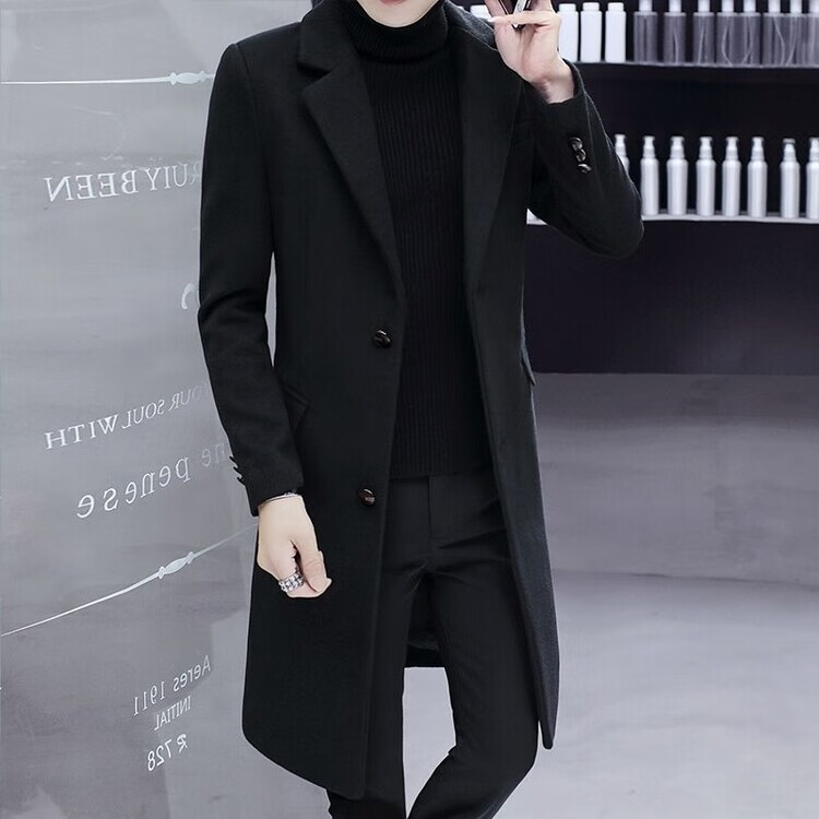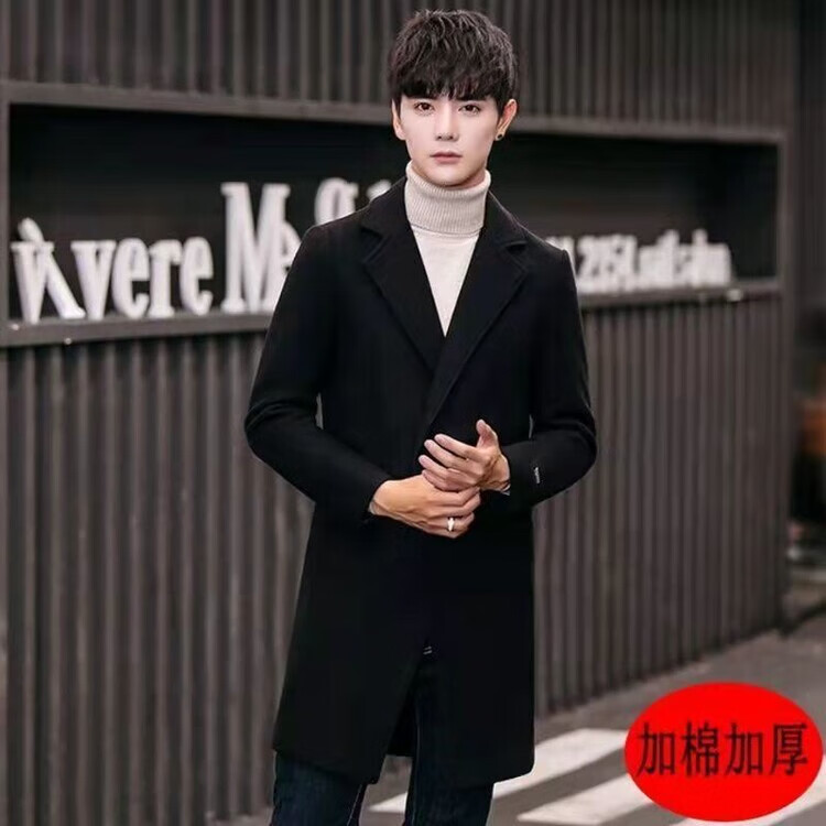 Want to fight Hangzhou Italian-French windbreaker men's mid-length woolen coat Korean version slim fashion woolen coat winter youth Garni coat pocket black L Weight 105Jin Jin equals 0.5kg -120