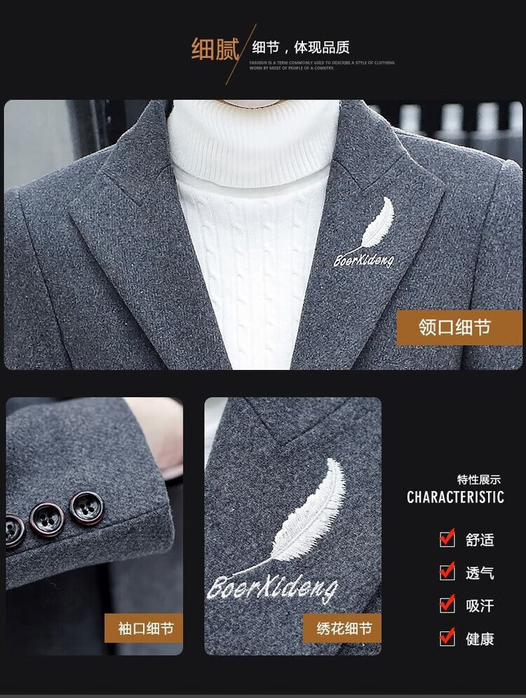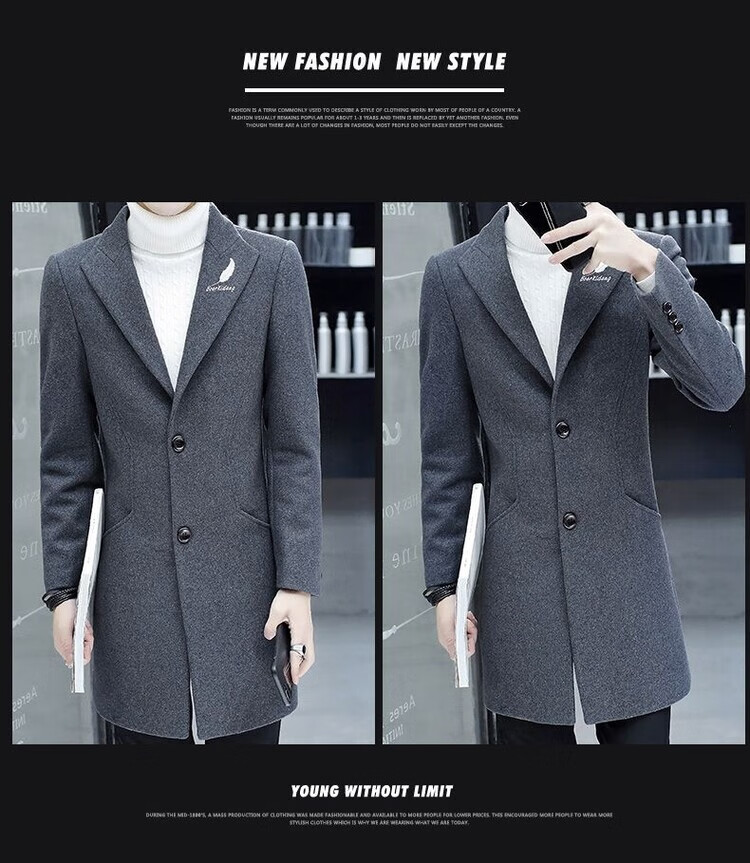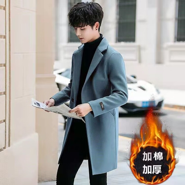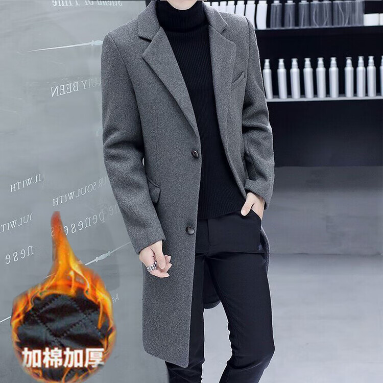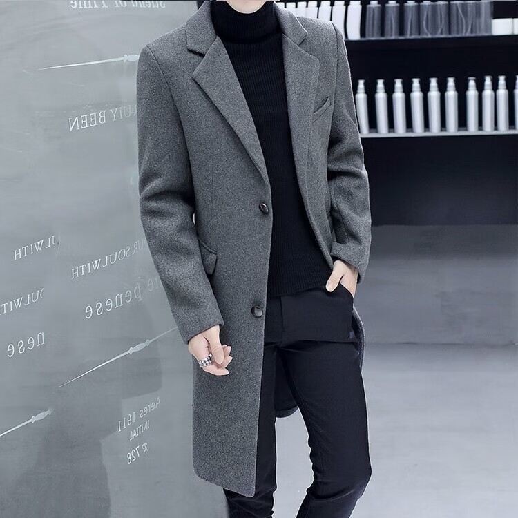 Want to fight Hangzhou Italian-French windbreaker men's mid-length woolen coat Korean version slim fashion woolen coat winter youth Garni coat pocket black L Weight 105Jin Jin equals 0.5kg -120