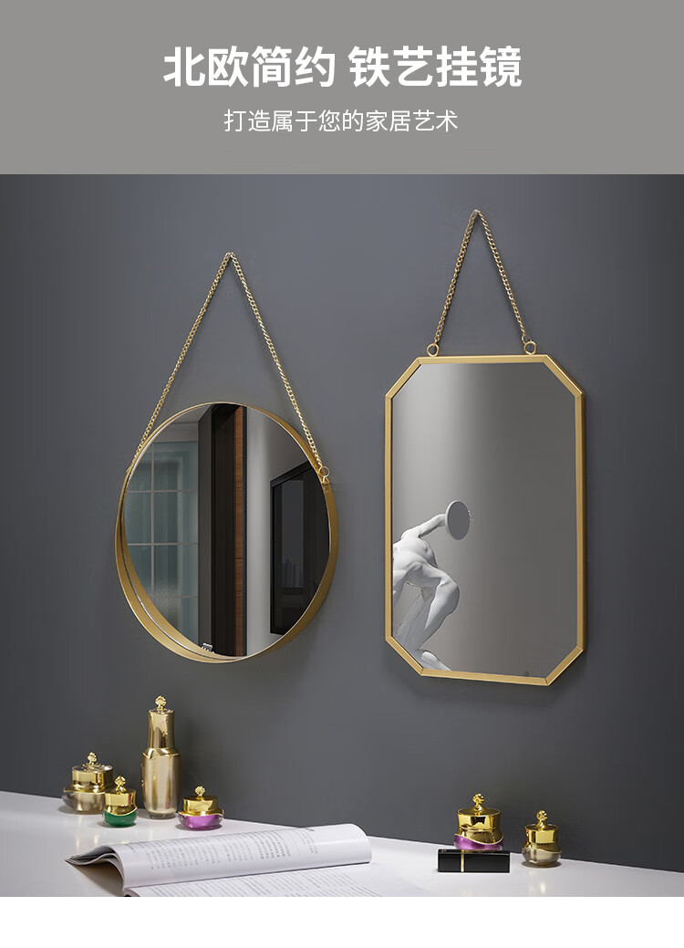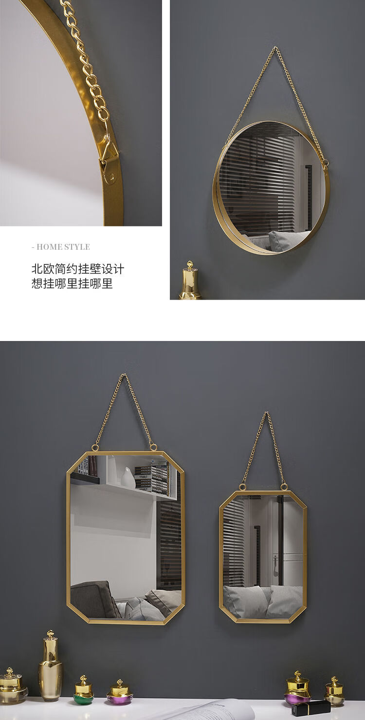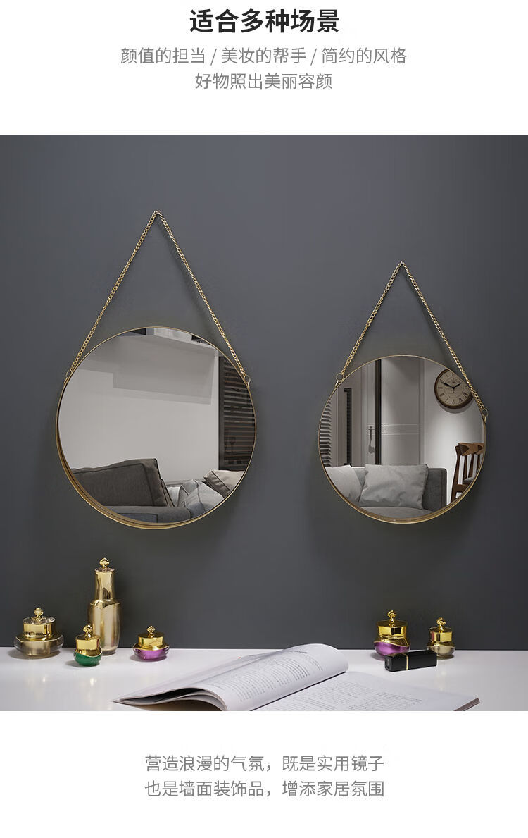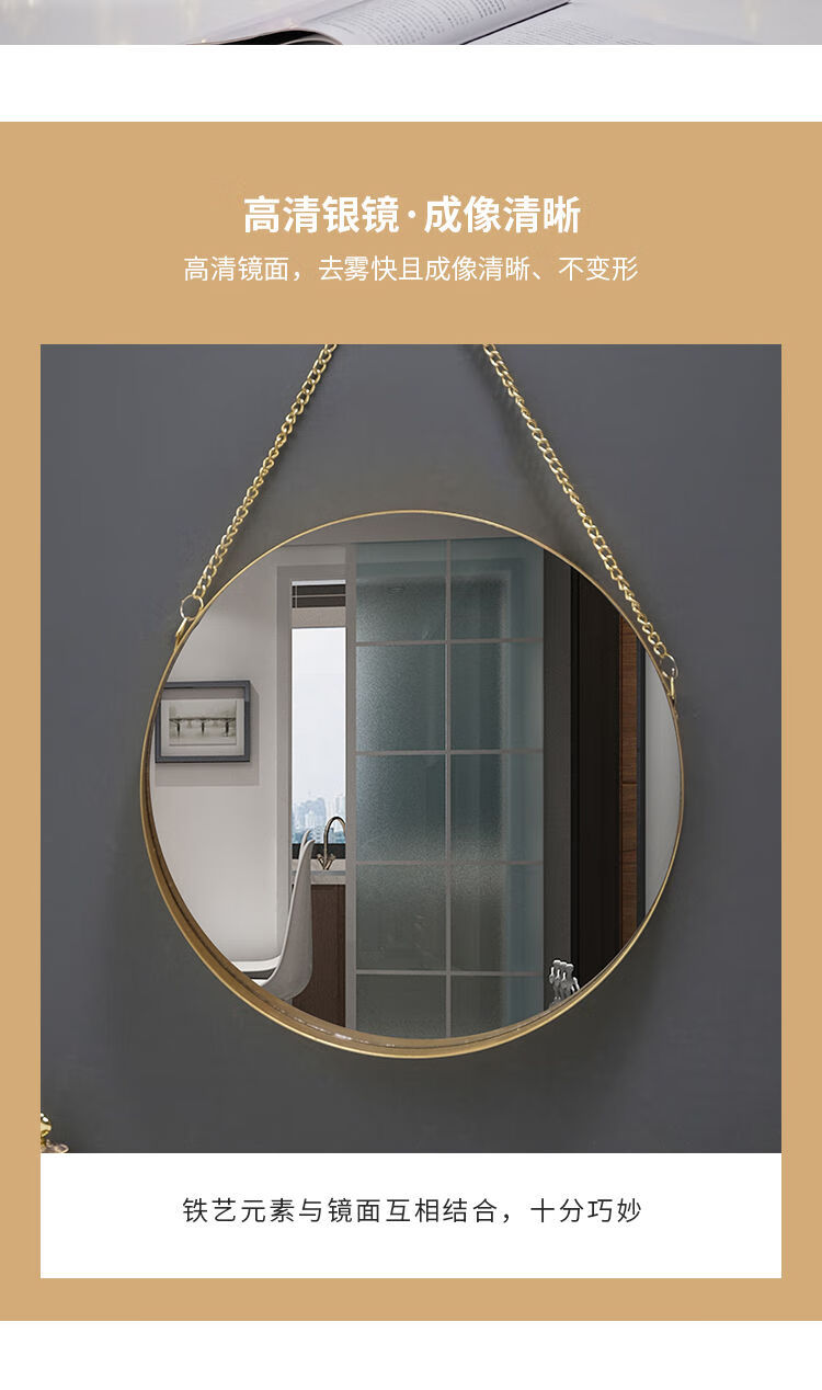 Nordic style iron round wall-mounted mirror bathroom bathroom dormitory mirror wall-mounted washbasin wall-mounted makeup mirror small wall-mounted round mirror gold