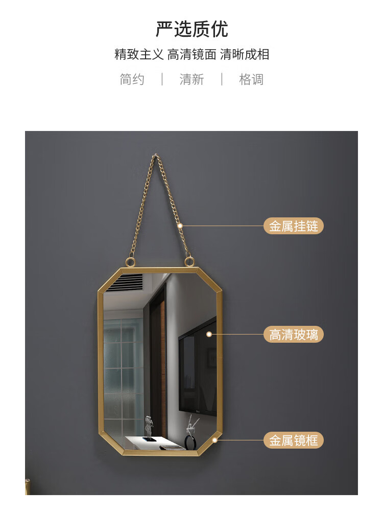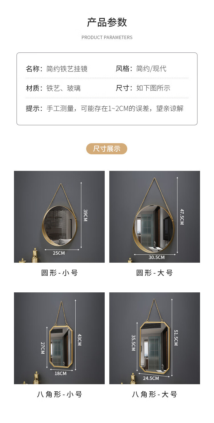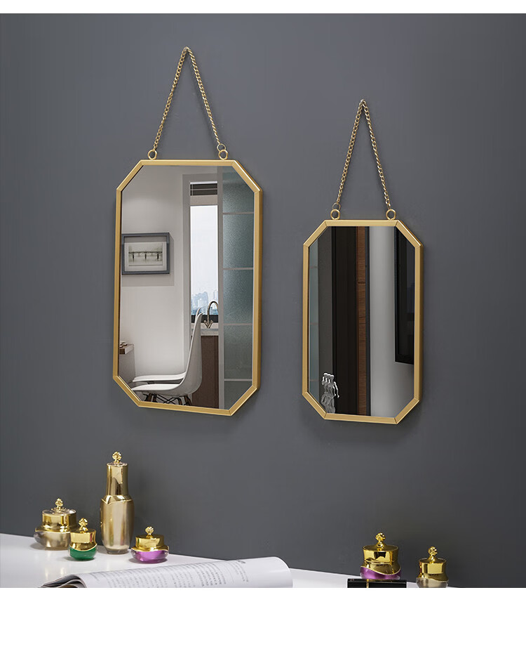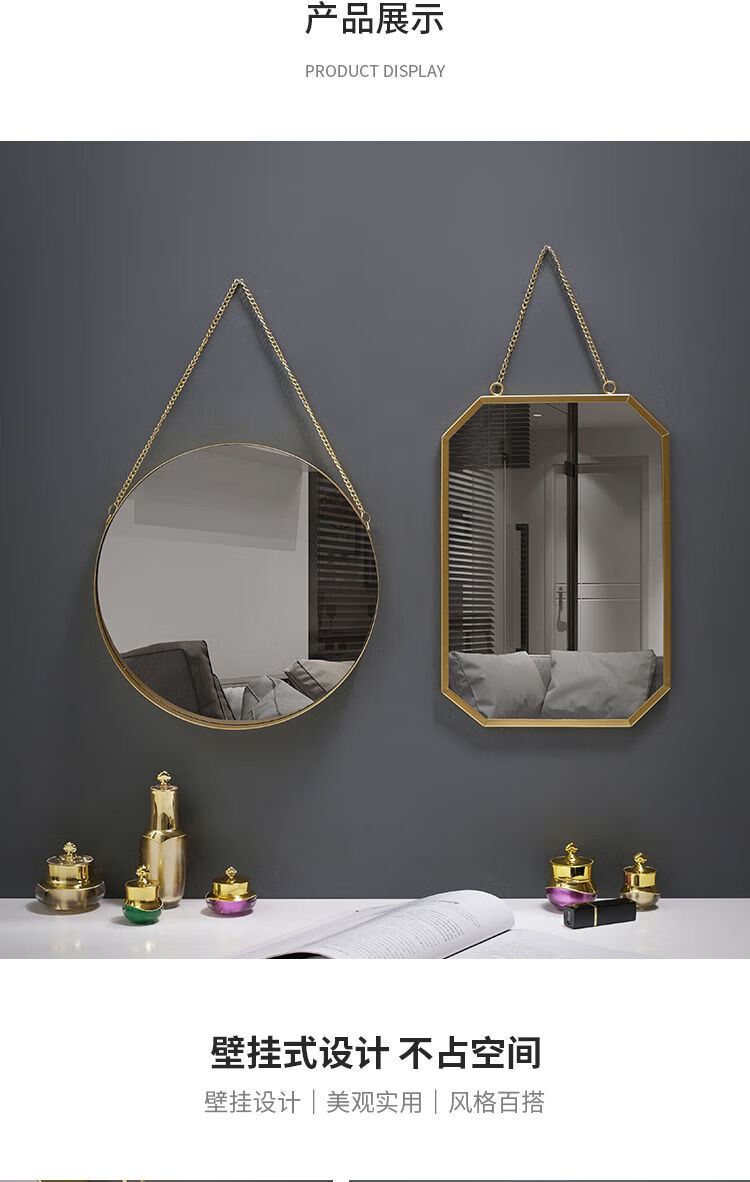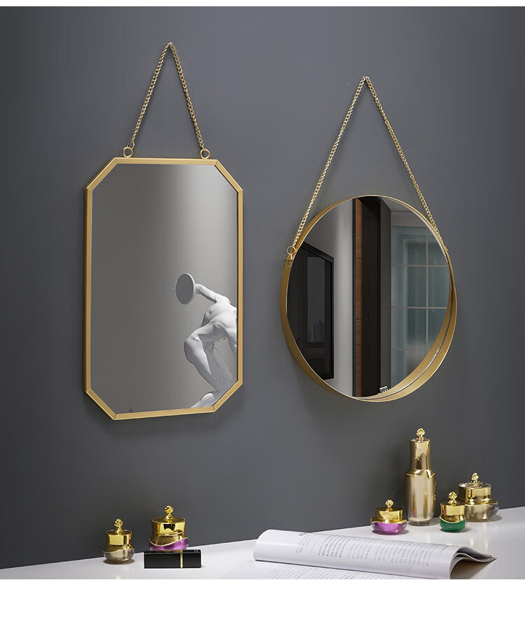 Nordic style iron round wall-mounted mirror bathroom bathroom dormitory mirror wall-mounted washbasin wall-mounted makeup mirror small wall-mounted round mirror gold