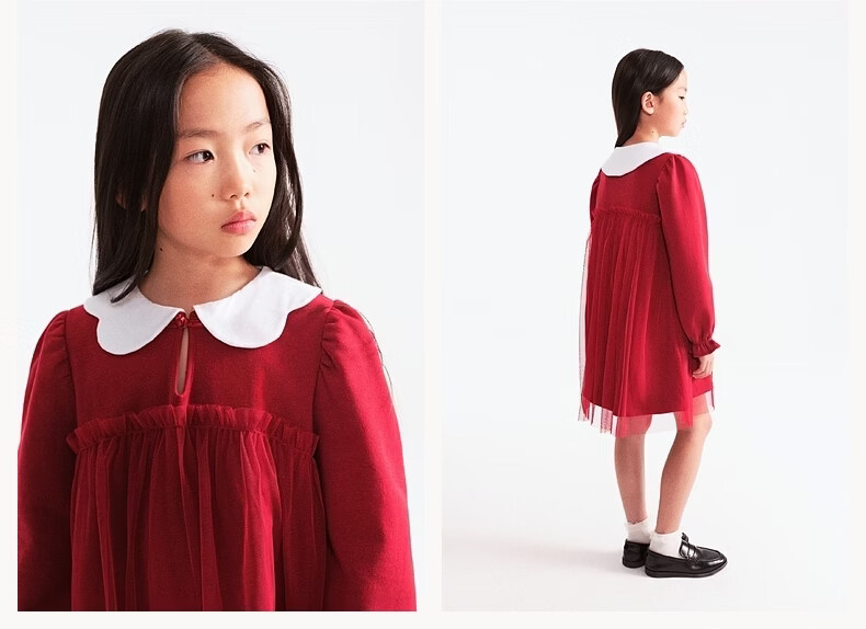 H&M Children's Clothing Children's Girls Skirt 2026 Spring New Outdoor Outing Lapel Cute Sweater Skirt 1323241 Red 110 110/56 (2-4Y)