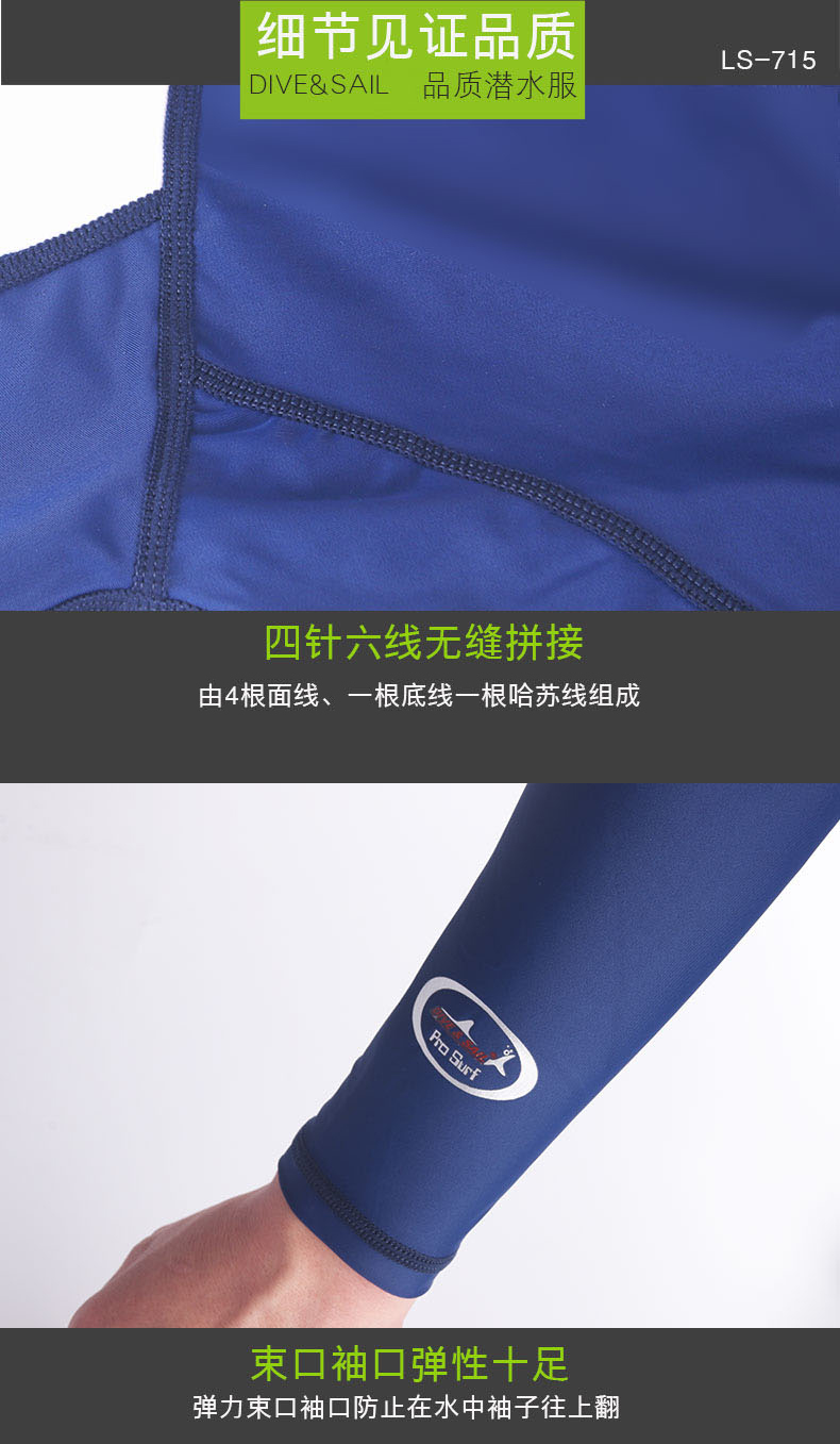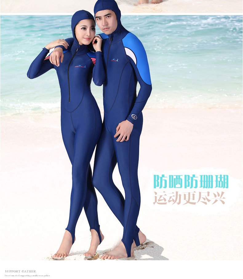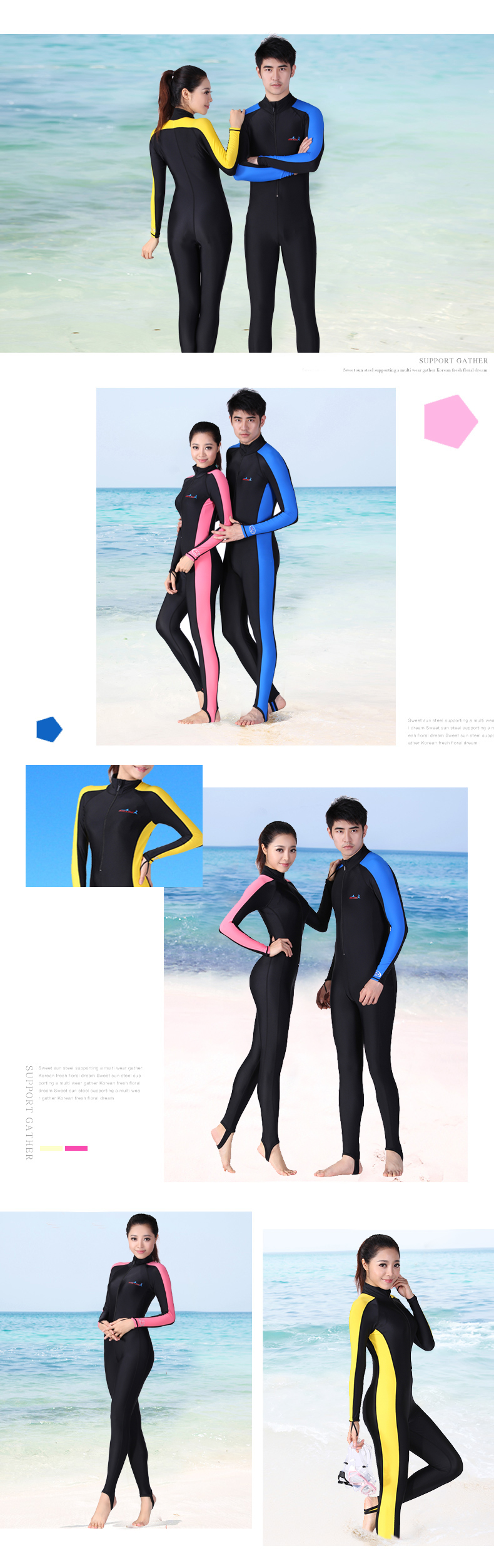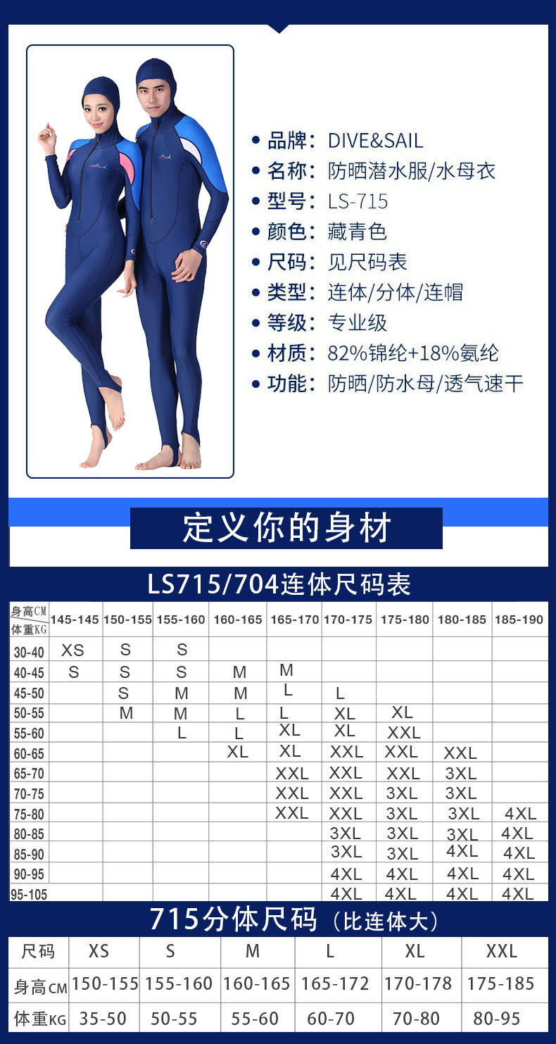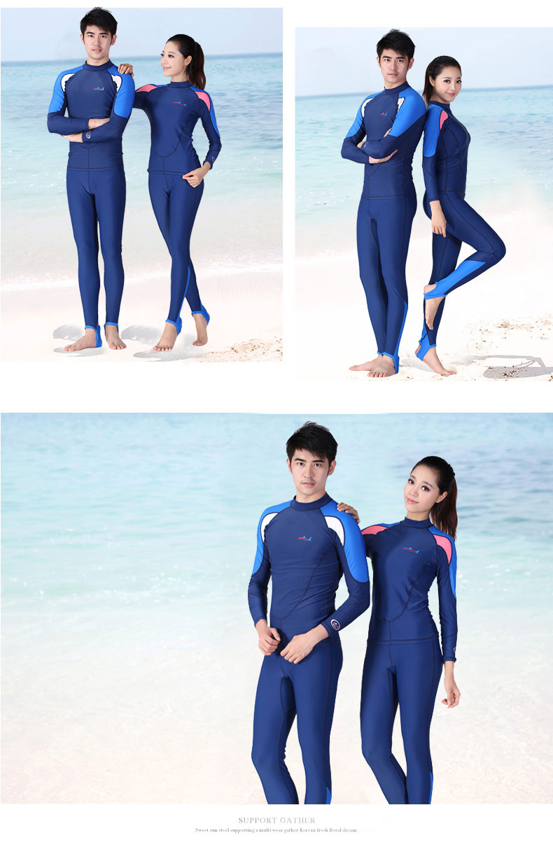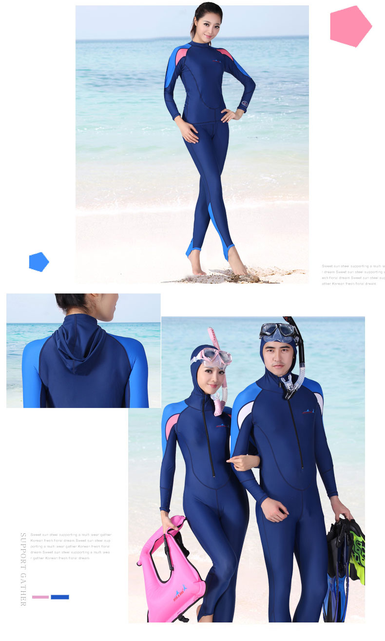 DIVE&SAIL New Diving Suit Couple Female Split Sunscreen Long Sleeve Large Size One-piece Swimsuit Slimming Quick-Drying Jellyfish Suit Men's Snorkeling Suit 715 No Hat Blue Pink Padded L