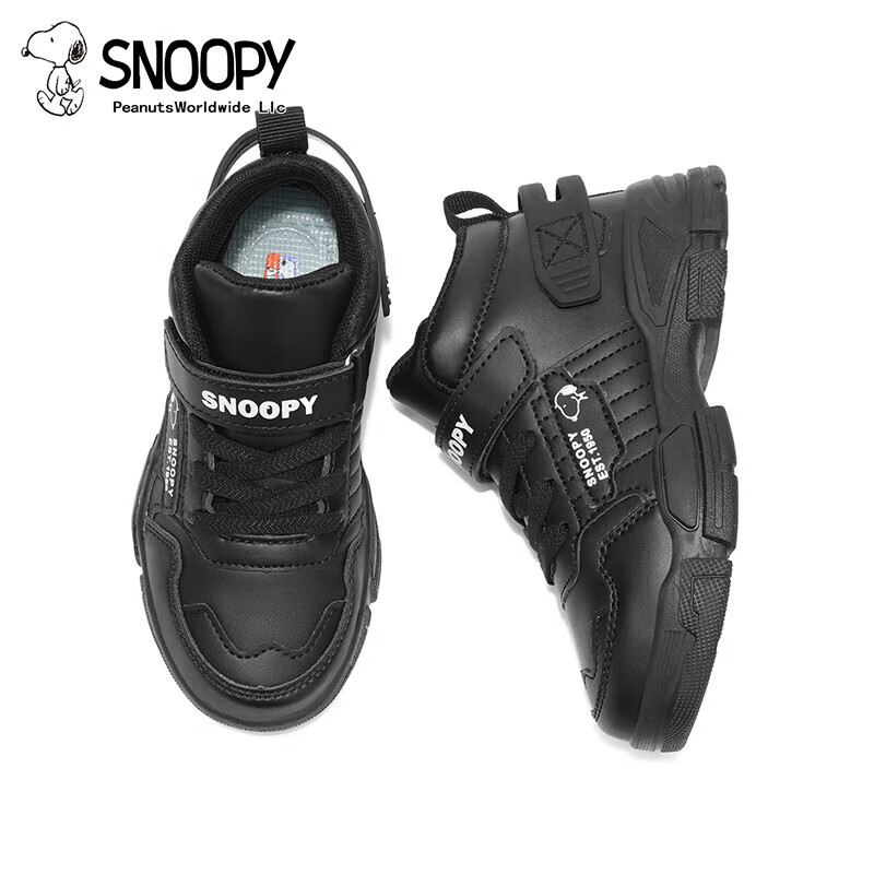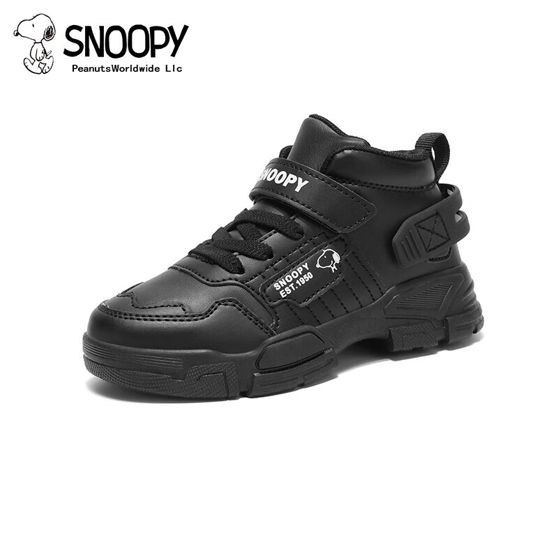 Snoopy (SNOOPY) 50% off children's shoes, children's cotton shoes, new winter short fleece warm sports shoes for boys and girls, medium and large children, brown, size 38, suitable for inner length 24.0cm