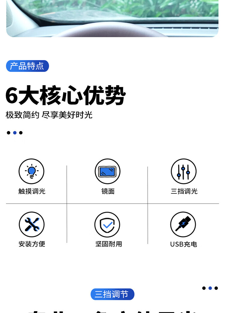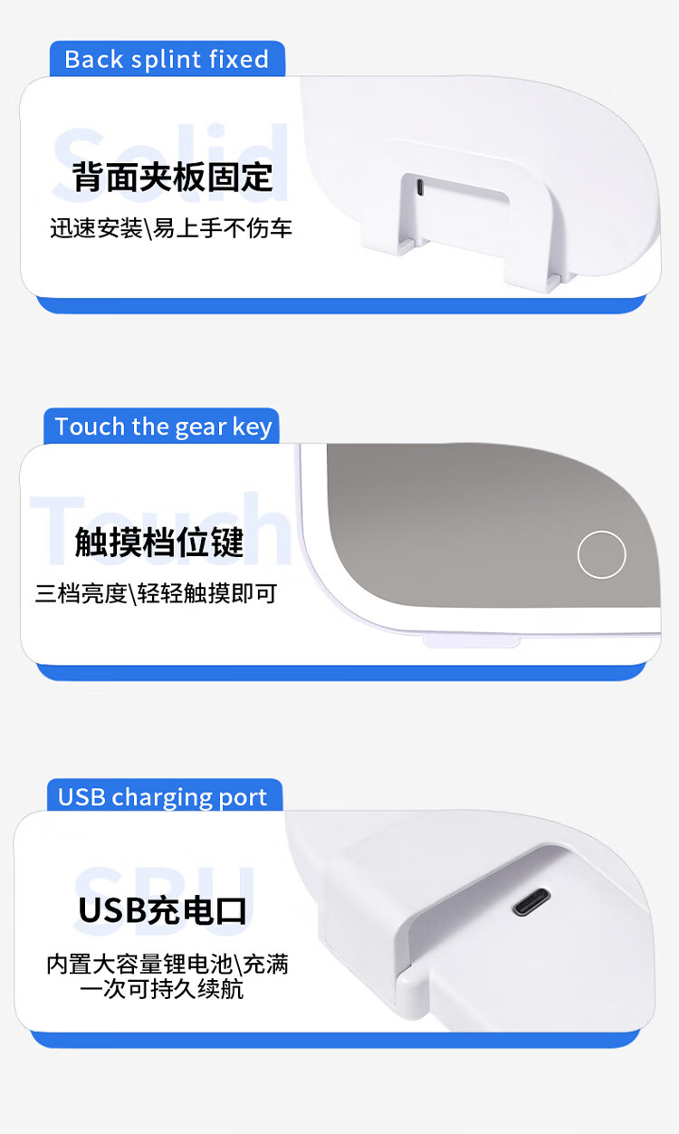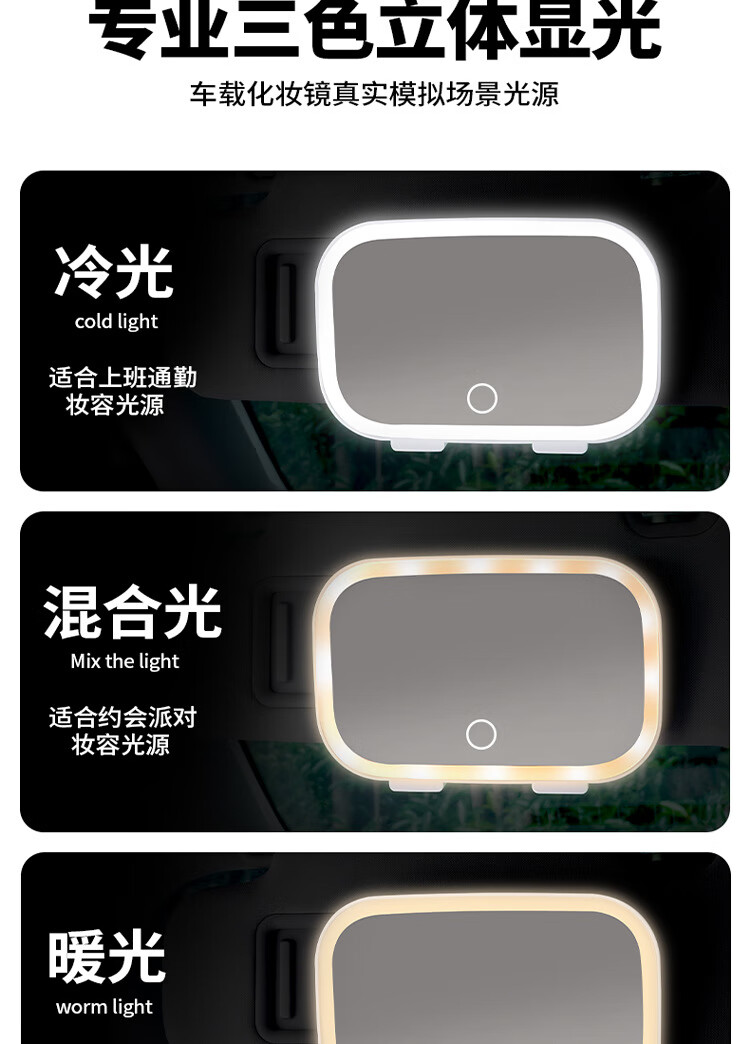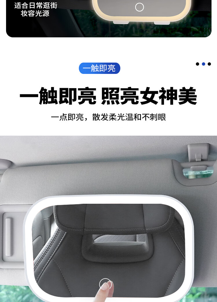 Car makeup mirror with light LED dimming fill light beauty device LED touch light vanity mirror HD makeup mirror beauty device white without light regular car makeup mirror
