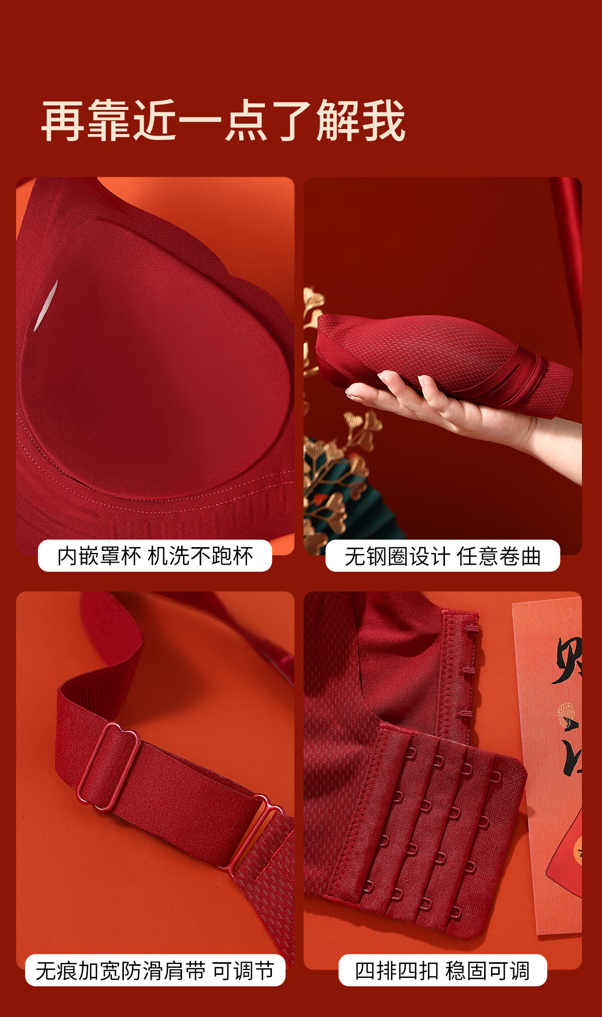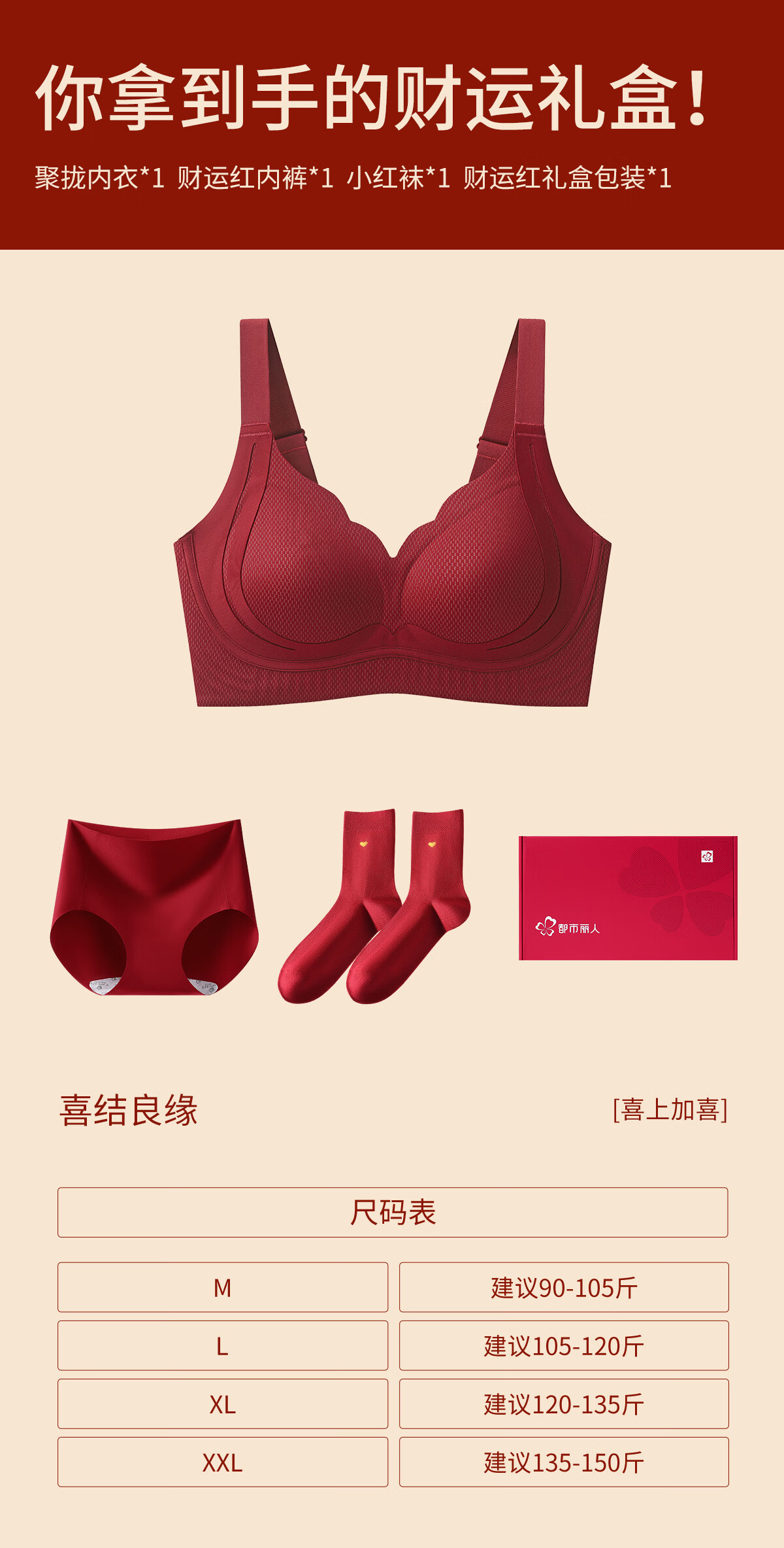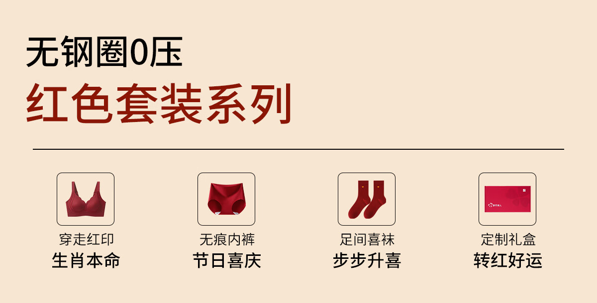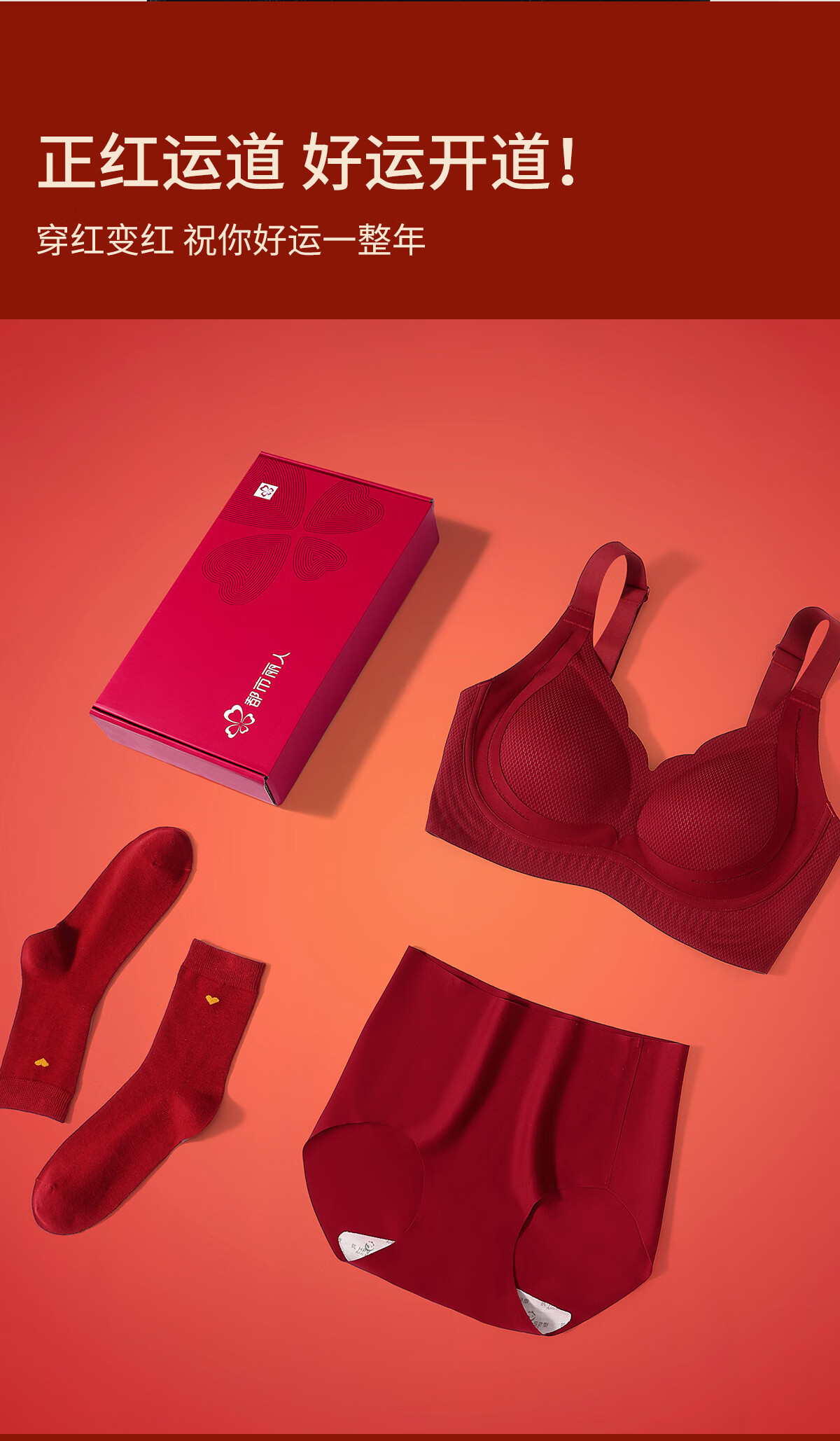 Urban Beauty Seamless Bra Women's Zodiac Year Underwear Set Red Wedding New Year Year of the Horse Gift Box Anchor Red Gift Box M