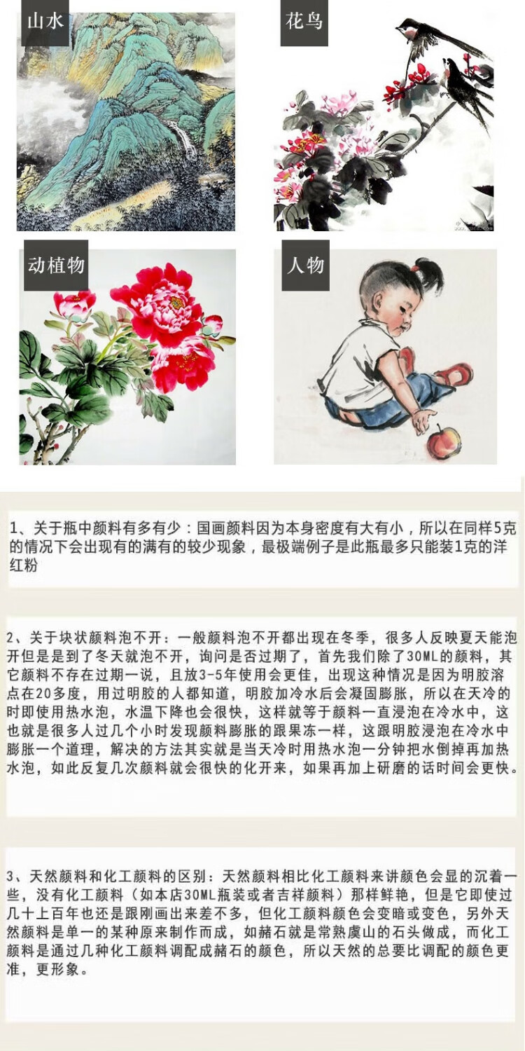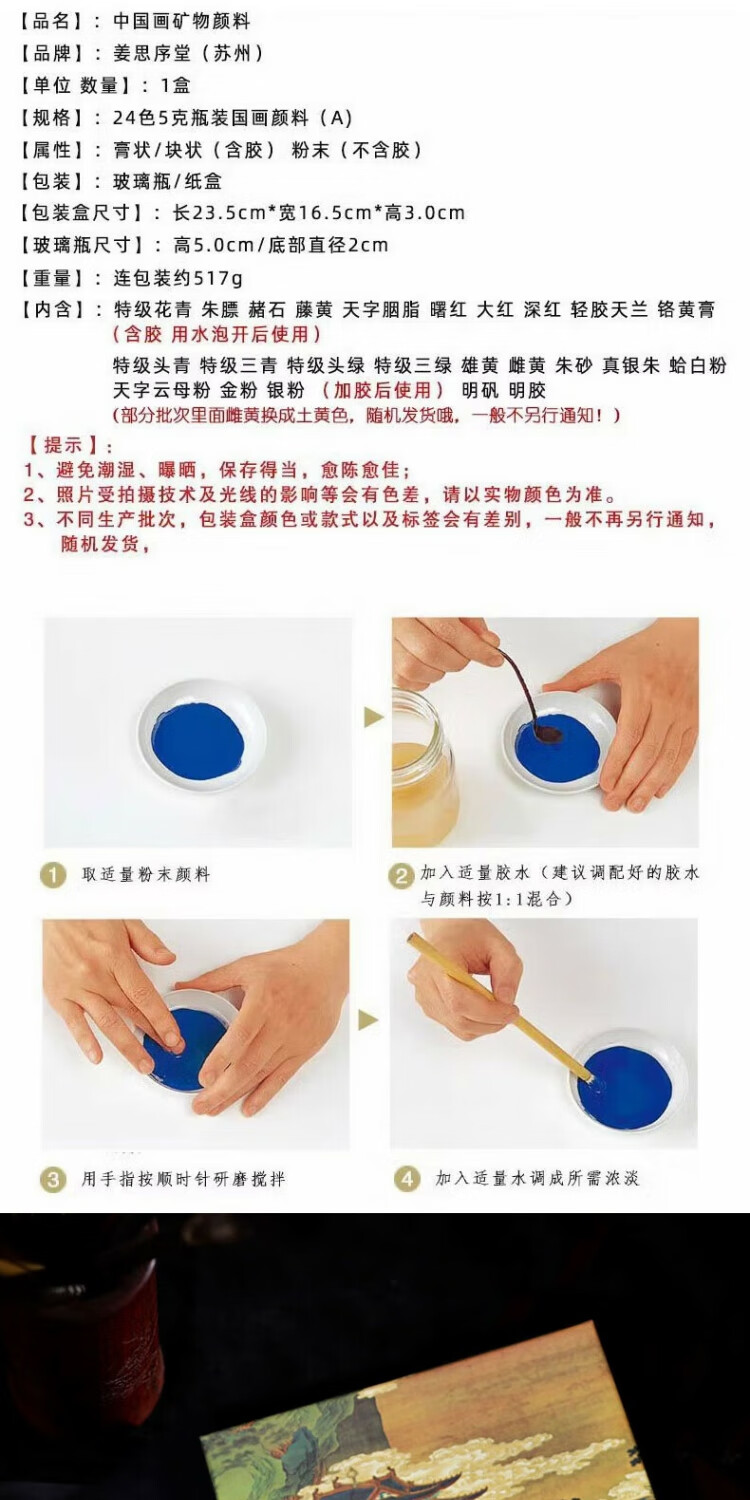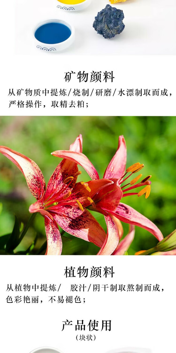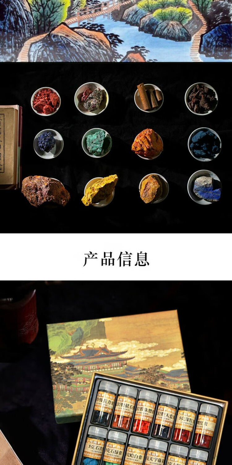 Jiang Sixu Tang 5g bottled 12-color Chinese painting pigments natural mineral plant pigments Chinese painting freehand brushwork ink painting block pigment high-end gift gift 12-color 5g bottled Chinese painting pigments (treasure)