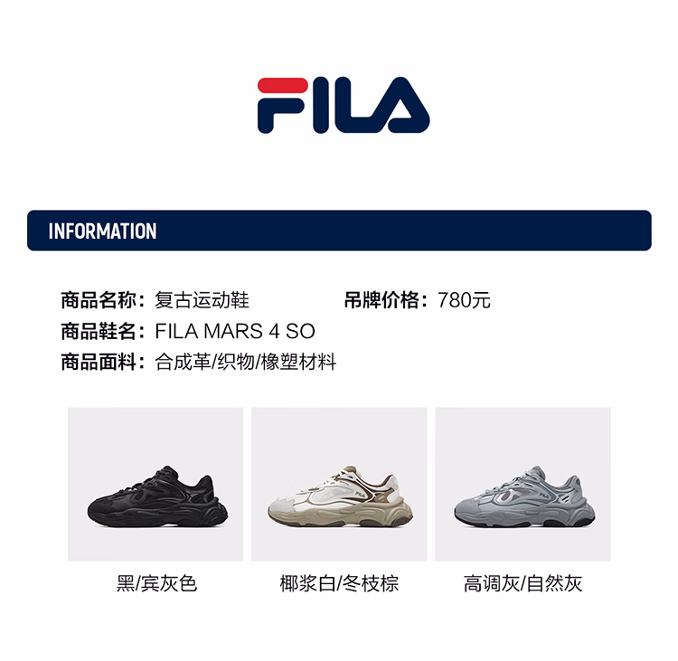 FILA Mars 4 S mesh retro running shoes men's shoes 2025 winter new dad shoes breathable sports shoes black/grey black/grey-BP 40.5