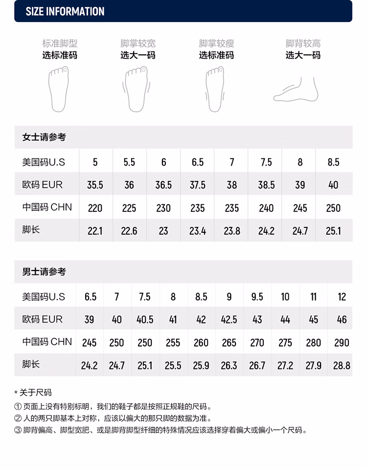 China (cm) 36 - 37 38 - 39 40 - 42 43 - 44 45 - 47