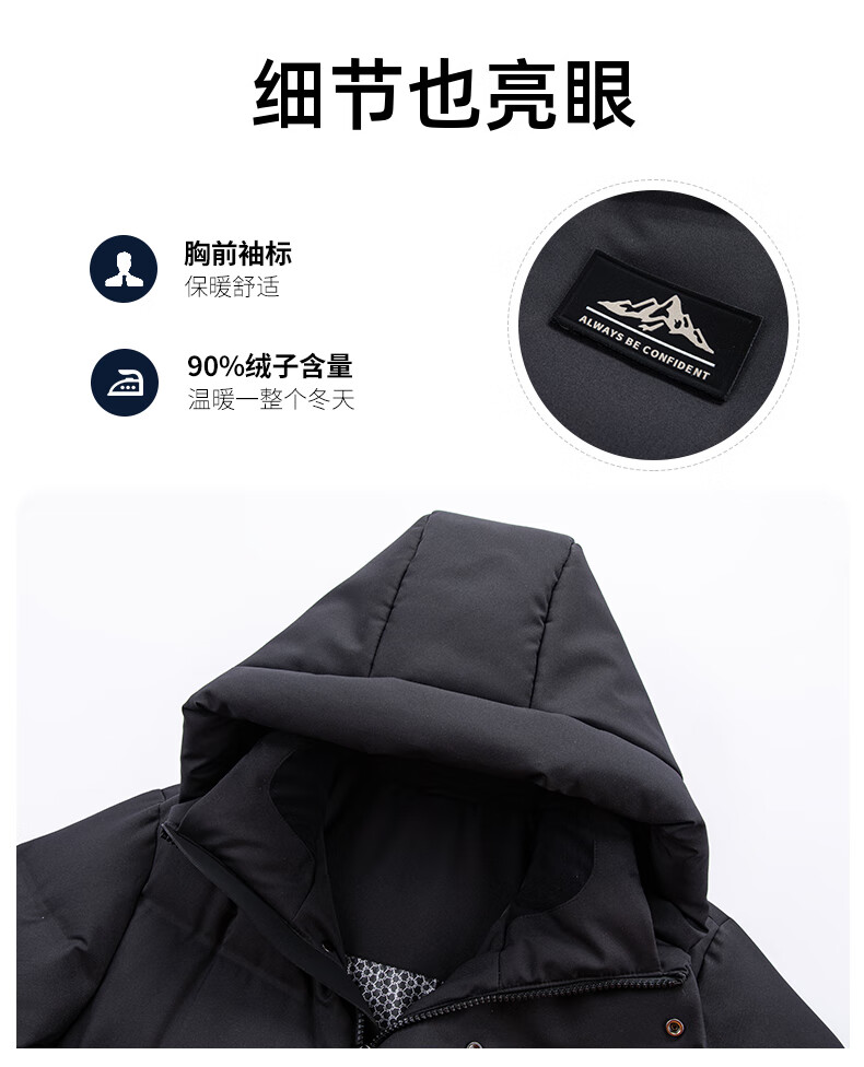 YAYA 2025 Winter New Down Jacket Men's Mid-Length Fashion Casual Workwear Style Outdoor Versatile Warm Jacket Black 3XL (190)