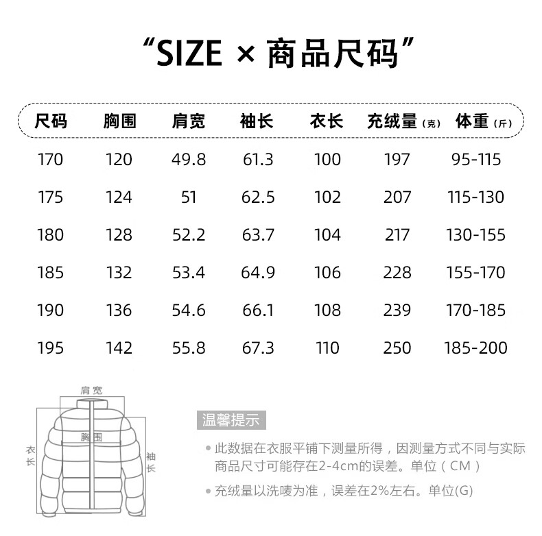 China (cm) 165 / 88-90 170 / 96-98 175 / 108-110 180 / 118-122 185 / 126-130