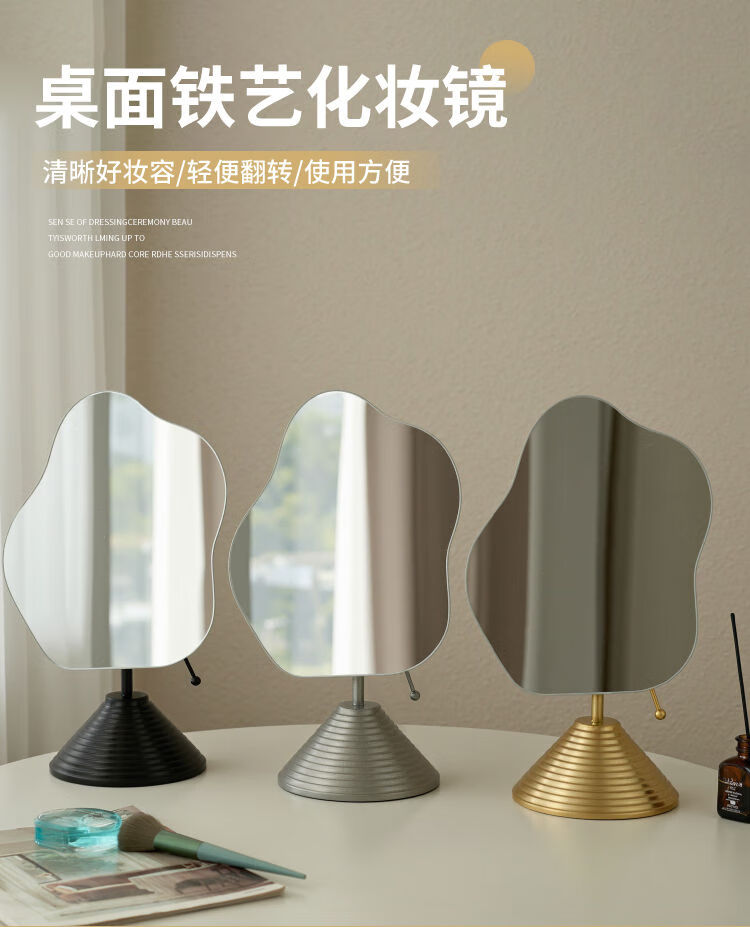 2025 new vanity mirror ins dormitory bedroom Internet celebrity vanity mirror cloud vanity mirror high-definition mirror can be rotated irregular cloud style silver