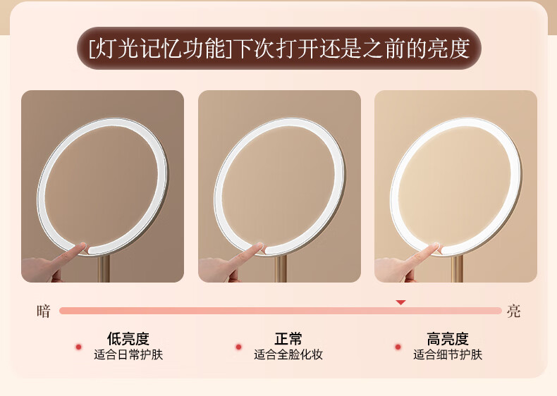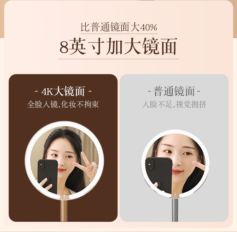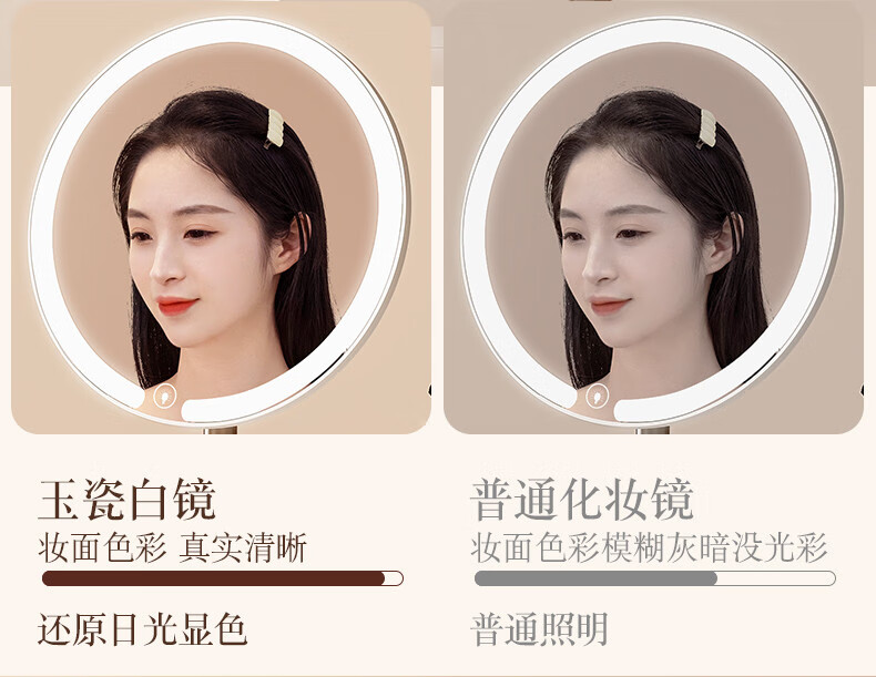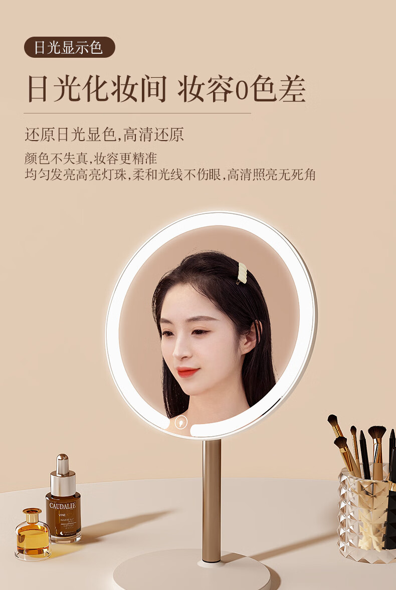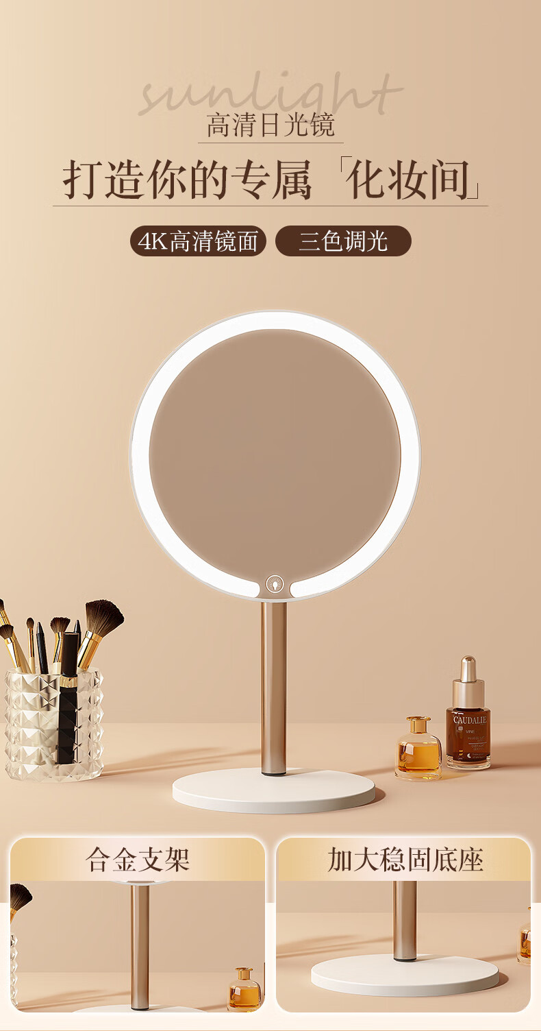2025 New Mirror Cosmetic Mirror LED with Light Office Desktop Home Luminous Dressing HD Fill-in Light Key White Three-Color Light Source + Brightness Memory
