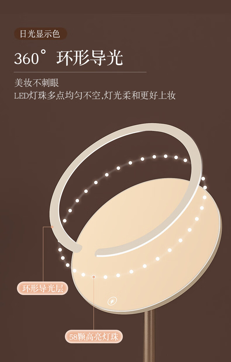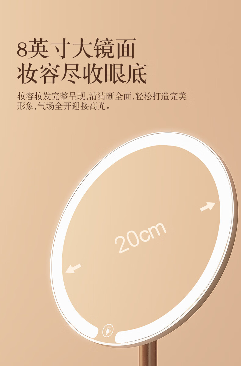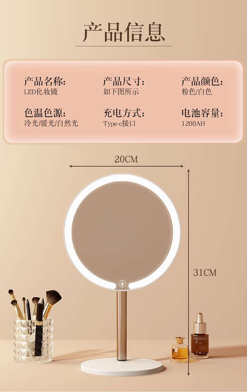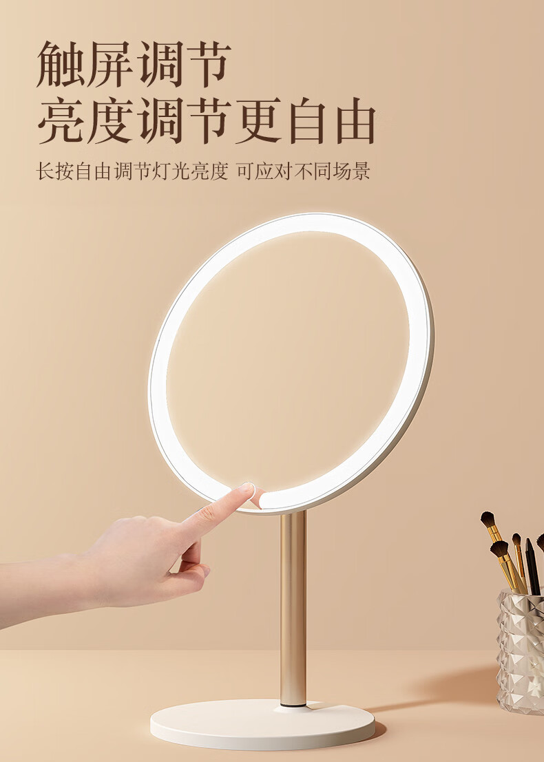 2025 New Mirror Cosmetic Mirror LED with Light Office Desktop Home Luminous Dressing HD Fill-in Light Key White Three-Color Light Source + Brightness Memory