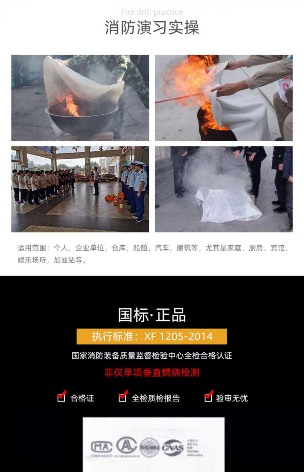 Special fire blanket for hotel kitchen, commercial fiberglass household firefighting supplies, fire escape fire blanket 2 meters, large size white fiberglass 1.5 meters, CE certification_same style as the lecture