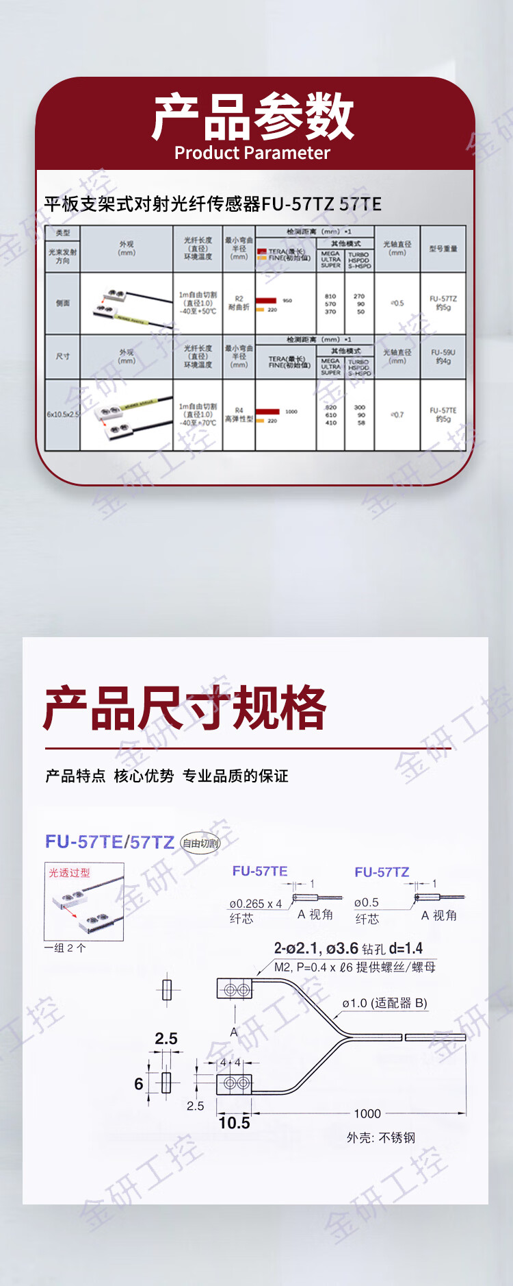 New FU57TZFU57TE bracket type through-beam fiber optic sensor FU-35FA 1 meter cable