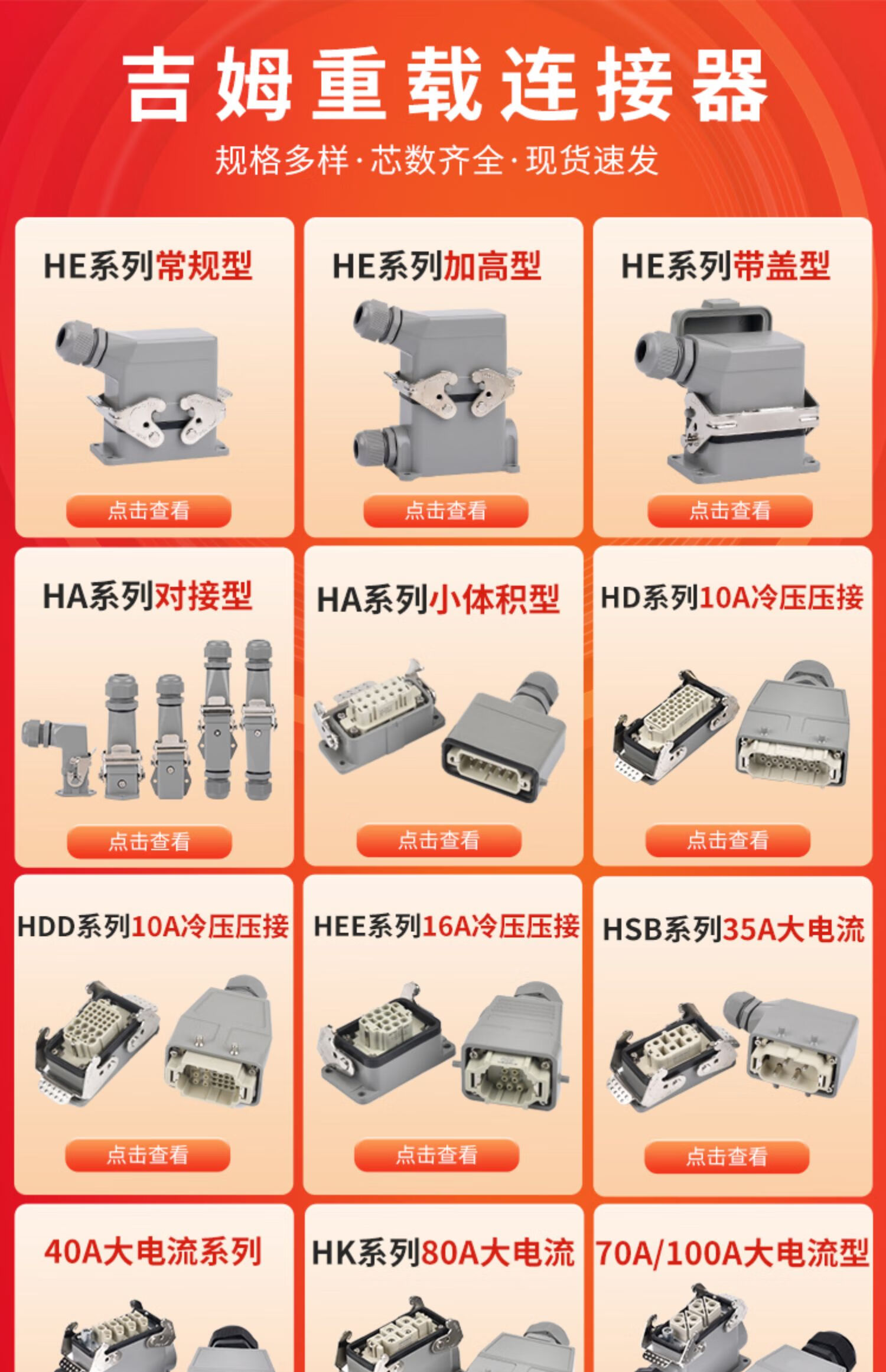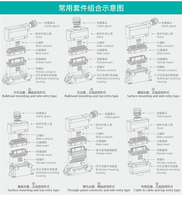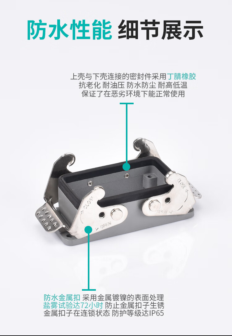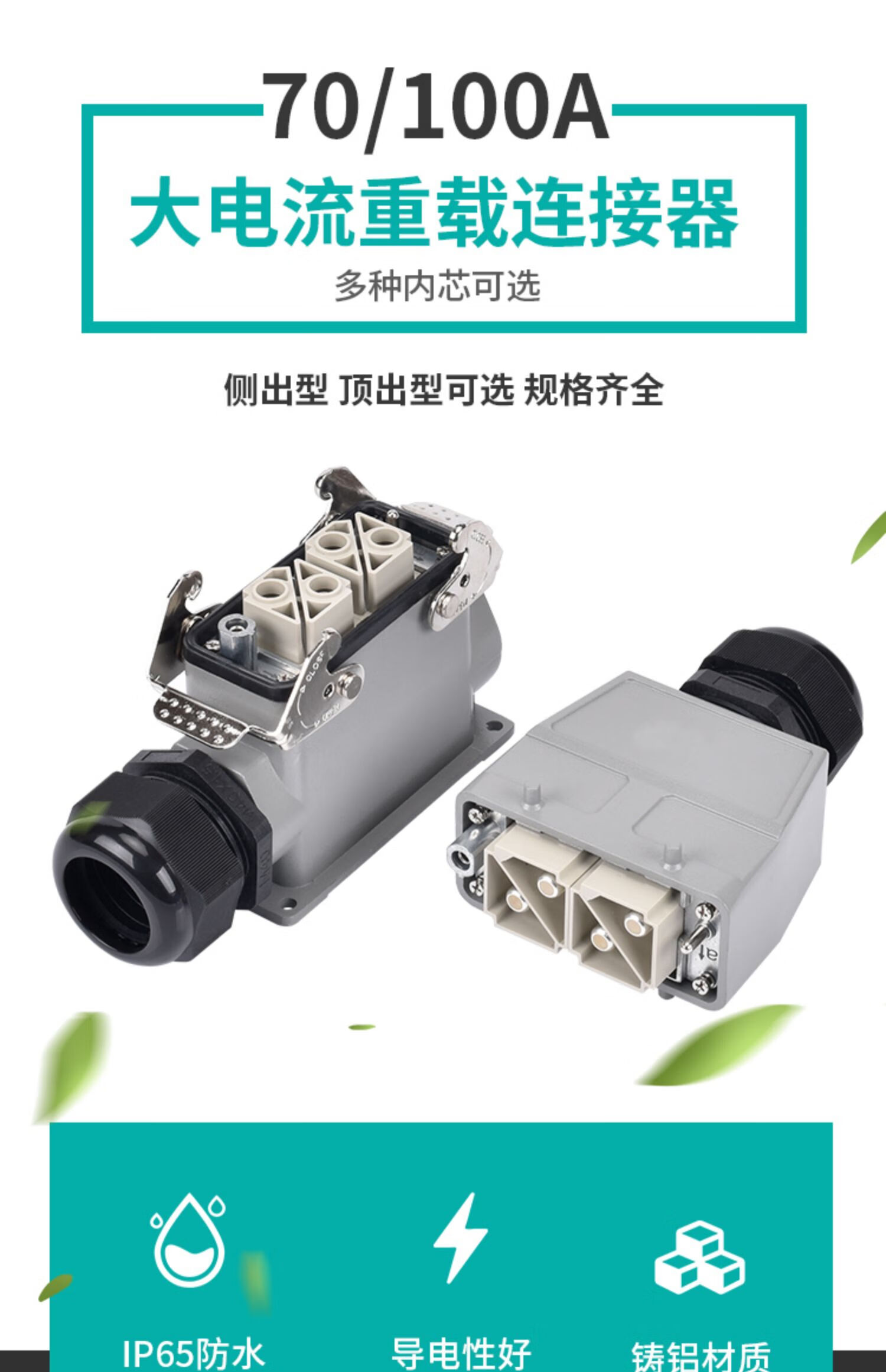 Heavy duty connector high current high power high voltage 4 core 6 core 8 core 100A open hole installation surface waterproof plug 6 core 100A single buckle side outlet with cover single core 10