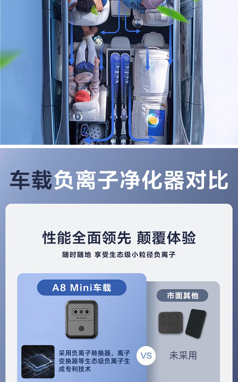 STaR&JEE car negative ion air purifier removes formaldehyde and toluene, new car odor remover, hanging neck car mount, dual-purpose smoke odor remover A8MINI-car mount