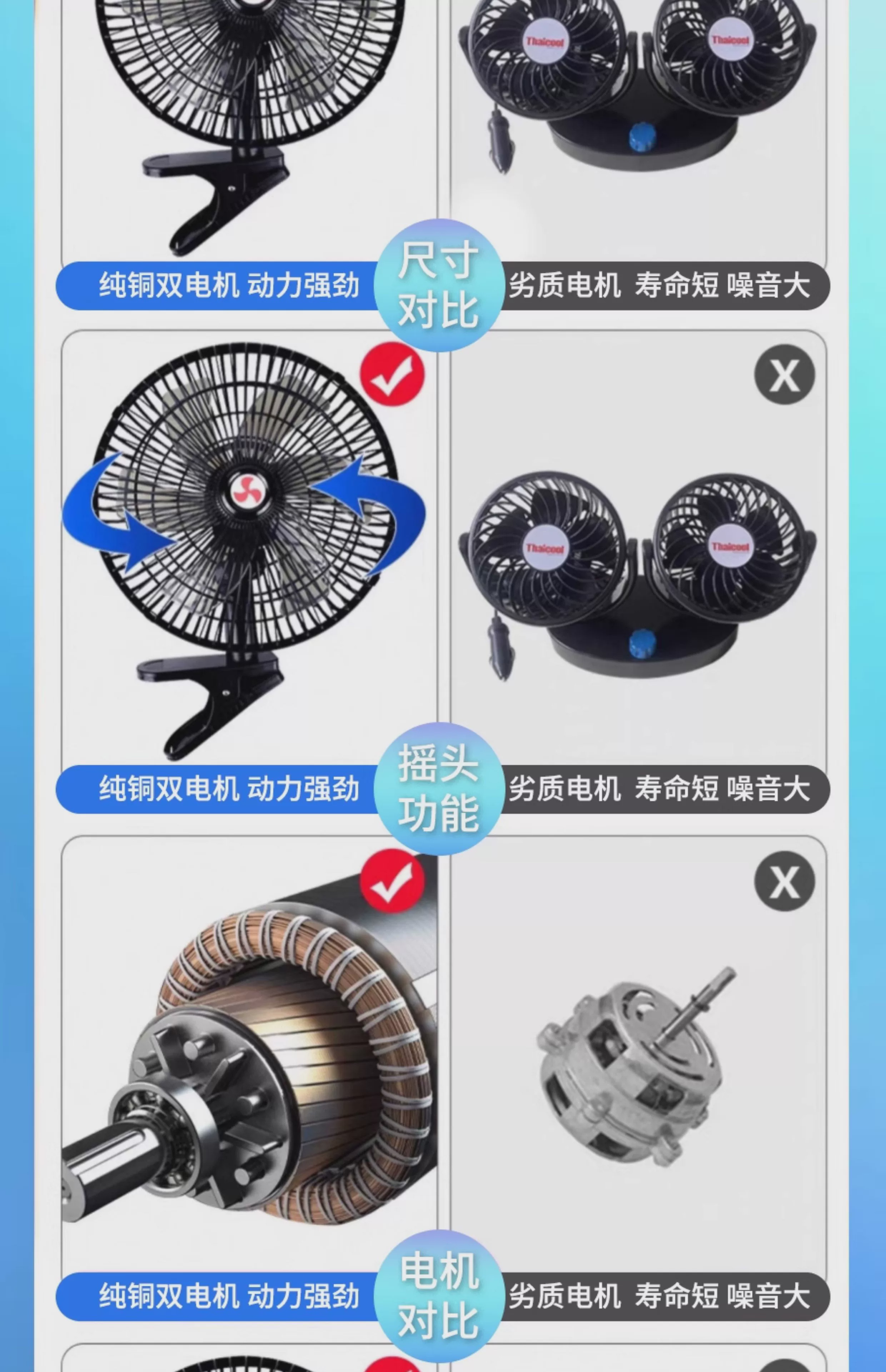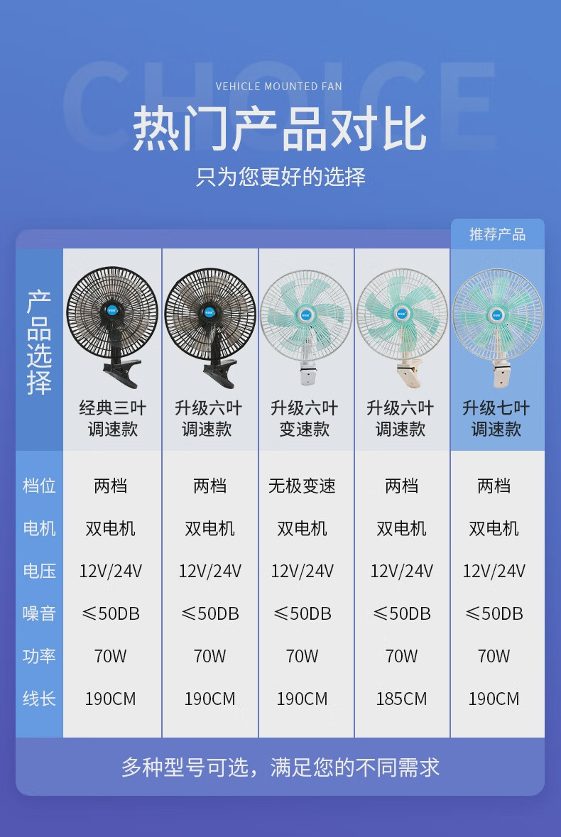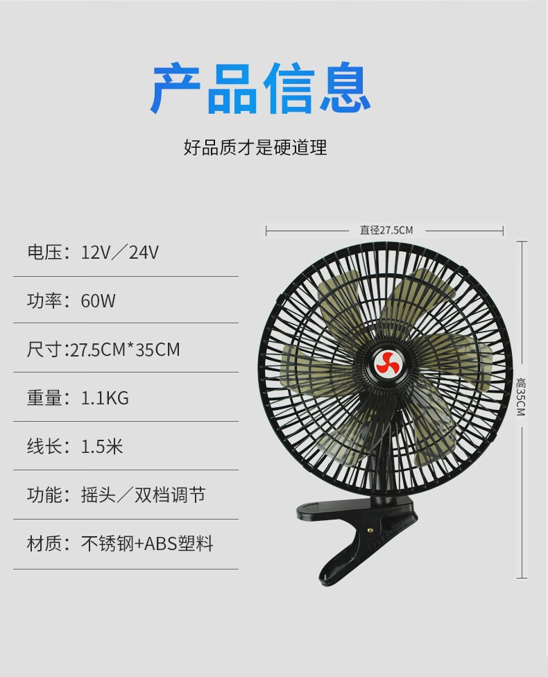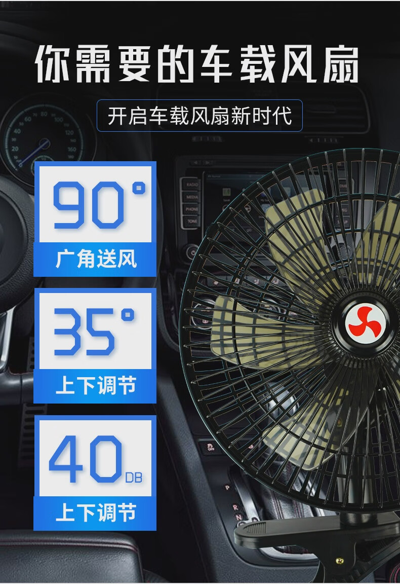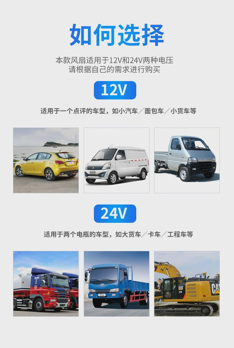 CONOCO car fan 24V large truck powerful cooling high power 12v car double head super quiet inside the car two batteries choose 24V (medium and large trucks) top