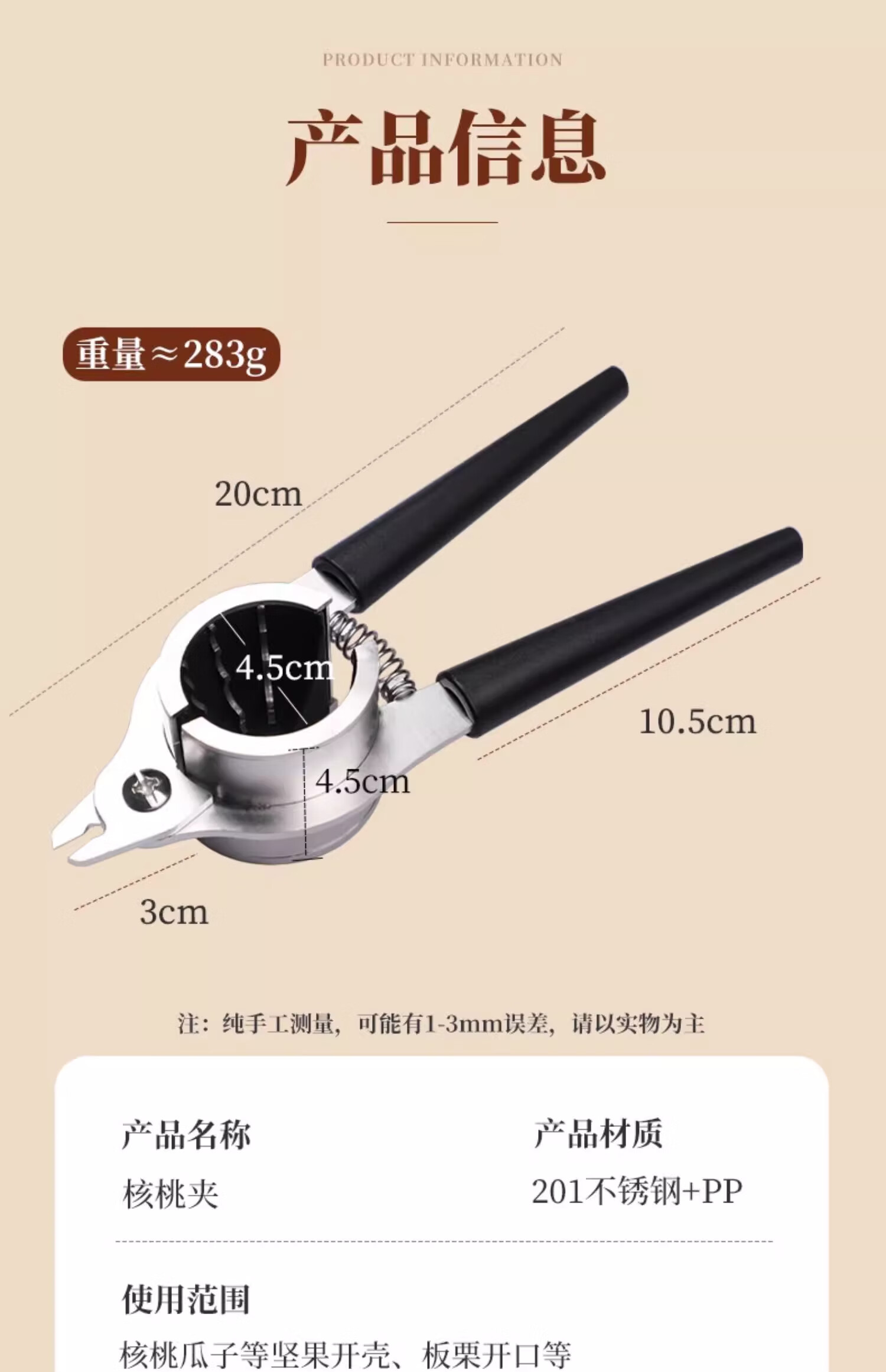 Beige walnut opening artifact household thickened stainless steel new special labor-saving walnut clamp pliers shell opening tool newly upgraded wrapped walnut sheller