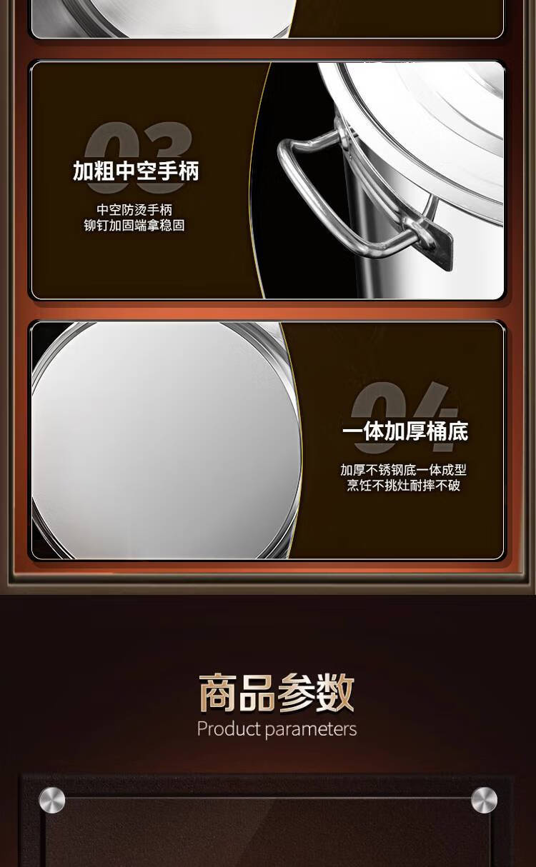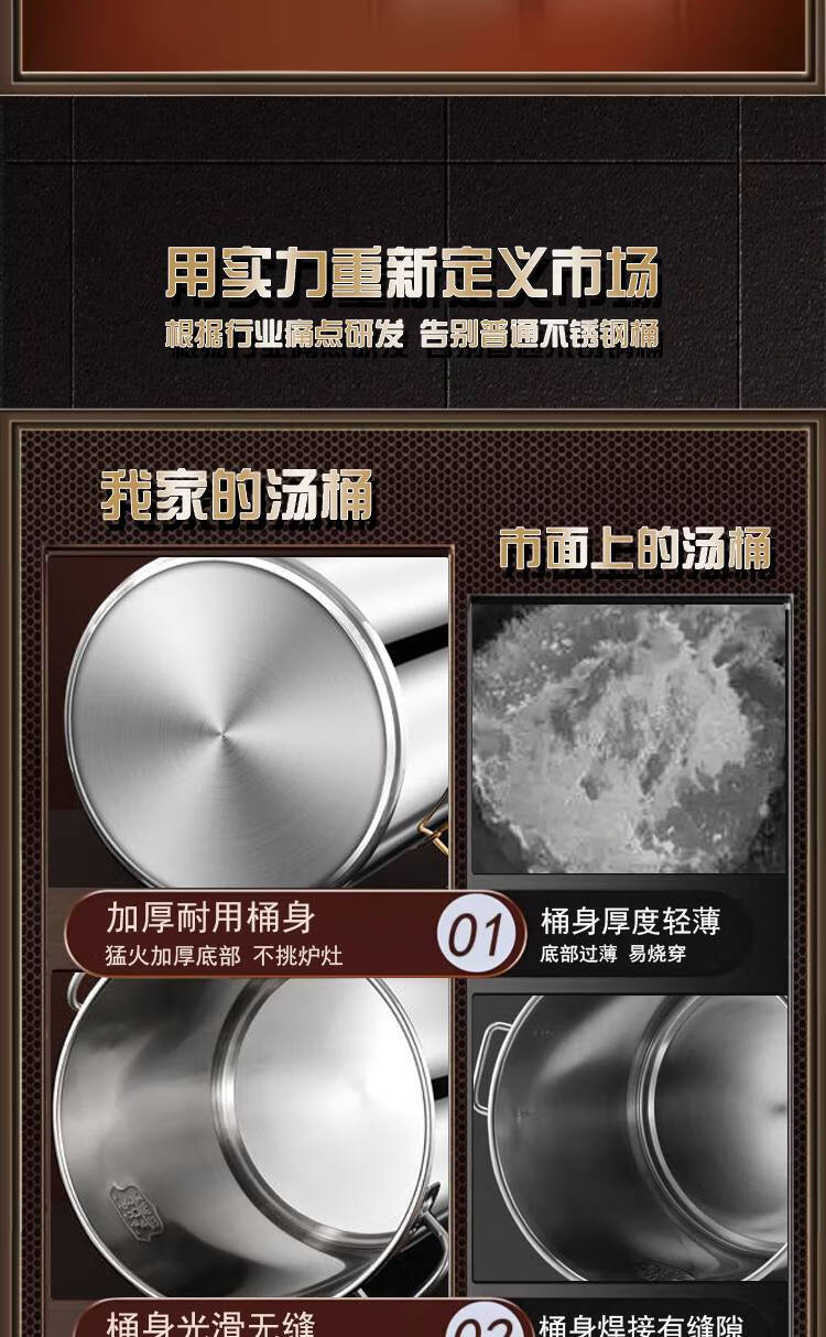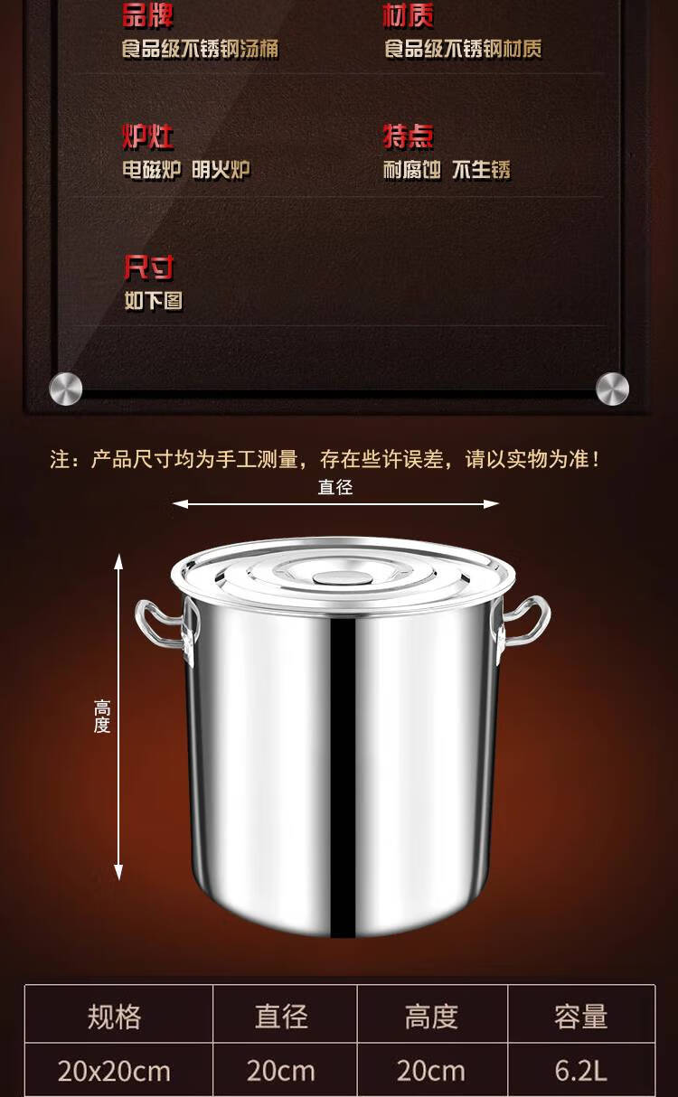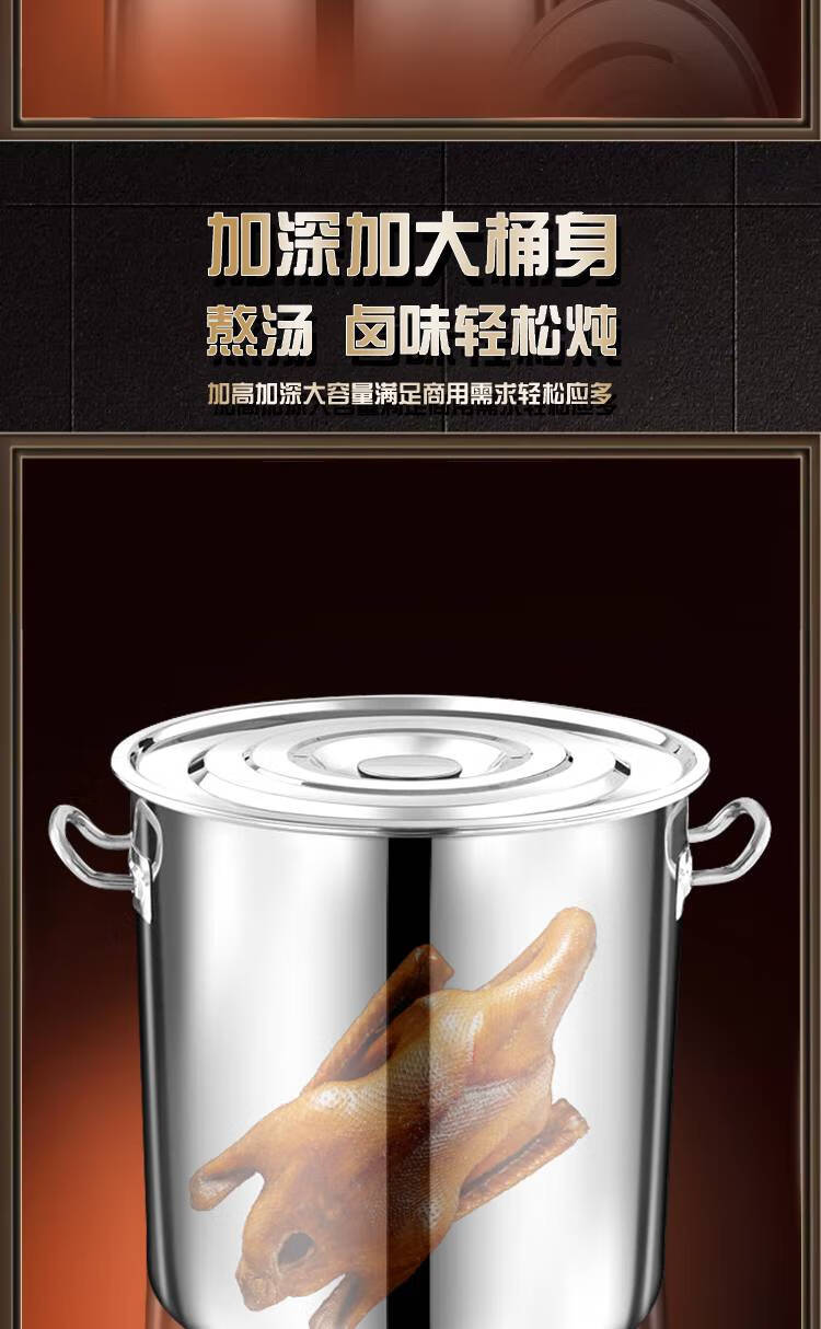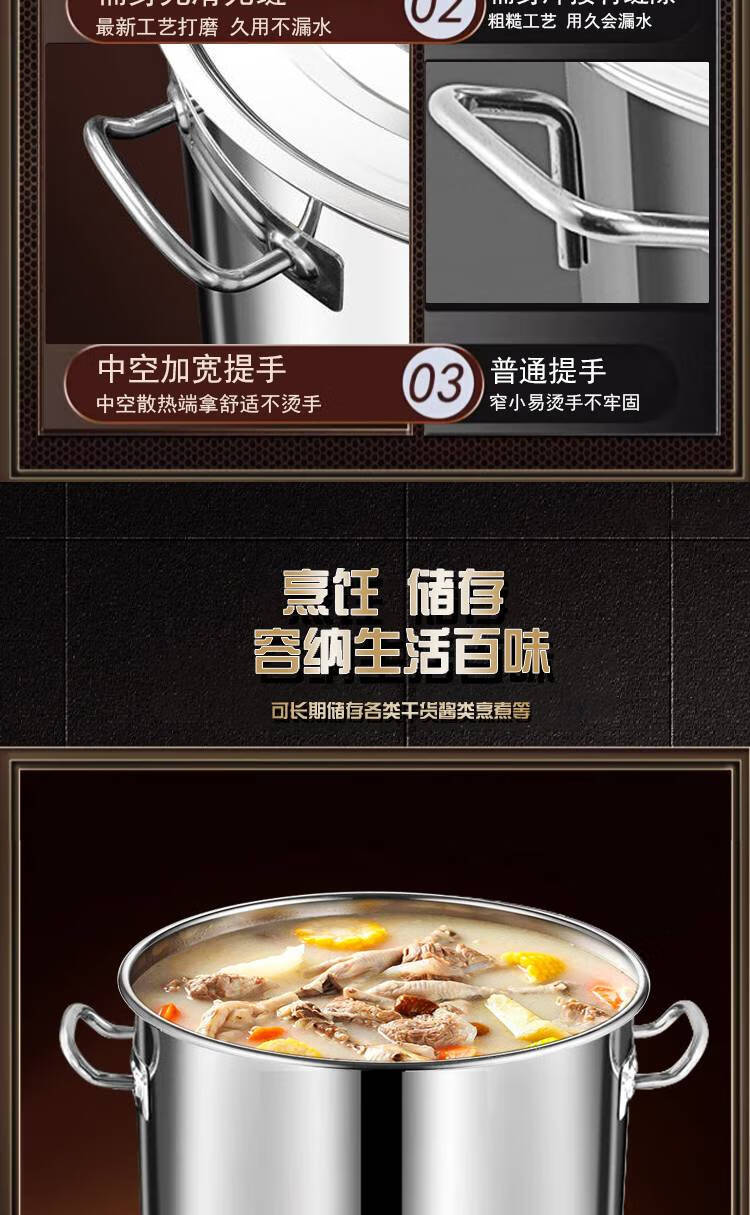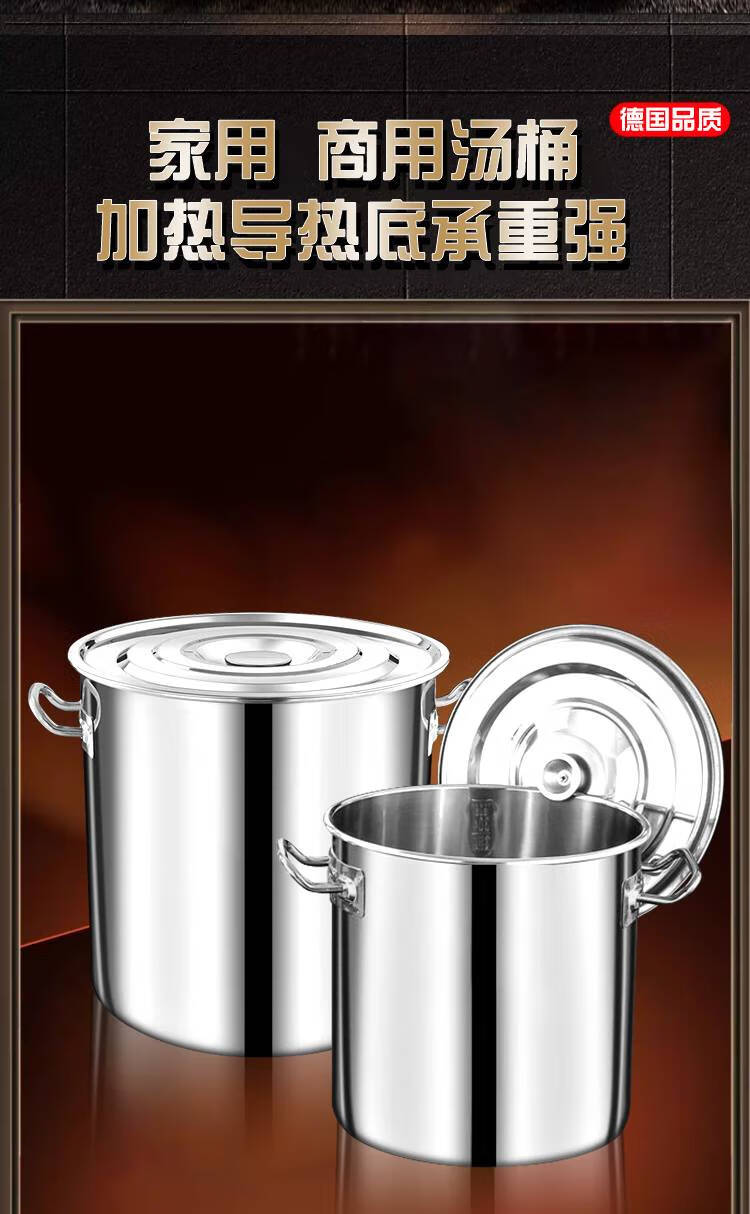 Wing Fantasy 304 stainless steel barrel large soup pot with lid commercial thickened household water barrel oil barrel brine pot stainless steel soup barrel super thickened diameter 35 high 35 food grade stainless steel