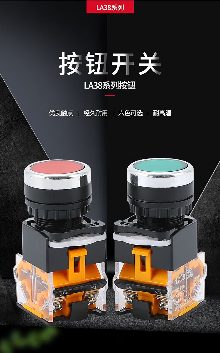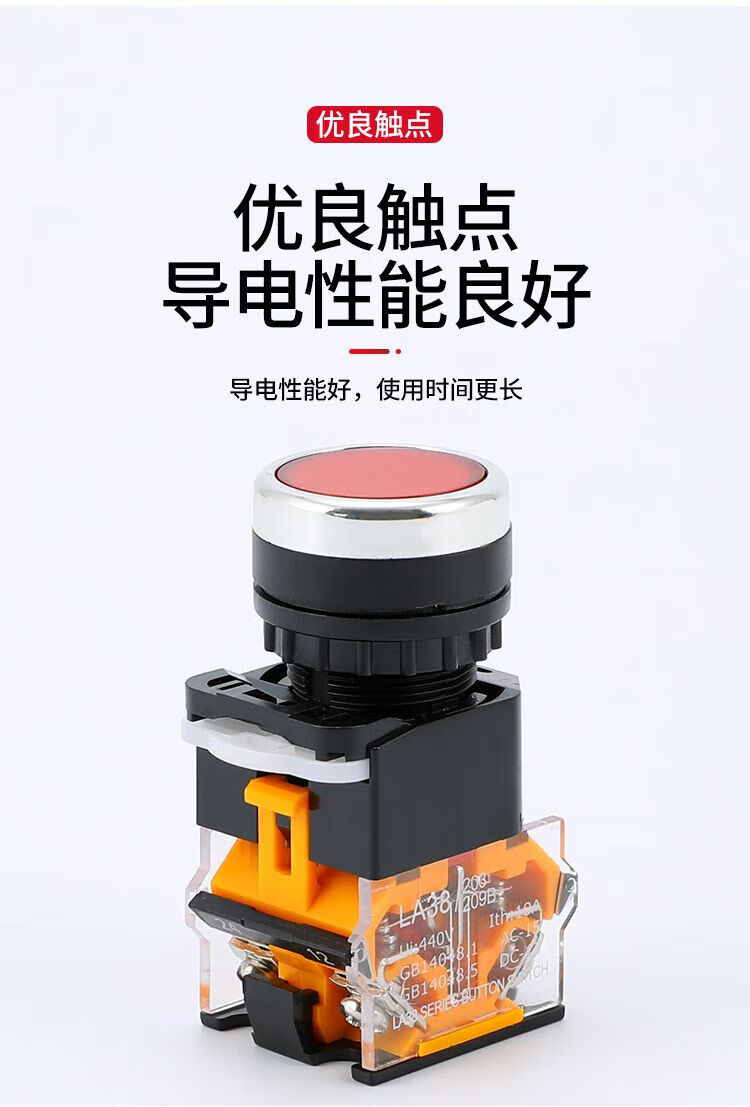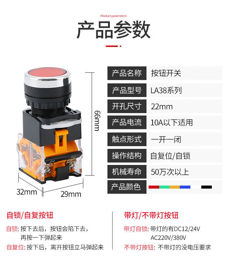 Button switch LA38-11BN power supply with self-locking round start stop self-reset point push type 22MM installation aperture red reset