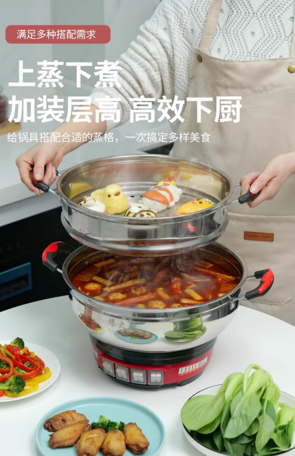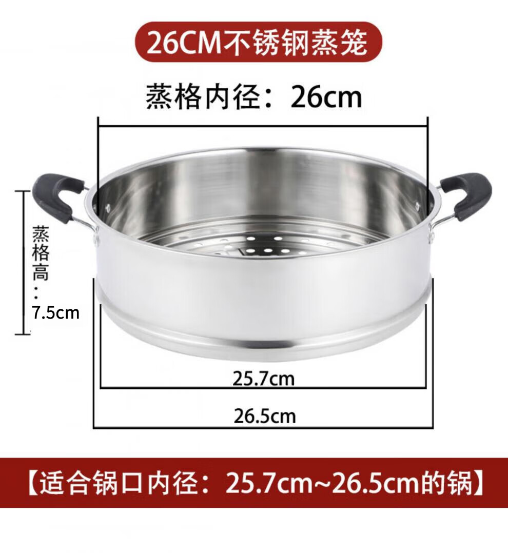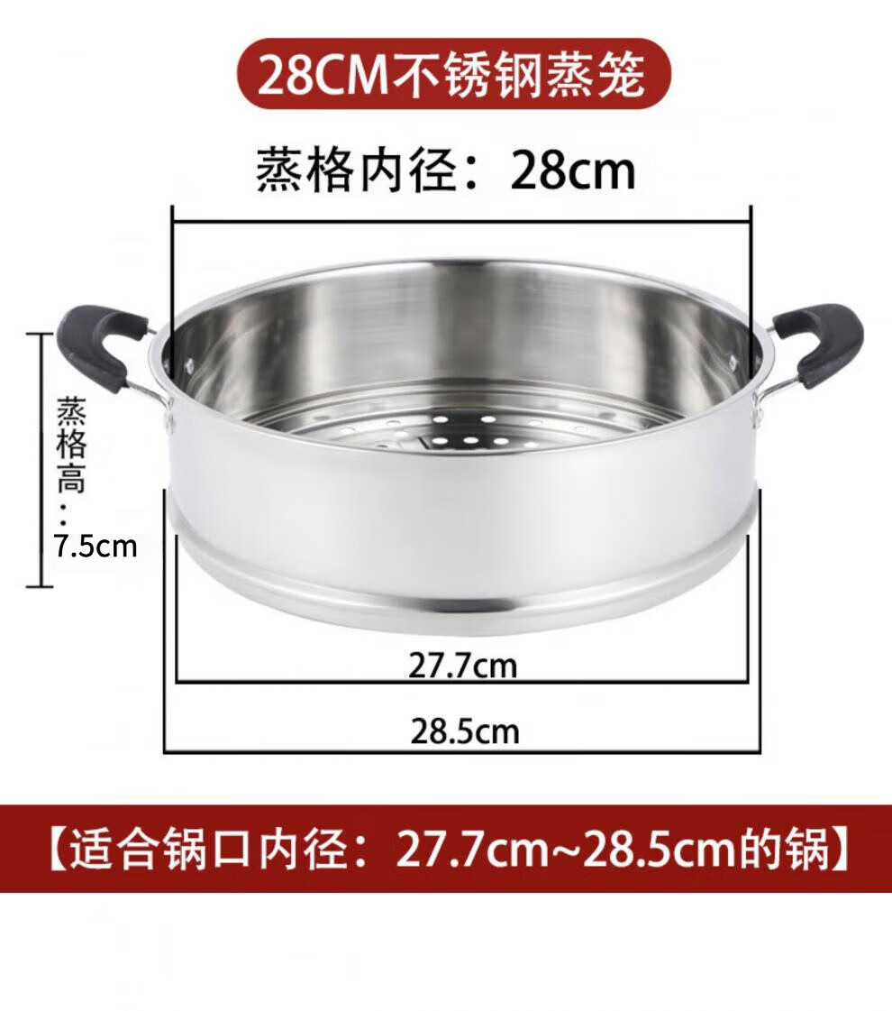 Deepened stainless steel steamer, steamer, electric pot, grate, large steamer, household steamer, electric heating pot, heightening and thickening steamer, with pot opening inner diameter 27.7-28cm 28cm