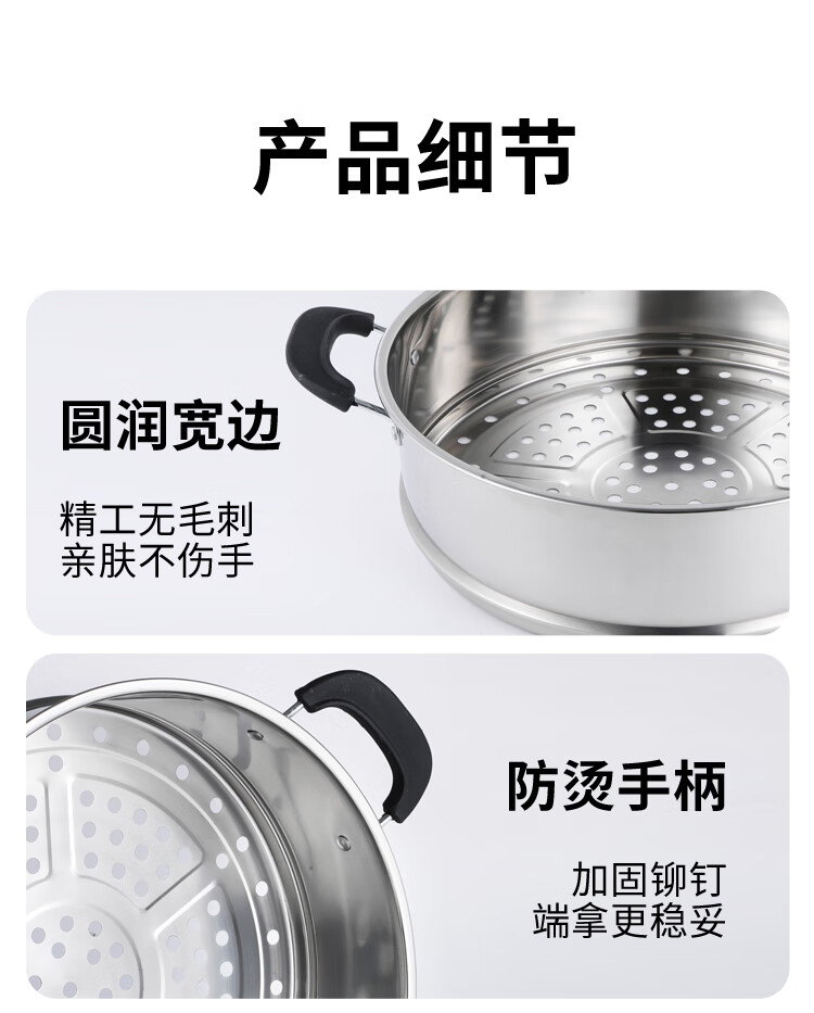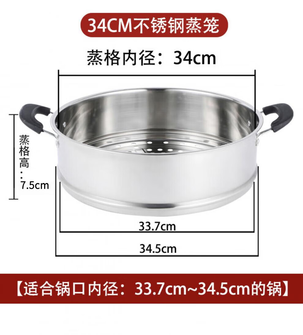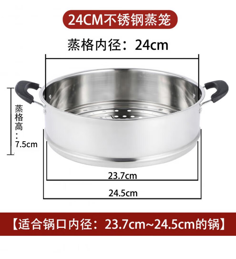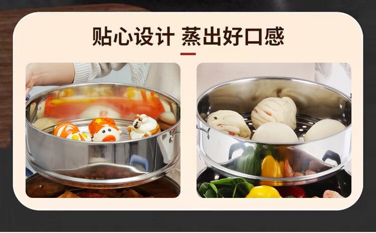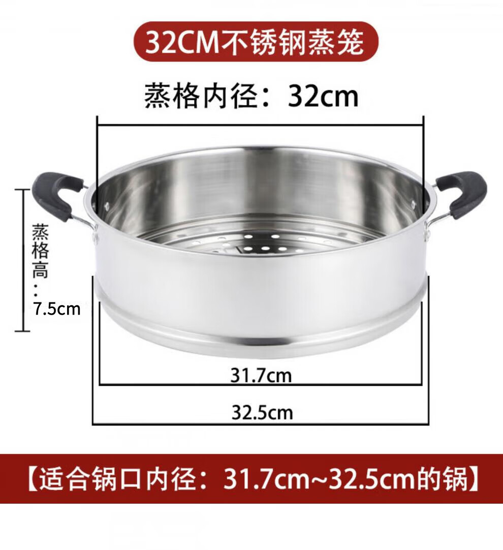 Deepened stainless steel steamer, steamer, electric pot, grate, large steamer, household steamer, electric heating pot, heightening and thickening steamer, with pot opening inner diameter 27.7-28cm 28cm