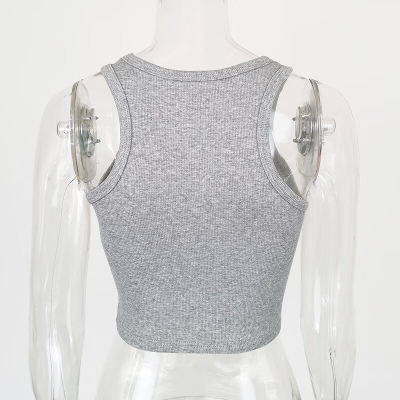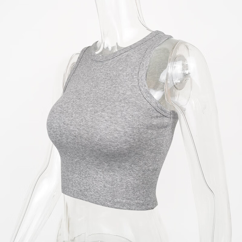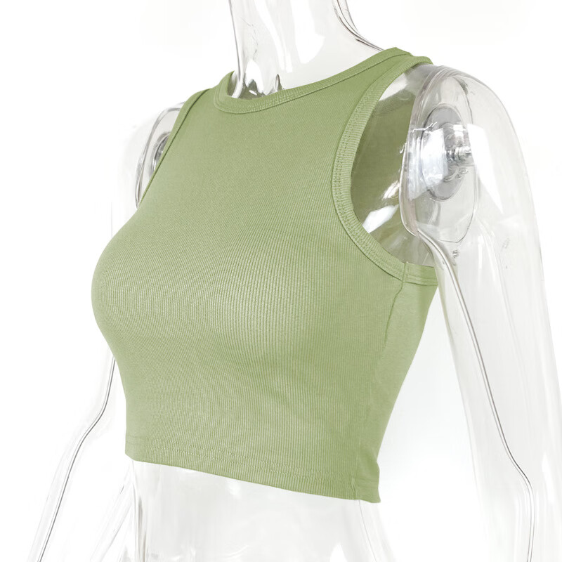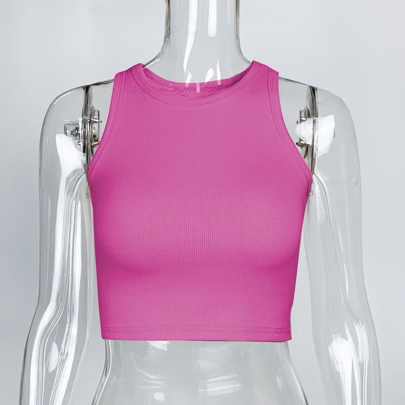 European and American ins sports short navel-baring sleeveless top for women 2025 summer new tight I-shaped vest red L