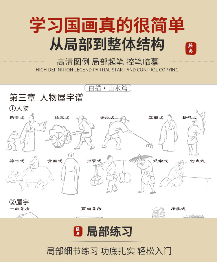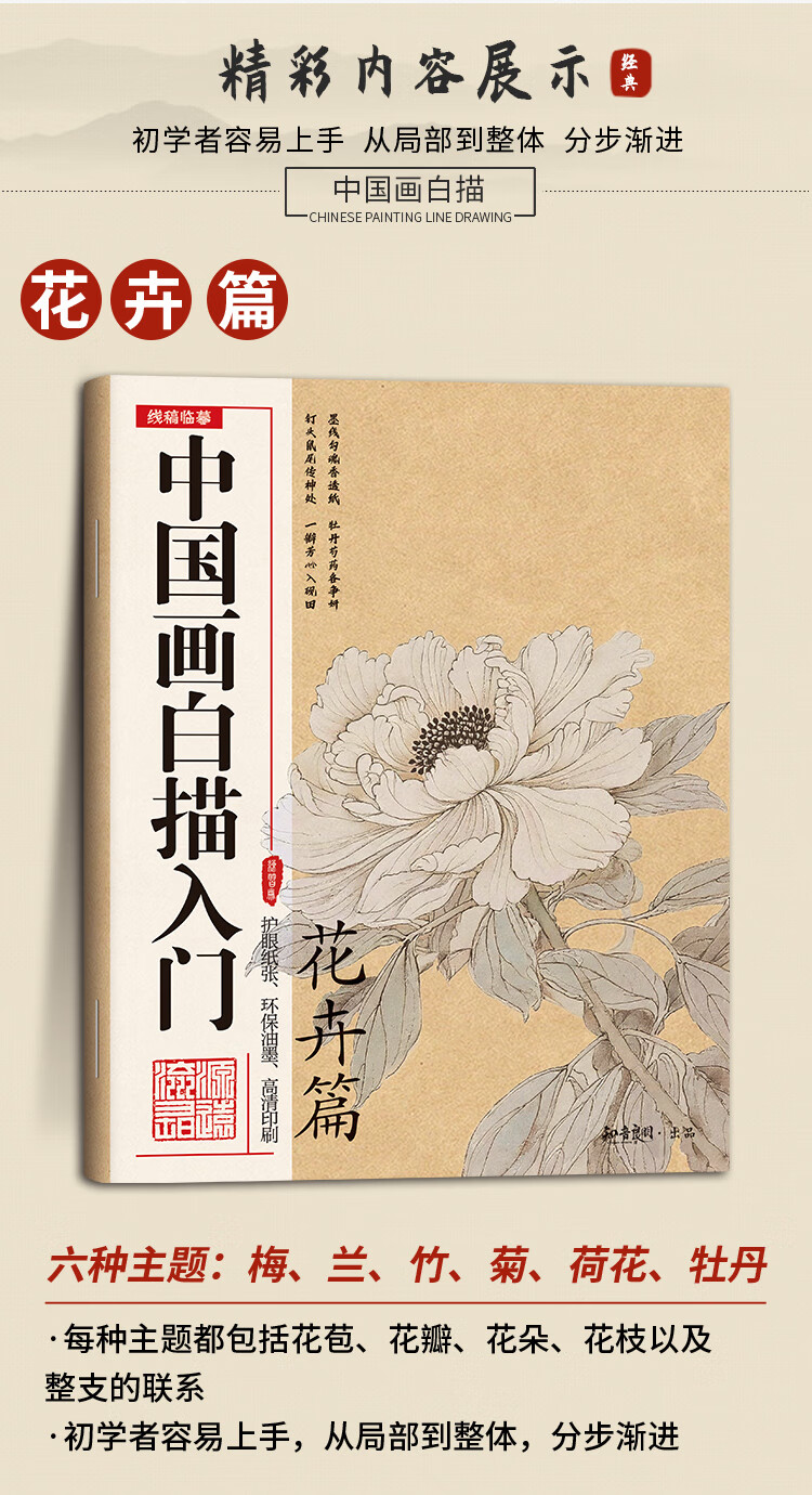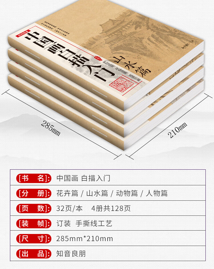 Introduction to Chinese Painting Line Drawing Copying Chinese Painting and Traditional Chinese Style Fine Brushwork Line Drawing Line Drawing Copying Album Line Drawing Line Drawing Basic Book Beginner's Ink Painting Album Complete 4 volumes Introduction to Chinese Painting Line Drawing
