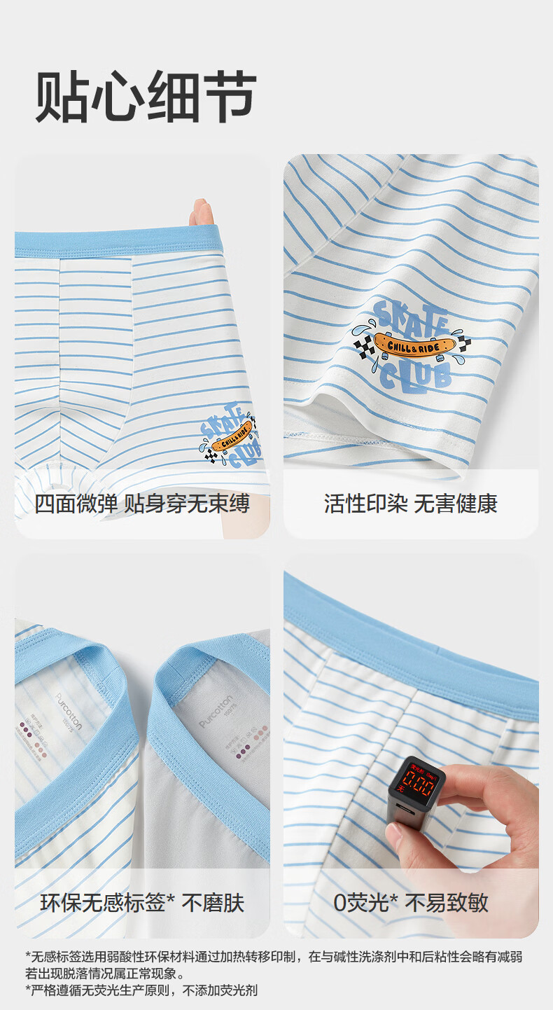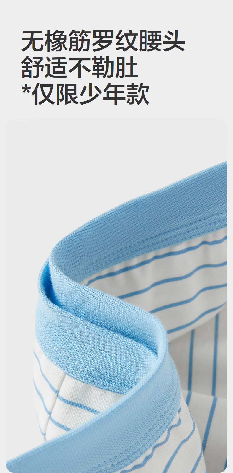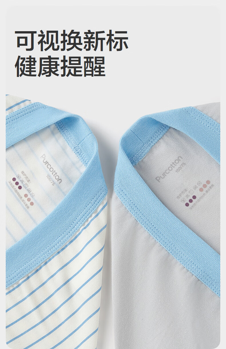 Pure Cotton Era (PurCotton) 2026 Spring Boys' Boxer Briefs - Boxer Briefs + Renewal Pants Boys Boxer Briefs Blue and White Stripes + Guanghua Gray 2 Pairs 170