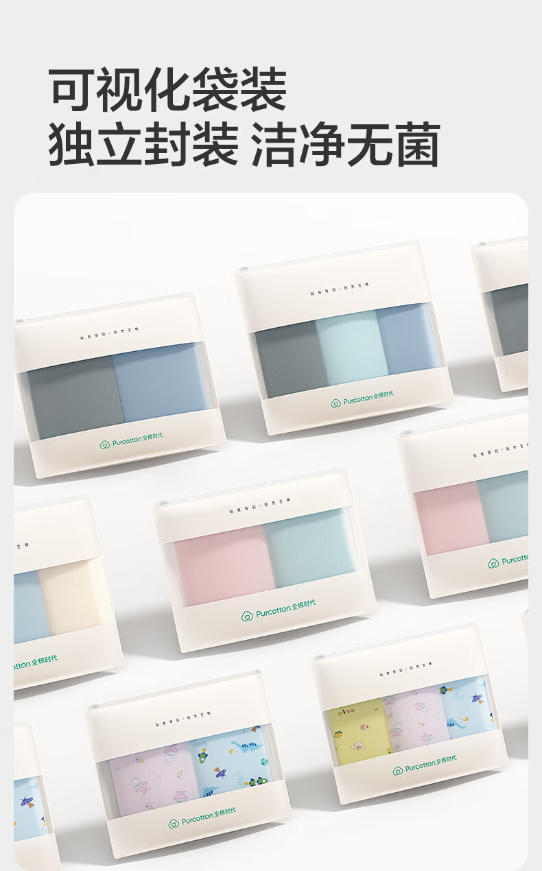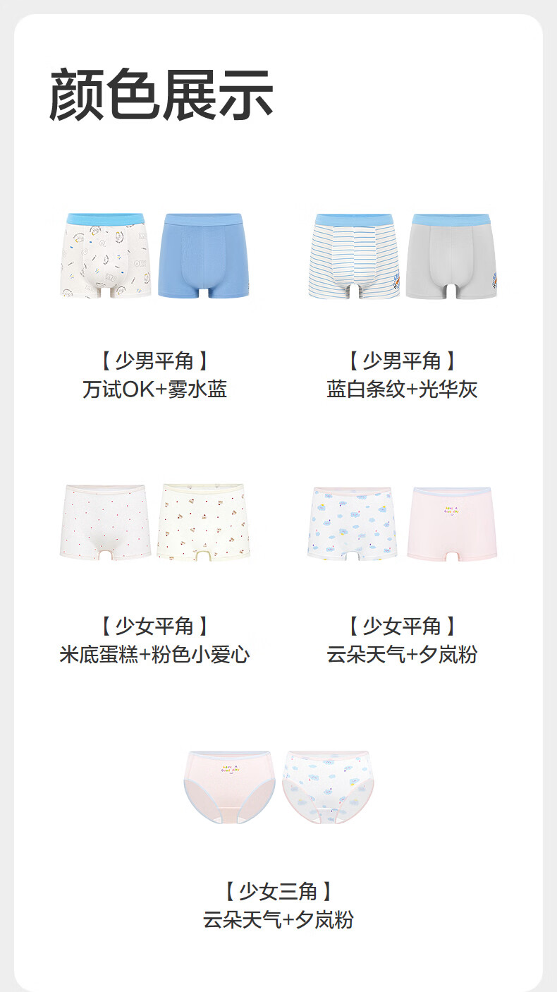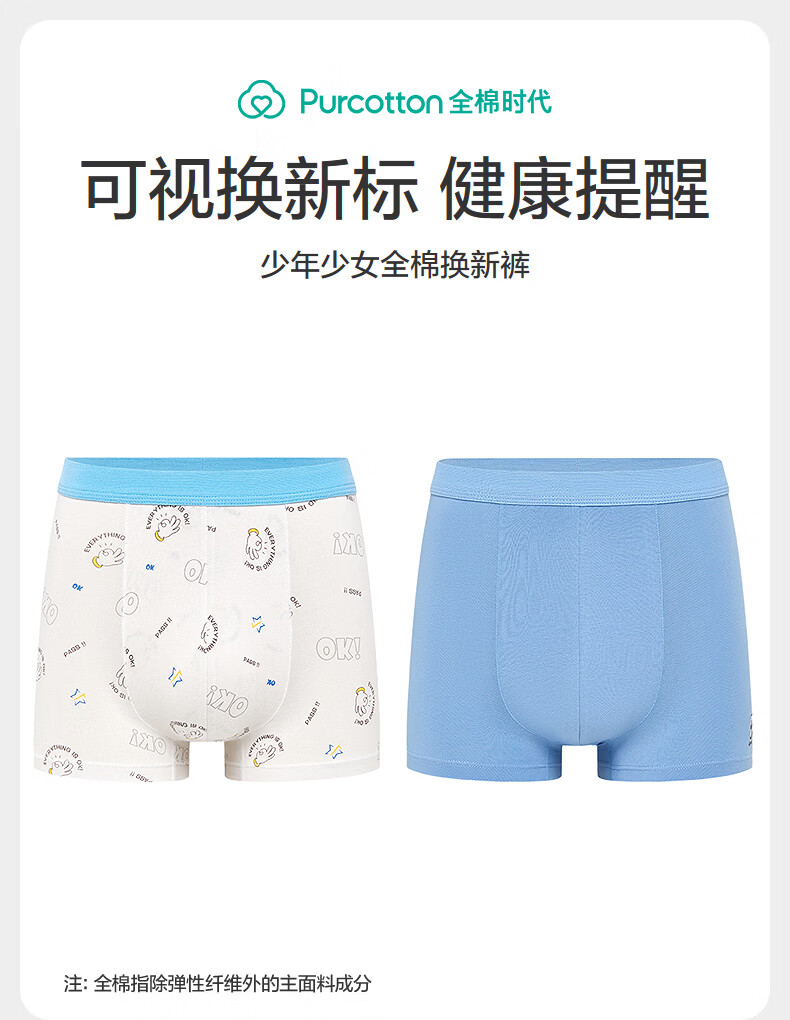 Pure Cotton Era (PurCotton) 2026 Spring Boys' Boxer Briefs - Boxer Briefs + Renewal Pants Boys Boxer Briefs Blue and White Stripes + Guanghua Gray 2 Pairs 170