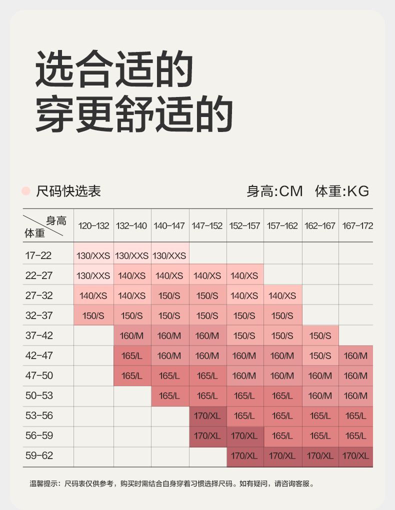 China (cm) 160-165/84-86 165-170 / 88-90 167-172 / 92-96 168-173 / 98-102 170-176 / 106-110