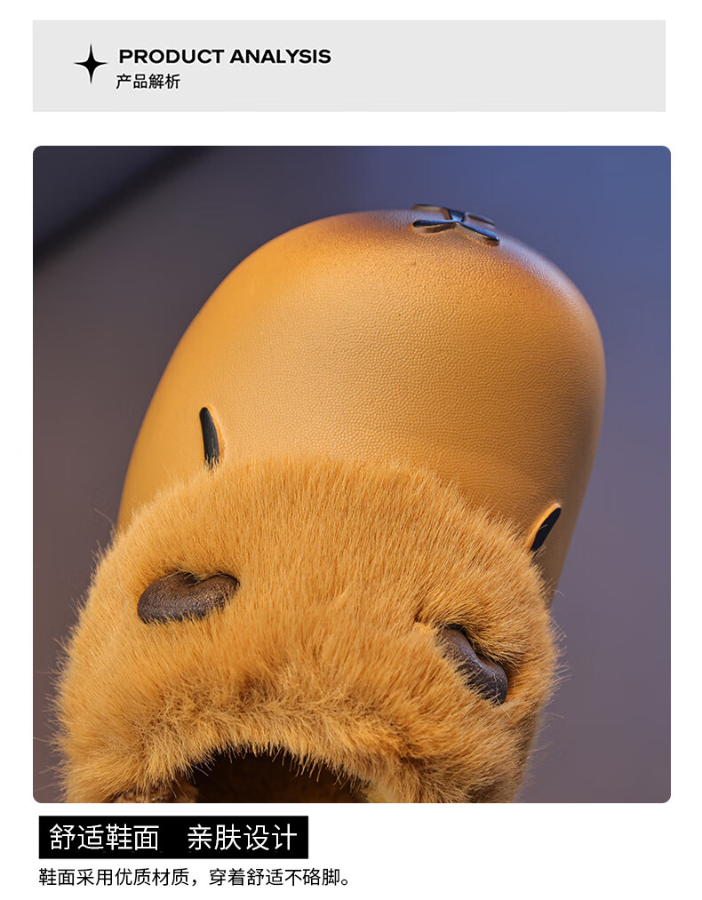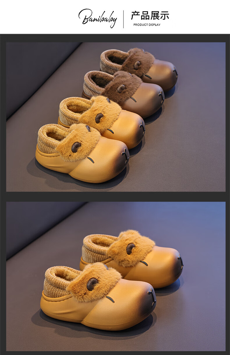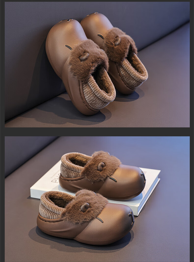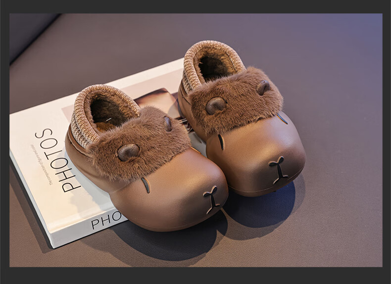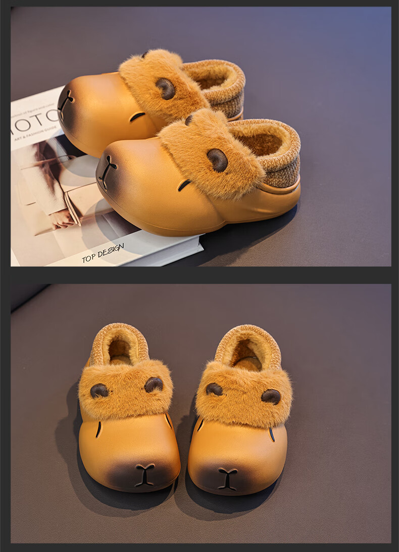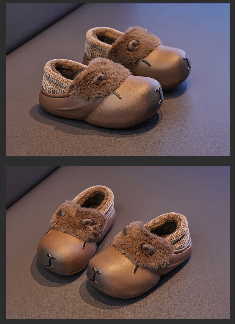 Woodpecker Kapibara Children's Cotton Slippers Boys' Winter Cartoon Cute Non-Slip Indoor Soft Soled Baby Slippers Coffee Color 24